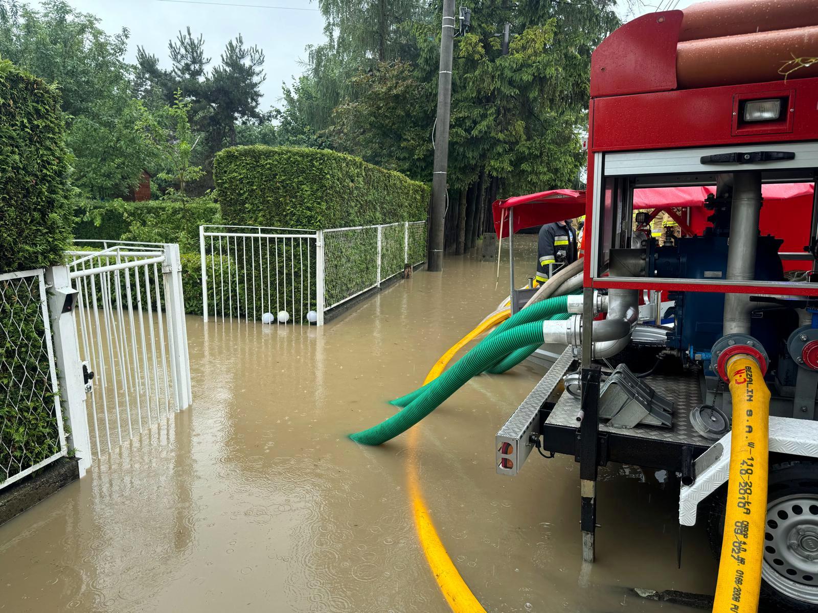 Do usuwania skutków podtopień w powiecie cieszyński zadysponowane zostały dodatkowo zestawy pompowe jednostek ratowniczo - gaśniczych w Mikołowie i Rybniku.