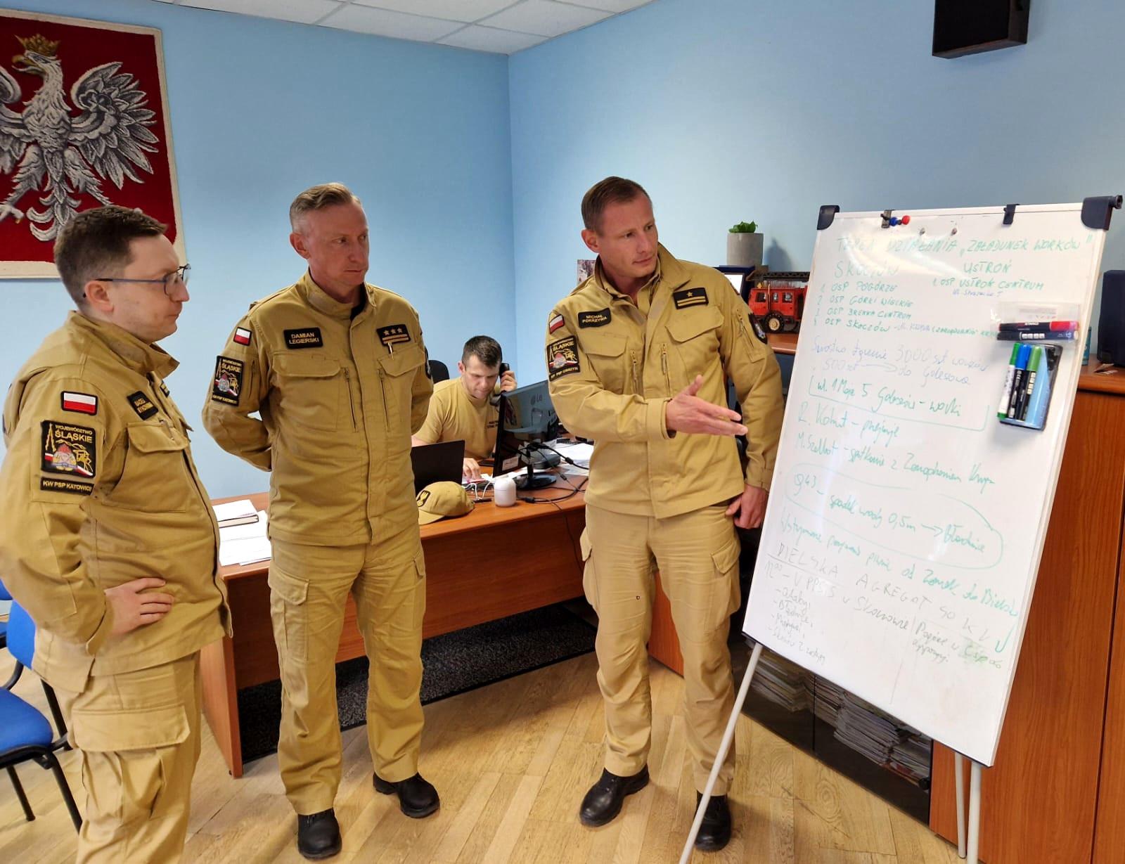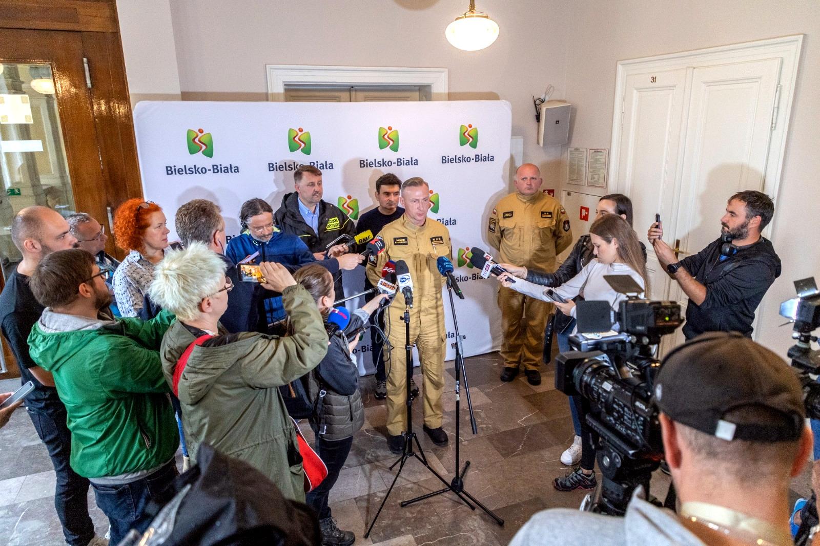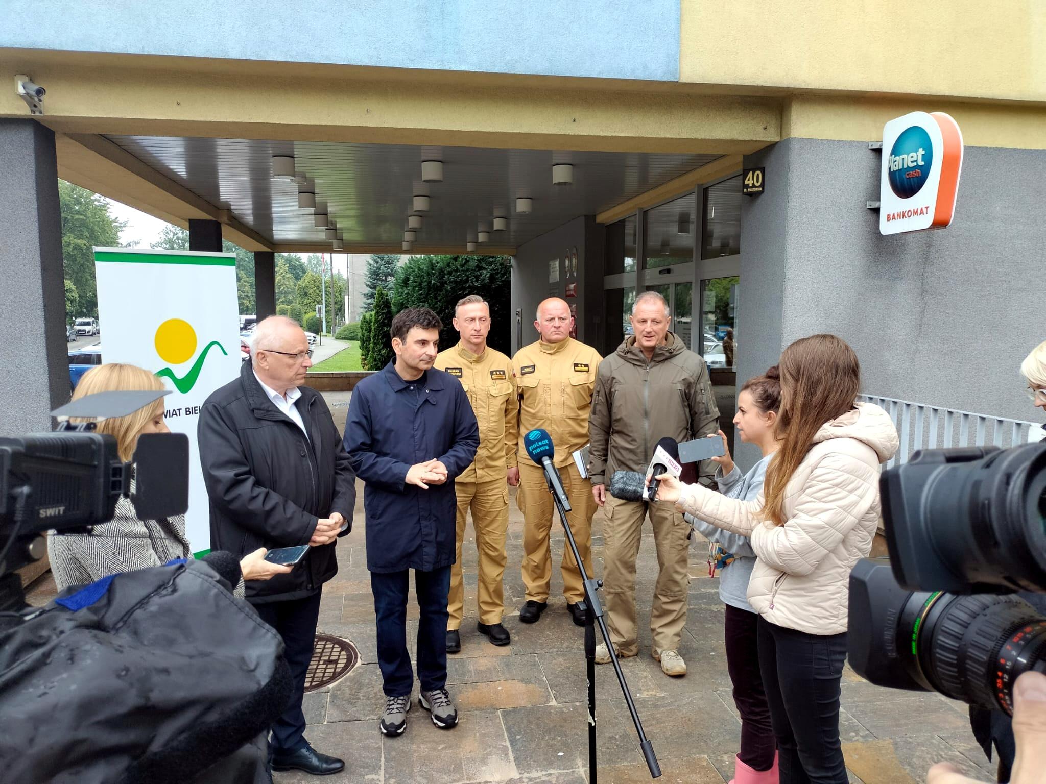 Kolejny briefing prasowy miał miejsce w Starostwie Powiatowym w Bielsku-Białej z udziałem Wojewody Śląskiego Pana Marka Wójcika, Zastępcy Śląskiego Komendanta Wojewódzkiego PSP st. bryg. Damiana Legierskiego, Starosty Bielskiego Pana Andrzeja Płonki, Komendanta Miejskiego PSP w Bielsku-Białej bryg. Romana Marekwicy oraz Dyrektora Wydziału Bezpieczeństwa i Zarządzania Kryzysowego Śląskiego Urzędu Wojewódzkiego Pana Grzegorza Muchy.