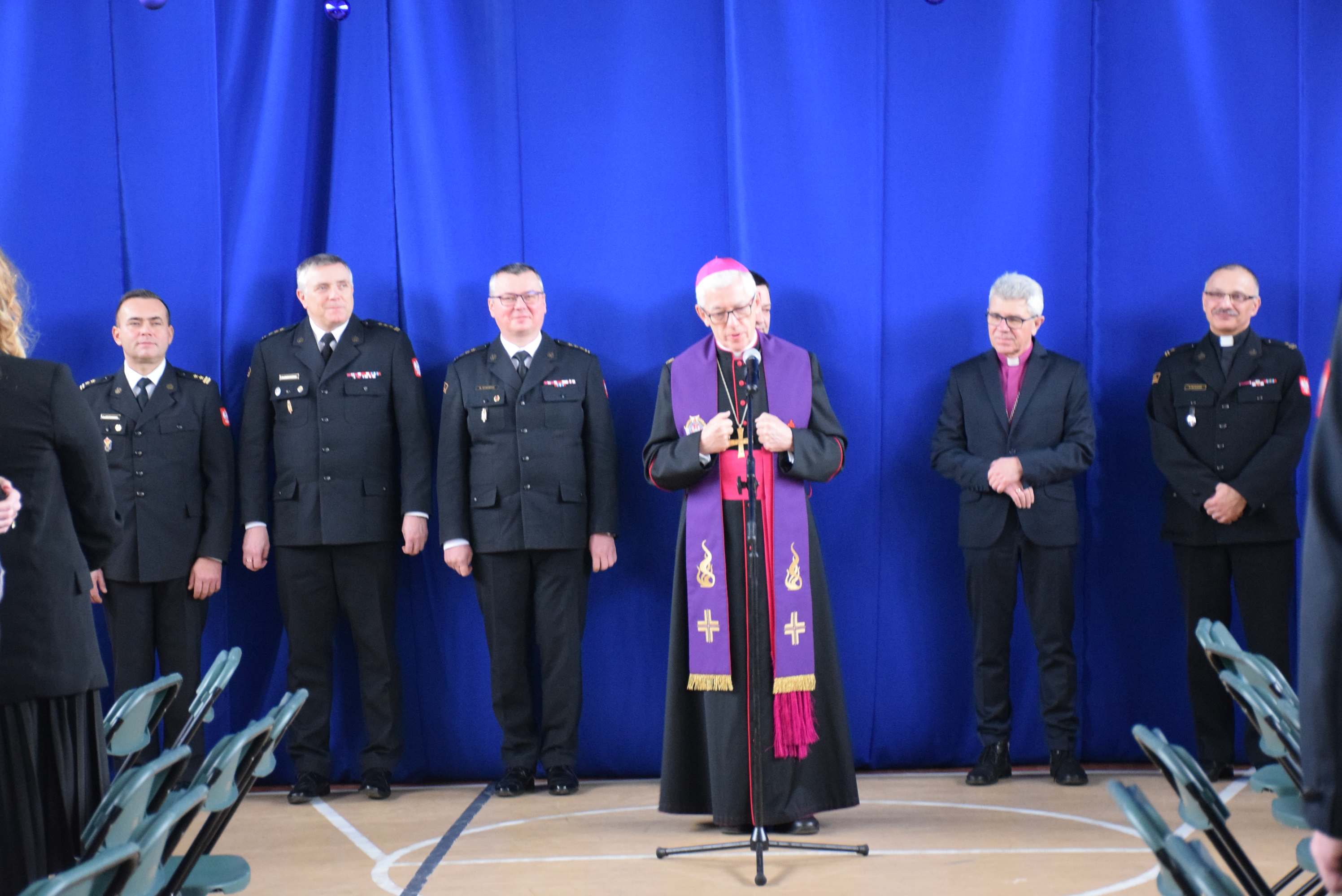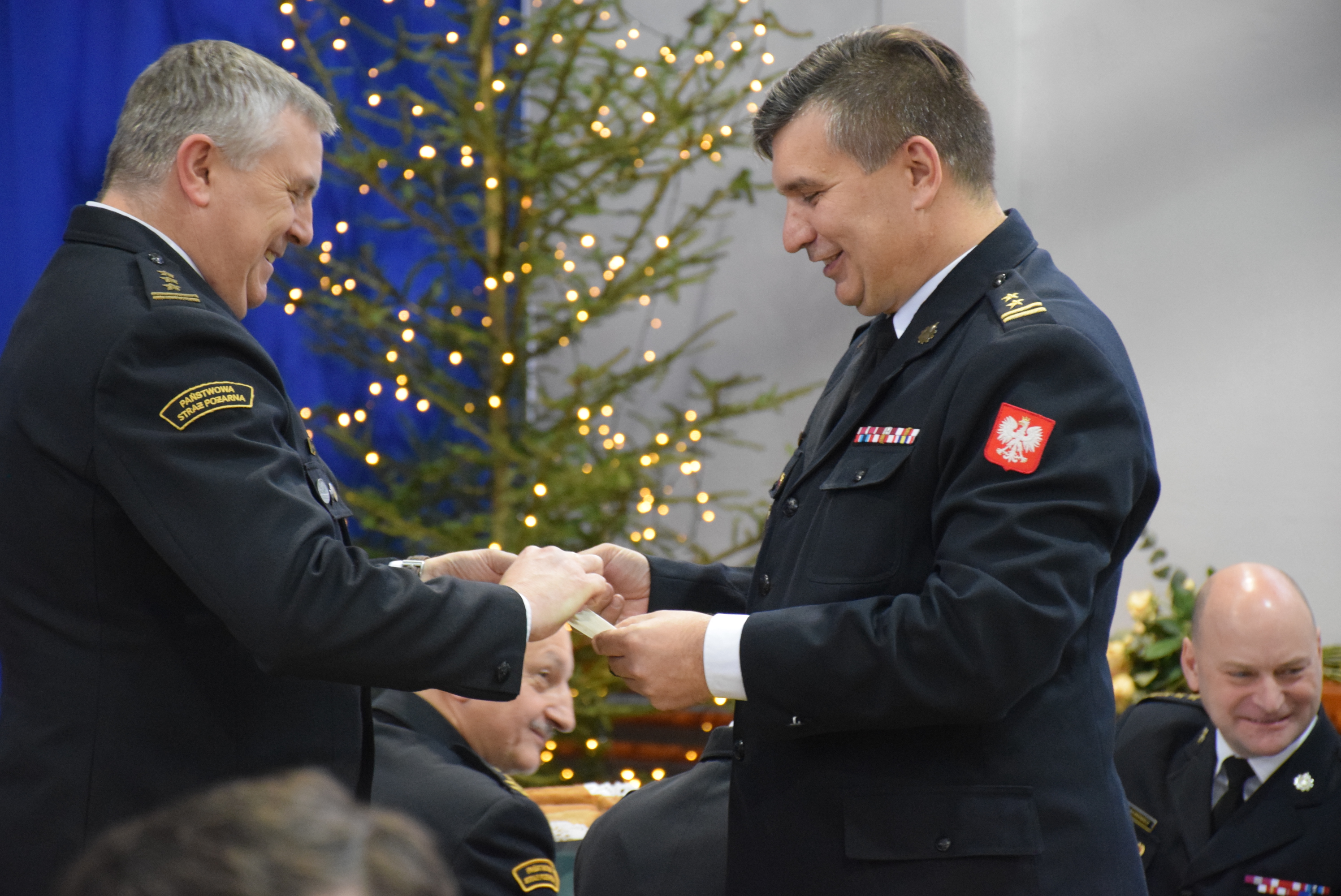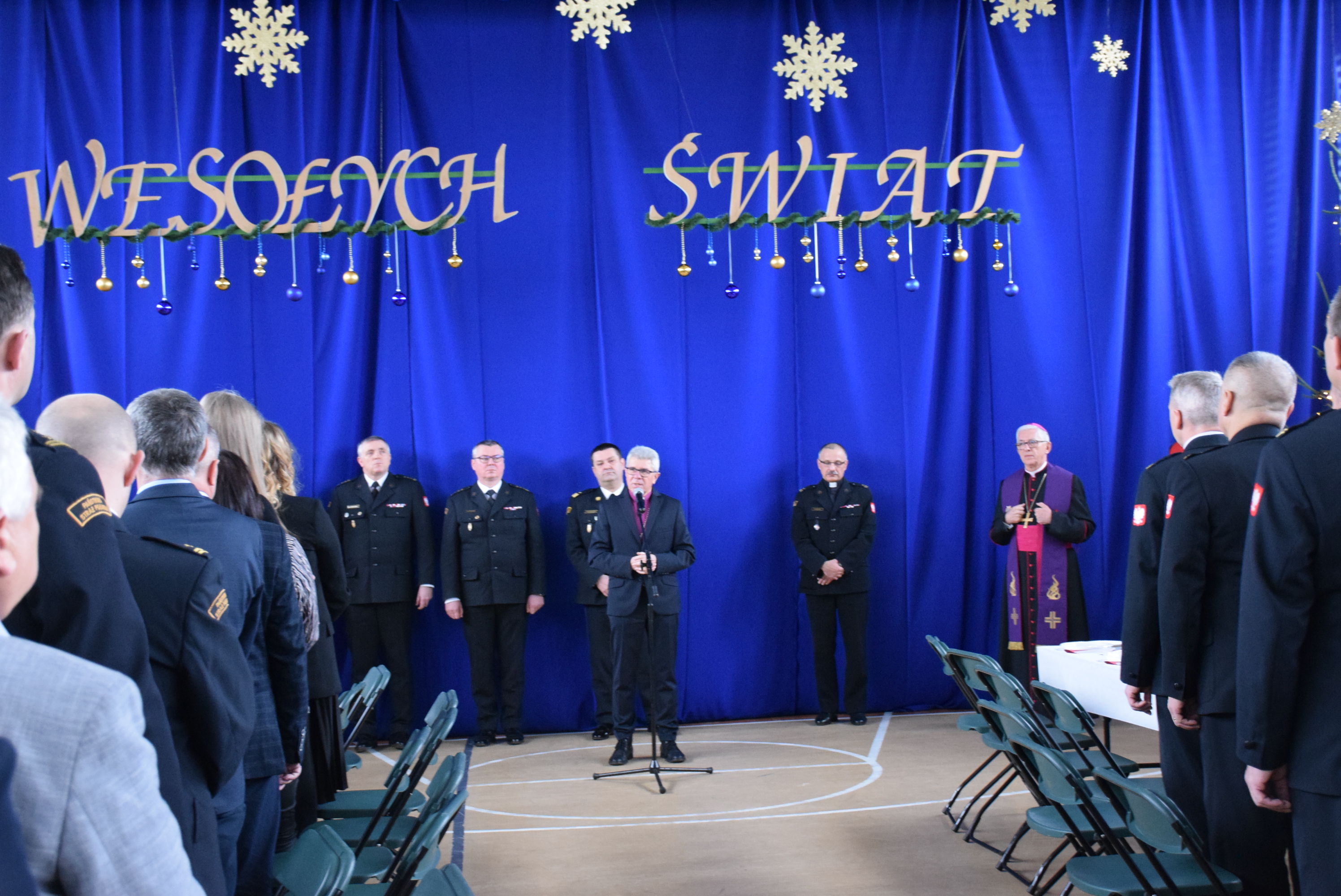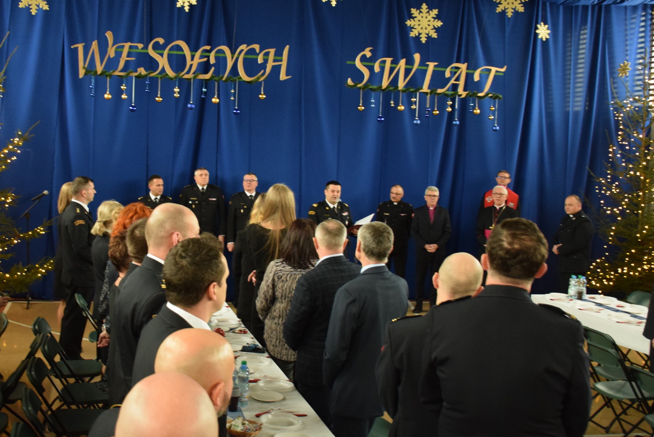 Śląski Komendant Wojewódzki PSP przekazał wszystkim funkcjonariuszom i pracownikom cywilnym oraz ich rodzinom życzenia bożonarodzeniowe i noworoczne. W swoim wystąpieniu podziękował także za zaangażowanie w pracę w ciągu całego, mijającego roku. Boże błogosławieństwo przekazał wszystkim obecny na spotkaniu metropolita katowicki - abp. Wiktor Skworc, biskup Diecezji Katowickiej Kościoła Ewangelicko-Augsburskiego - ks. dr Marian Niemiec oraz proboszcz Parafii Ewangelicko-Augsburskiej w Świętochłowicach - ks. Sebastian Olencki.