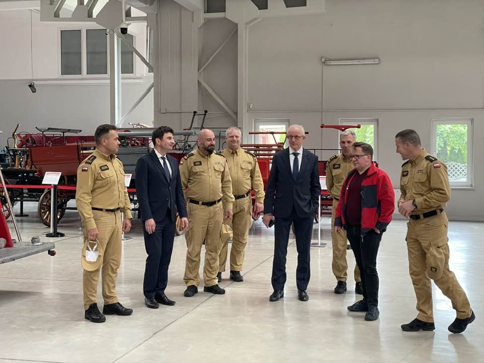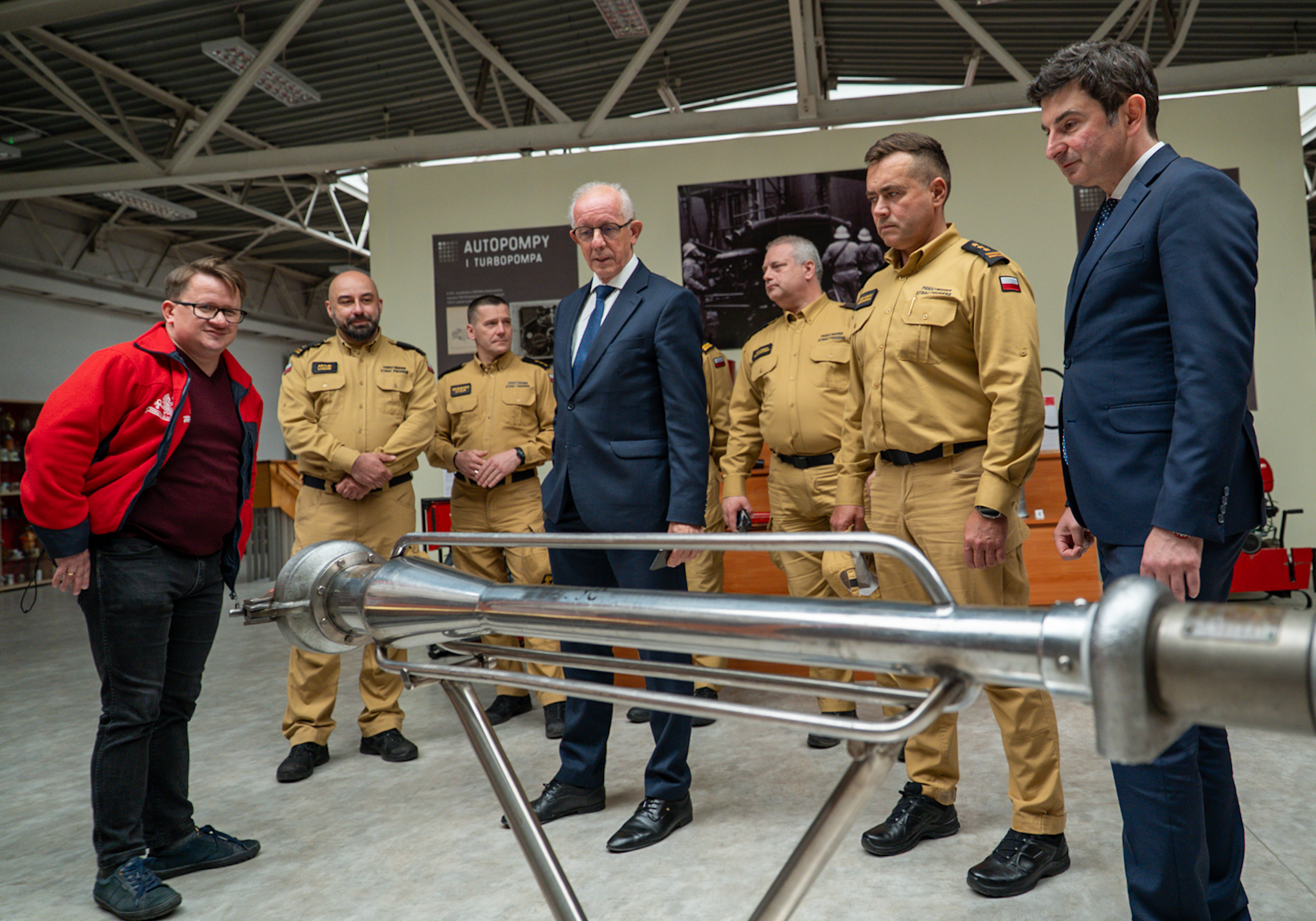 Z Bierunia Podsekretarz Stanu w MSWiA - Pan Wiesław Leśniakiewicz oraz Wojewoda Śląski - Pan Marek Wójcik udali się do Mysłowic, gdzie w Centralnym Muzeum Pożarnictwa zostali oprowadzeni po ekspozycji oraz nowej sali edukacyjnej przez Dyrektora Muzeum mł. bryg. Artura Luzara. Wyjątkowym gościom towarzyszyli Zastępca Śląskiego Komendanta Wojewódzkiego PSP st. bryg. Arkadiusz Krzemiński oraz Komendant Miejski PSP w Mysłowicach st. bryg. Rafał Pietrzyk.