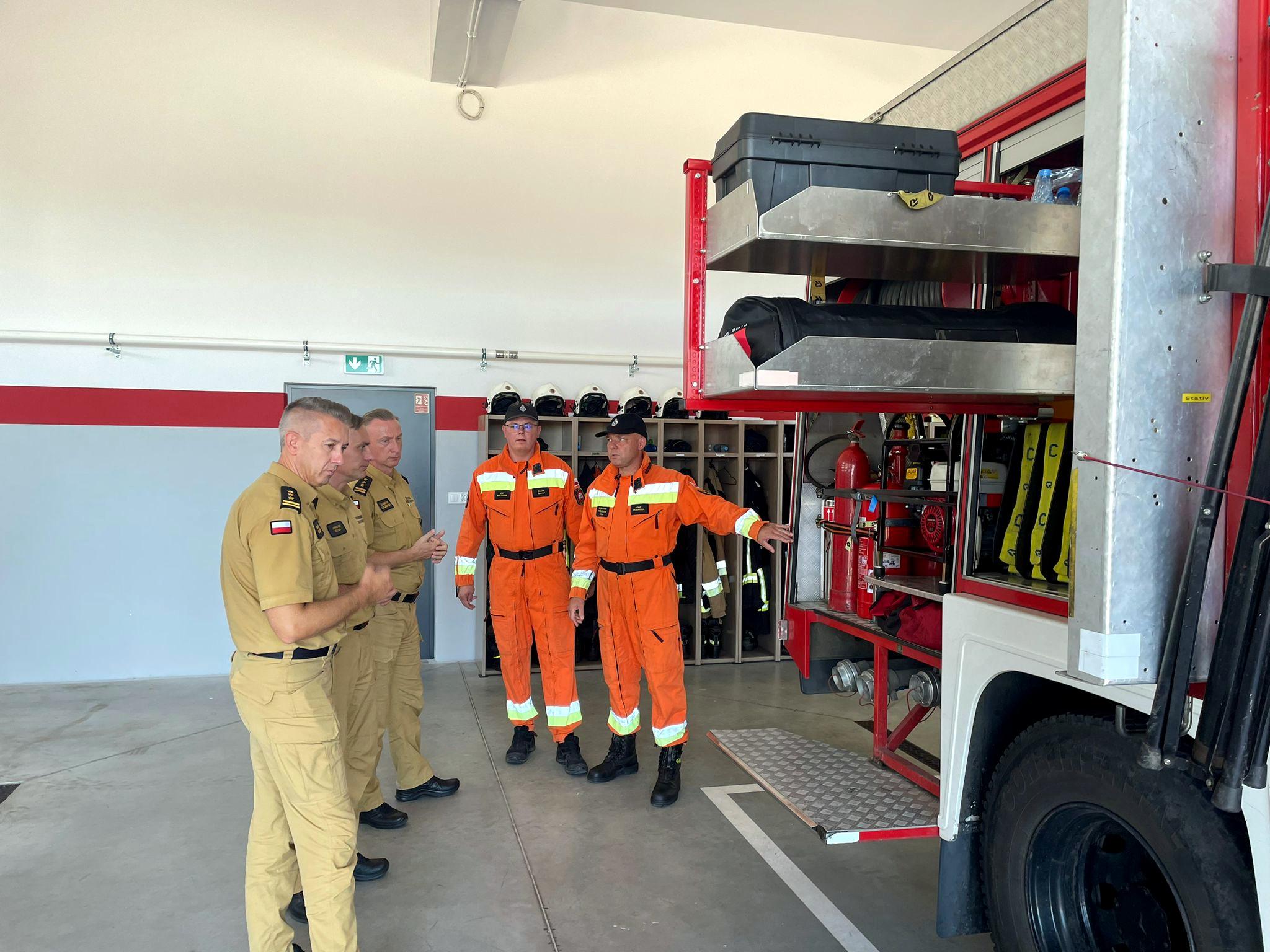 W trakcie wizyty Zastępcy Śląskiego Komendanta Wojewódzkiego PSP zapoznali się także z wyposażeniem jednostki w sprzęt oraz infrastrukturą nowo wybudowanej strażnicy.