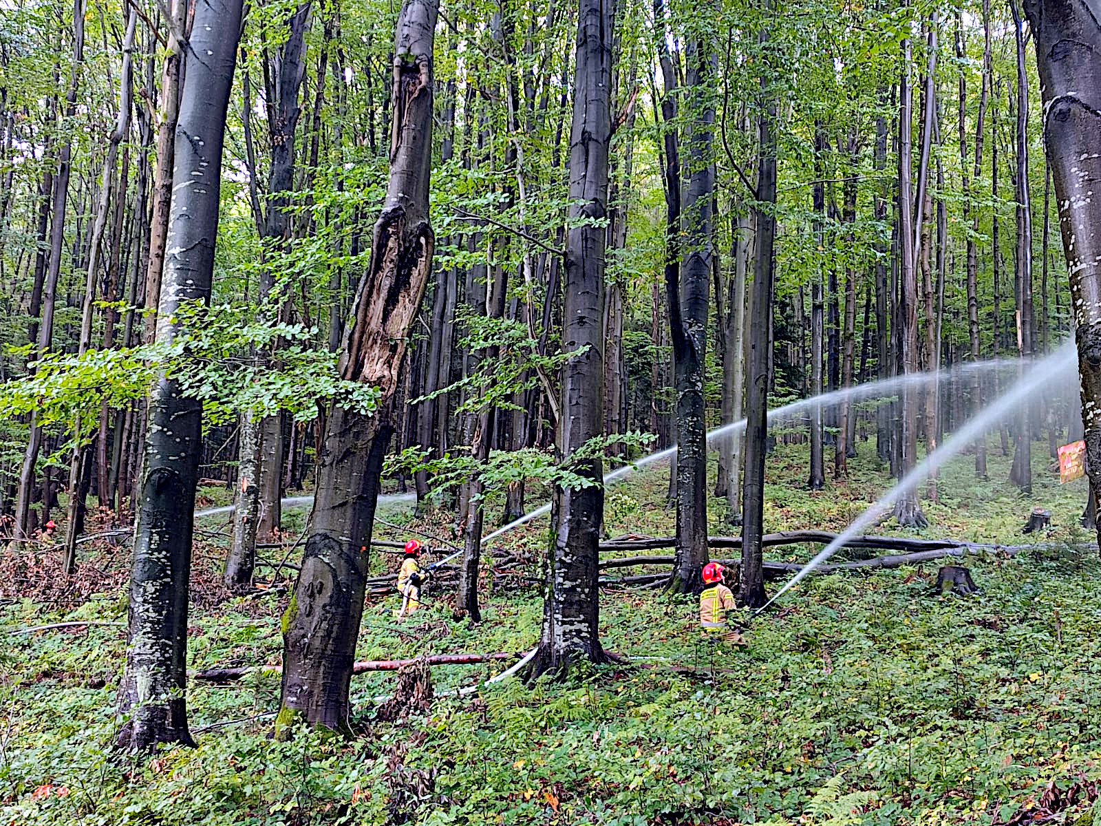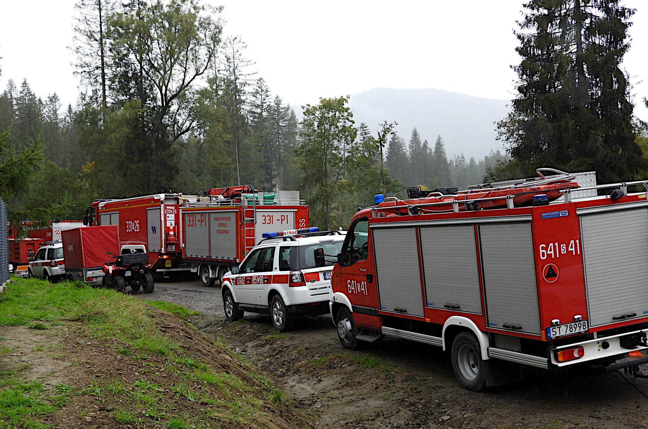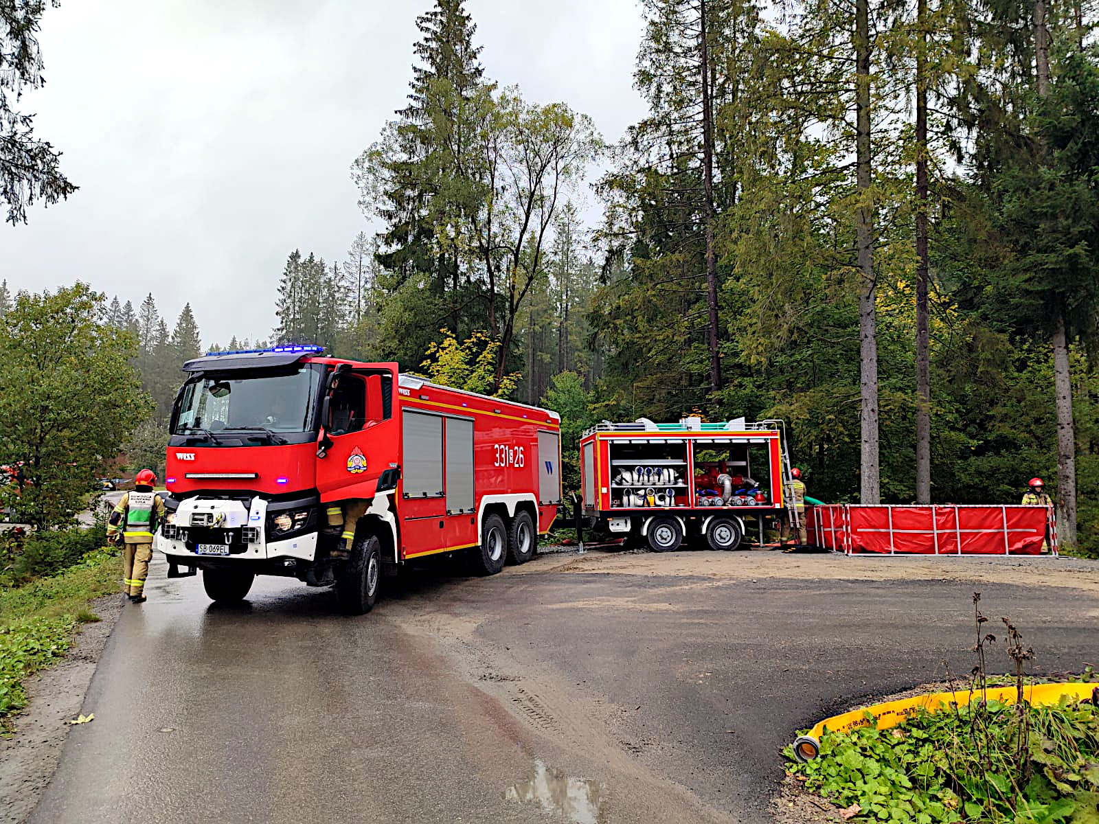 Teren ćwiczeń wizytował Śląski Komendant Wojewódzki PSP nadbryg. Jacek Kleszczewski z Zastępcą st. bryg. Mirosławem Synowcem oraz Komendantem Powiatowym PSP w Żywcu bryg. Łukaszem Węglińskim. Kierownik ćwiczeń wraz z szefem sztabu zreferowali organizację pracy sztabu. Omówili także aktualną sytuację na odcinkach bojowych.