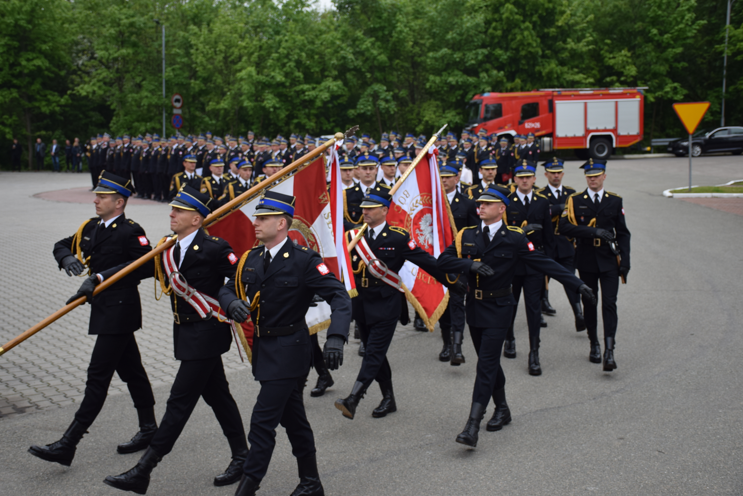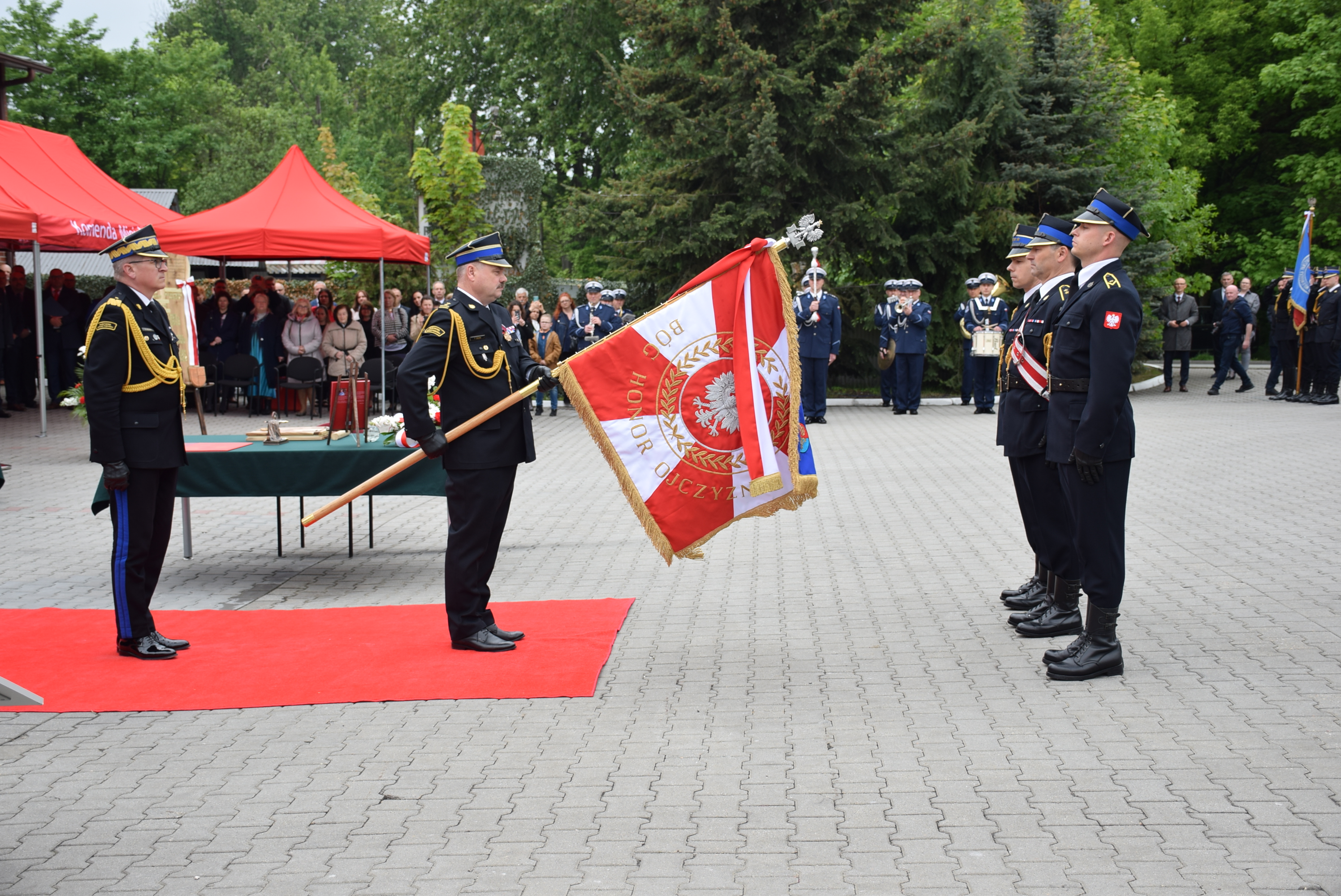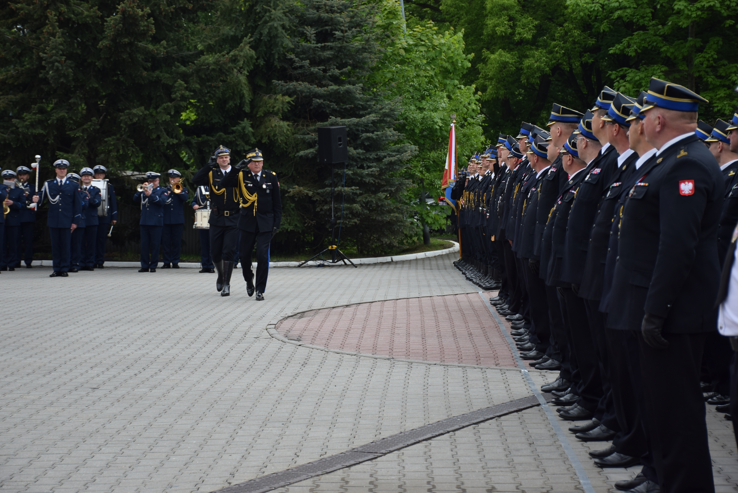 Uroczystość uświetnili: Kompania Reprezentacyjna Komendy Wojewódzkiej PSP w Katowicach wraz z pocztem sztandarowym Komendy Wojewódzkiej Państwowej Straży Pożarnej w Katowicach oraz Orkiestra Komendy Wojewódzkiej Policji w Katowicach.