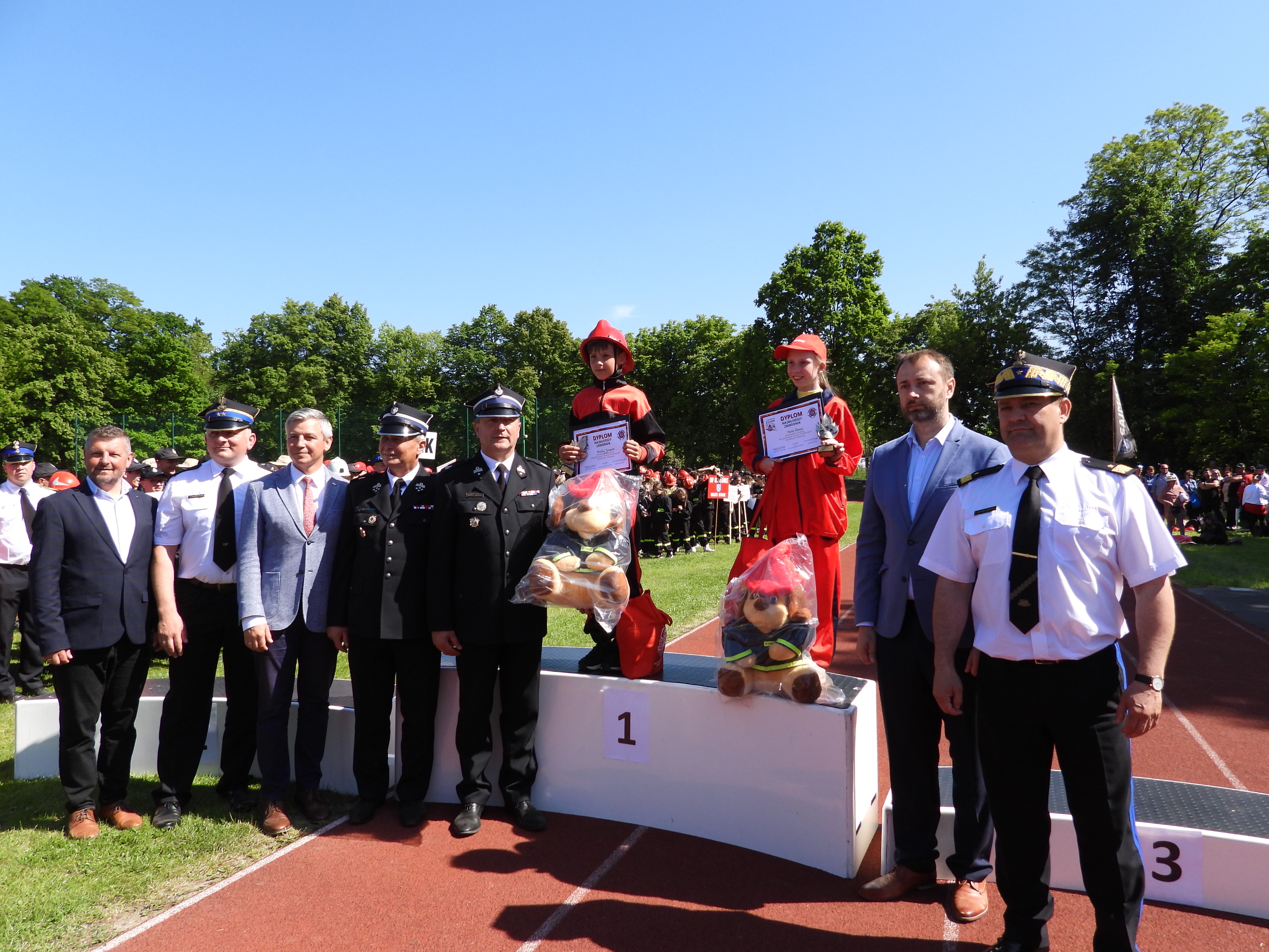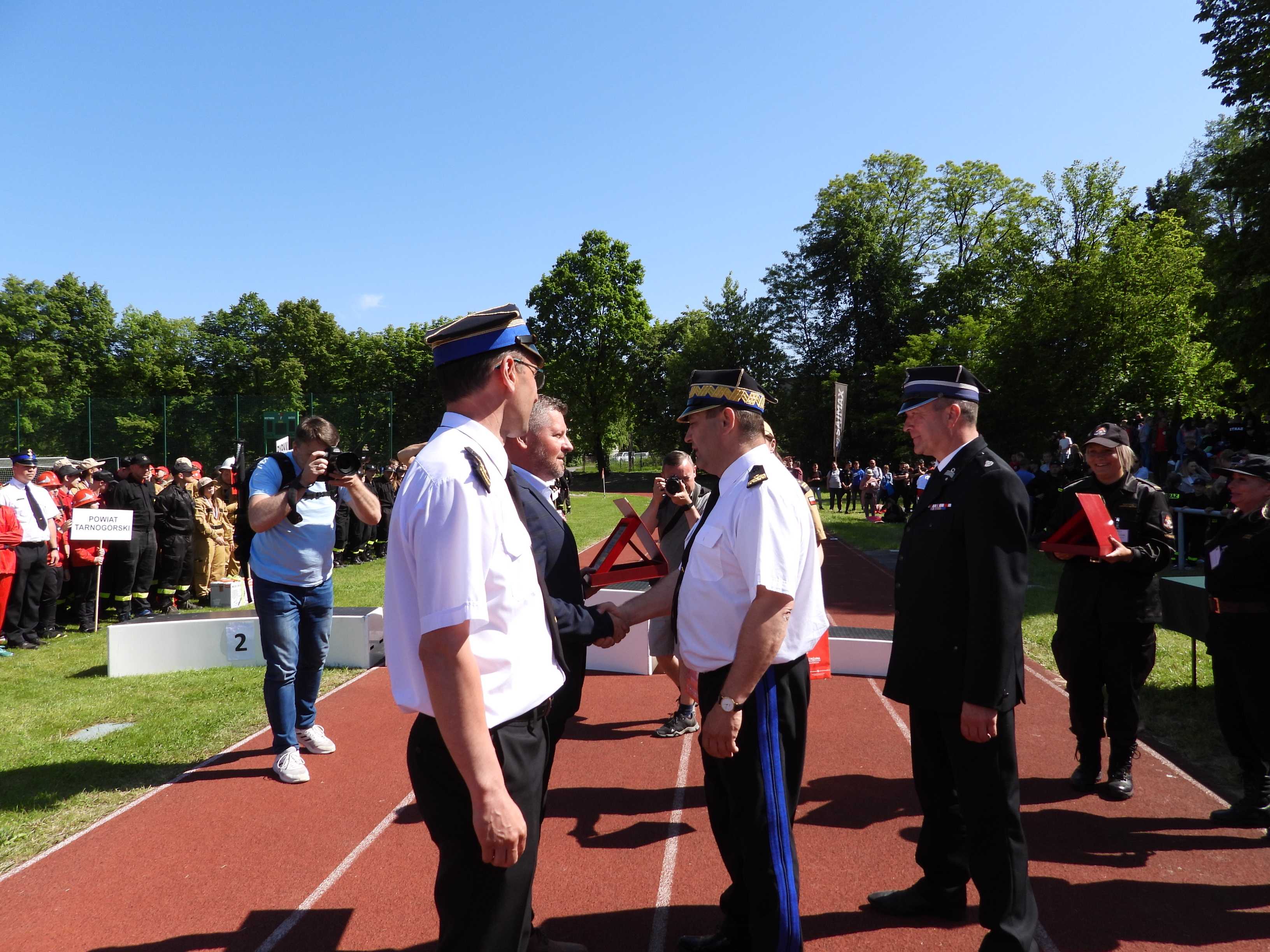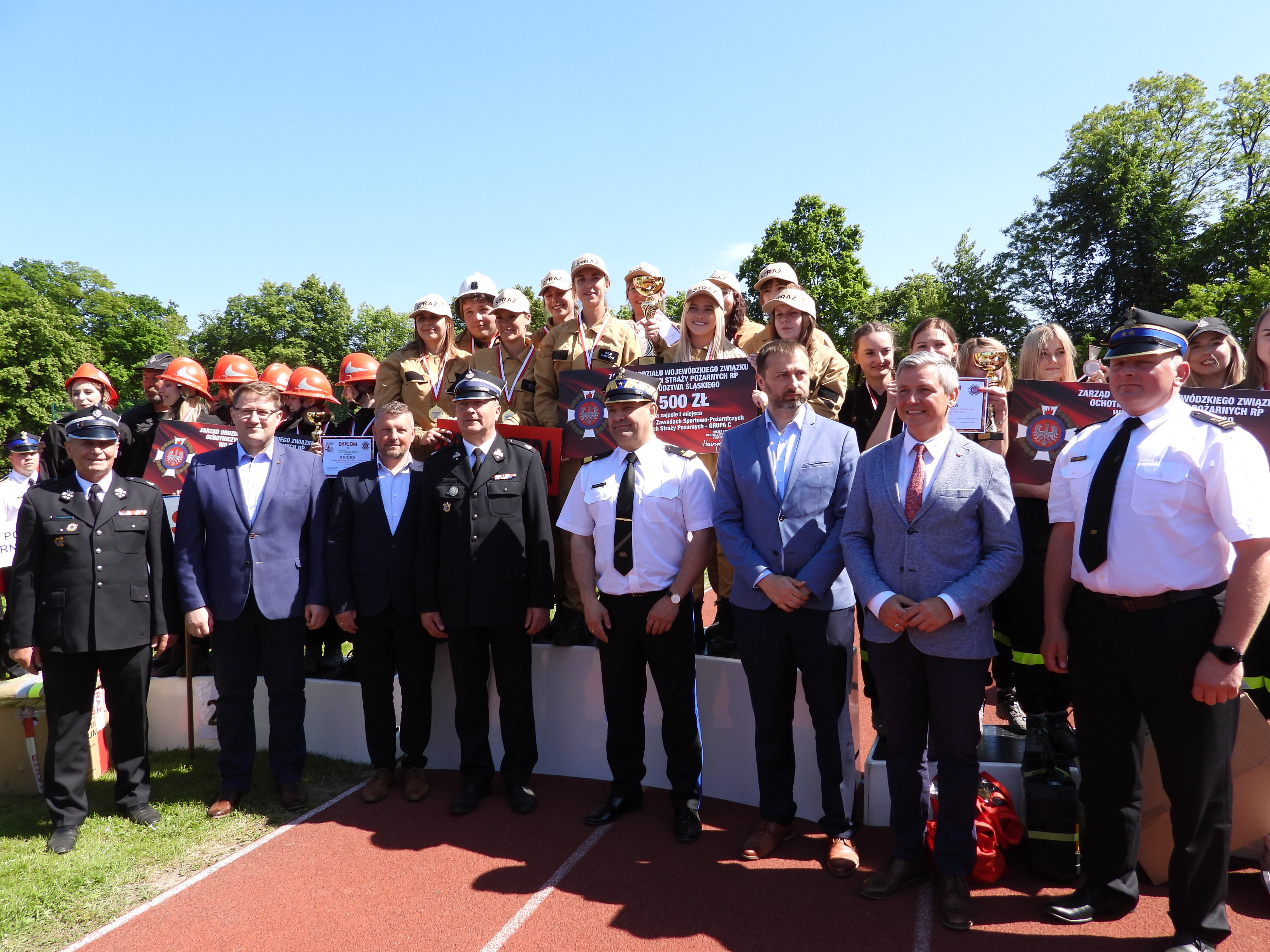 W podziękowaniu za przygotowanie i organizację Zawodów śląski komendant wojewódzki PSP oraz prezes Zarządu OW ZOSP RP woj. śląskiego dh Henryk Kiepura wręczyli okolicznościowe statuetki, które otrzymali Pan Artur Beniowski wójt Gminy Bestwina i st. bryg. Wojciech Kruczek sędzia główny Zawodów.