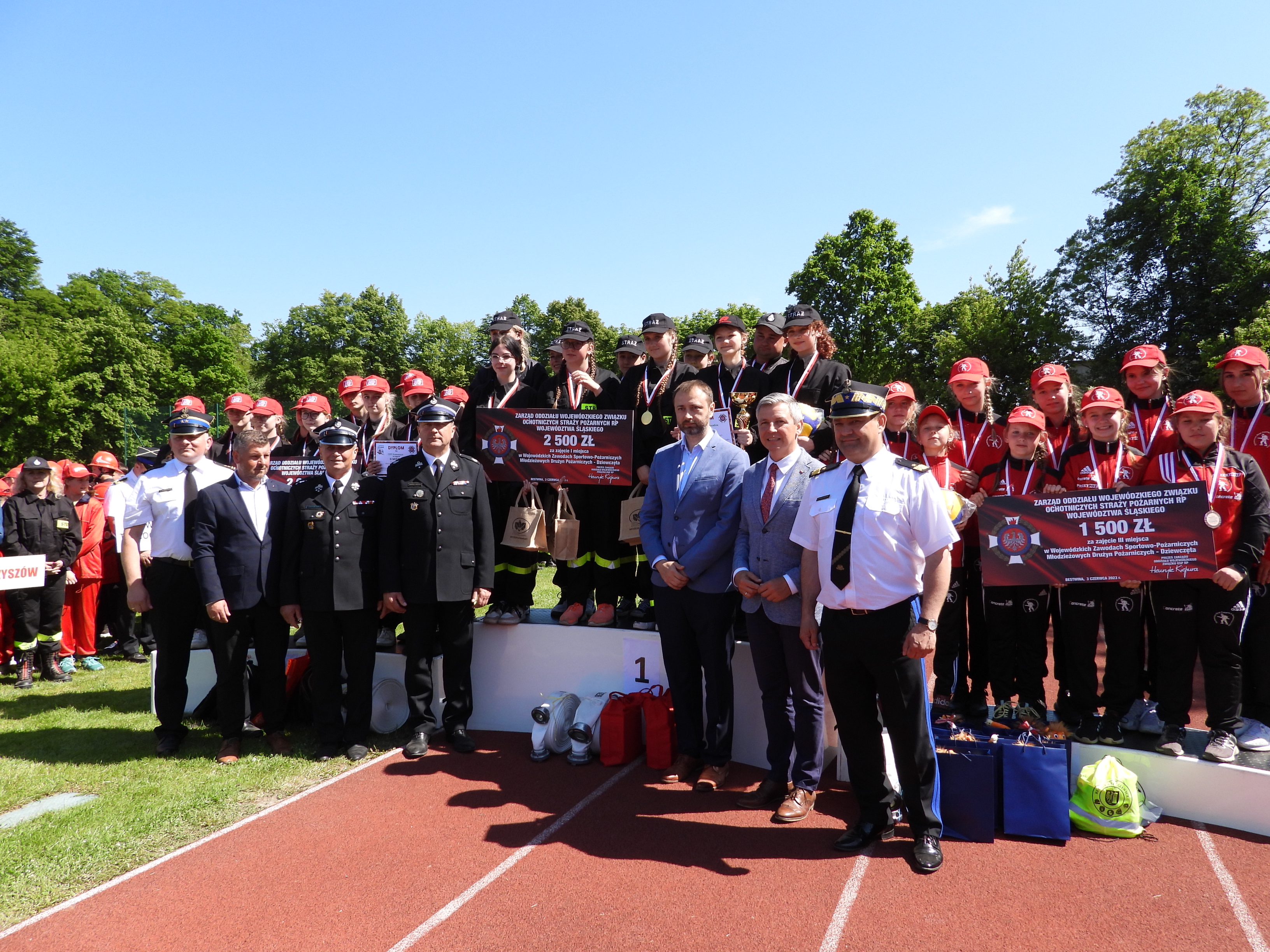 Wszystkim wyróżnionym puchary, medale, dyplomy i nagrody wręczali: śląski komendant wojewódzki PSP nadbryg. Jacek Kleszczewski, prezes Zarządu OW ZOSP RP woj. śląskiego dh Henryk Kiepura, Pan Przemysław Drabek poseł na Sejm RP, prezes Wojewódzkiego Funduszu Ochrony Środowiska i Gospodarki Wodnej w Katowicach Pan Tomasz Bednarek, Pan Artur Beniowski wójta Gminy Bestwina, bryg. Roman Marekwica komendant miejski PSP w Bielsku - Białej i Pan Stanisław Nycz prezes Zarządu Oddziału Powiatowego ZOSP RP w Bielsku-Białej.