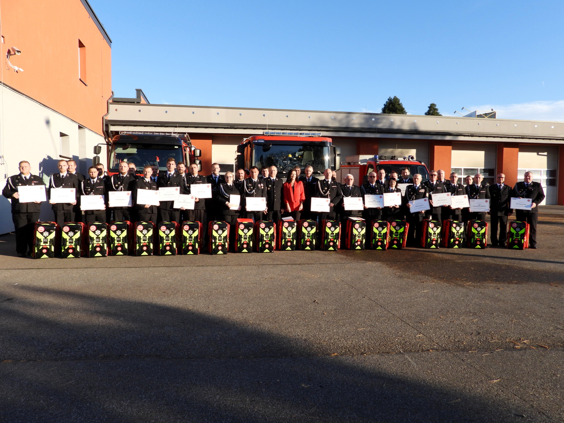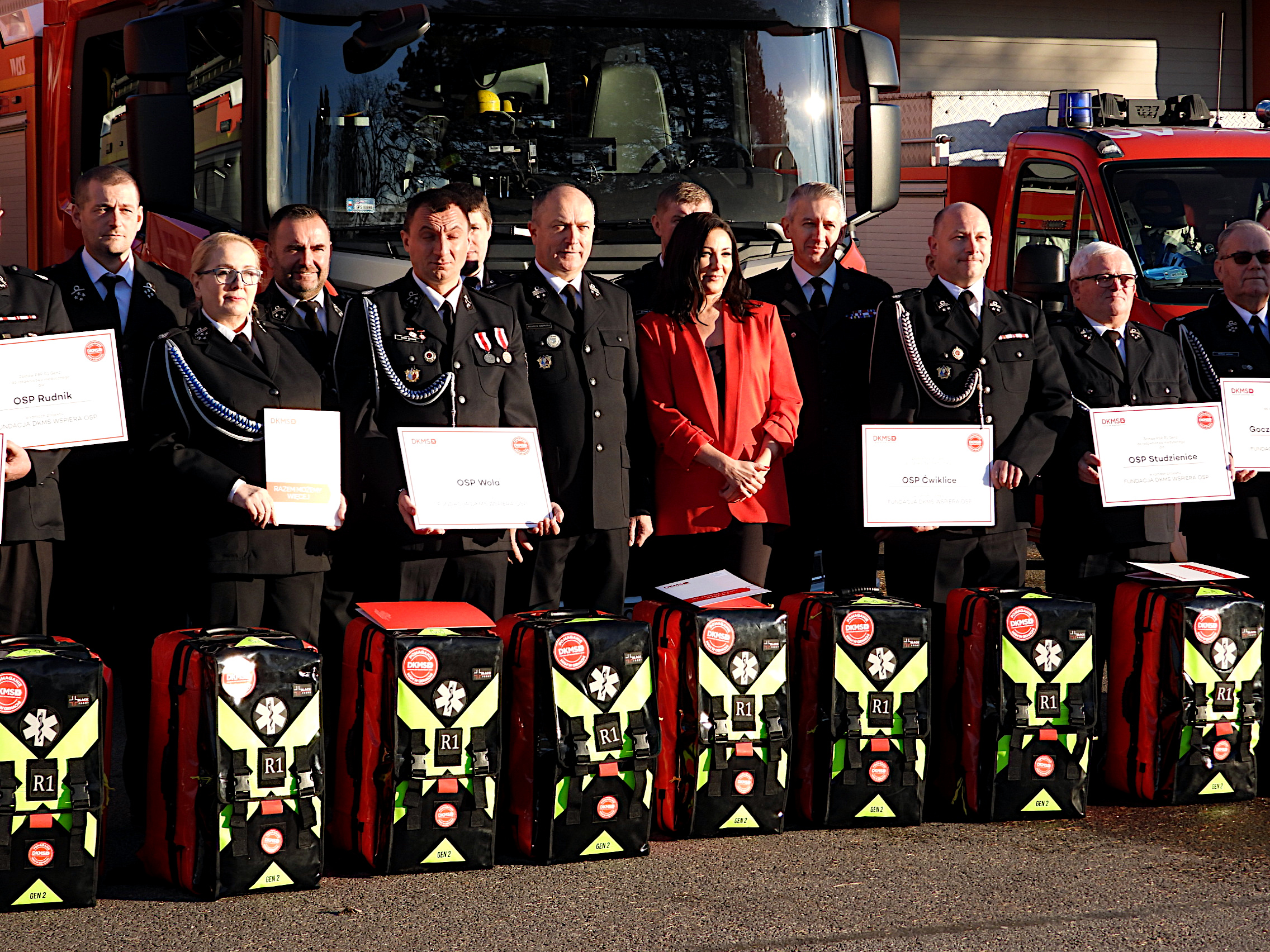Wsparcie dla jednostek OSP z terenów dotkniętych skutkami powodzi – Fundacja DKMS przekazała plecaki PSP R1