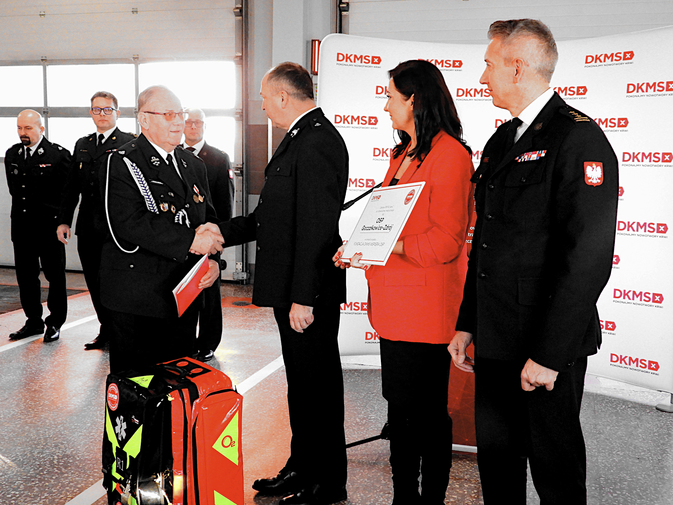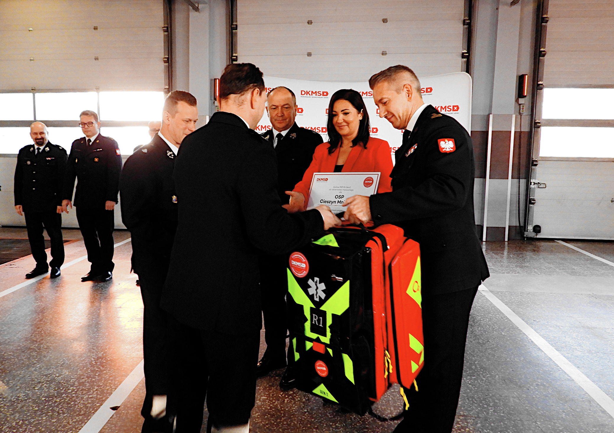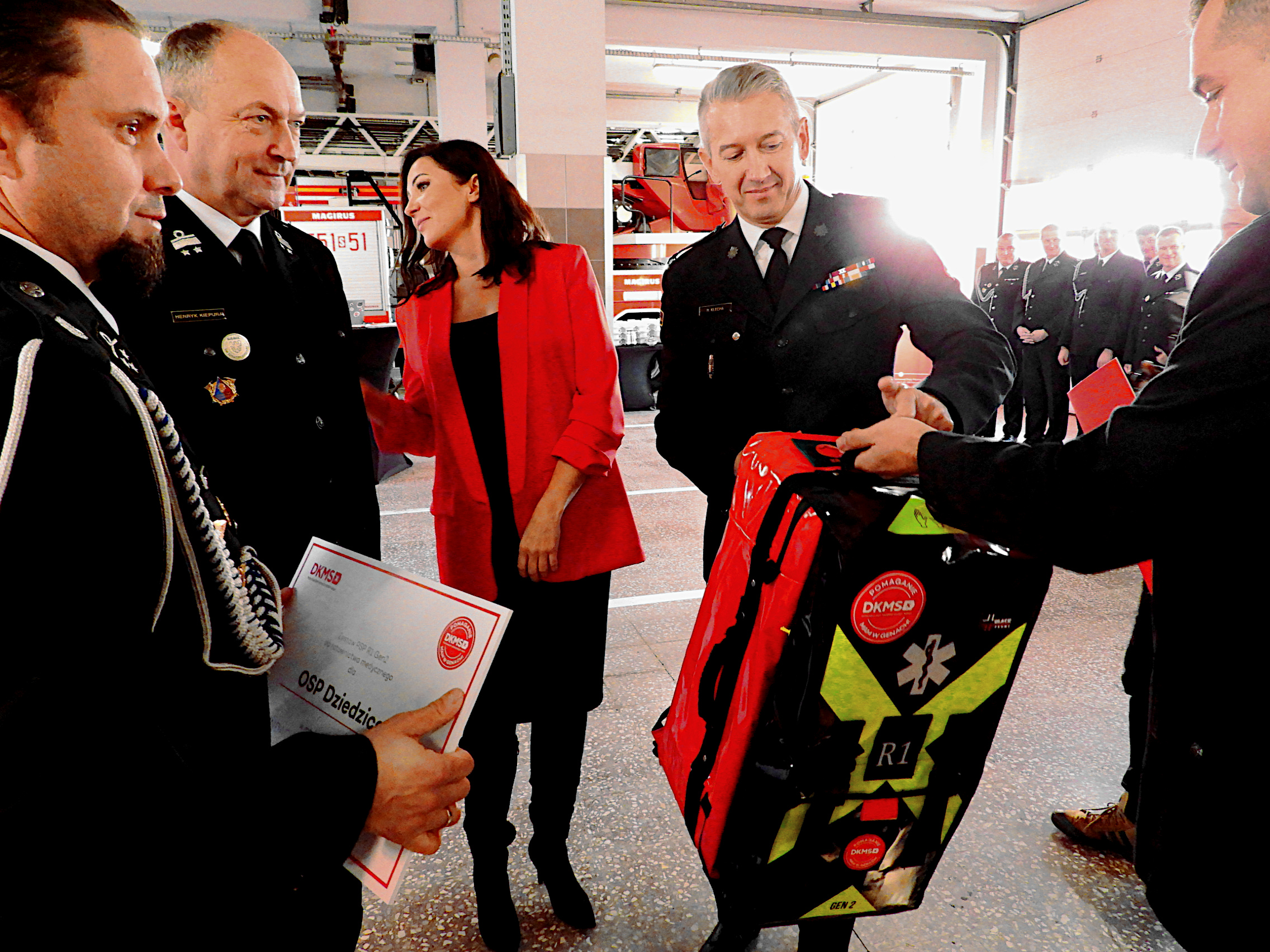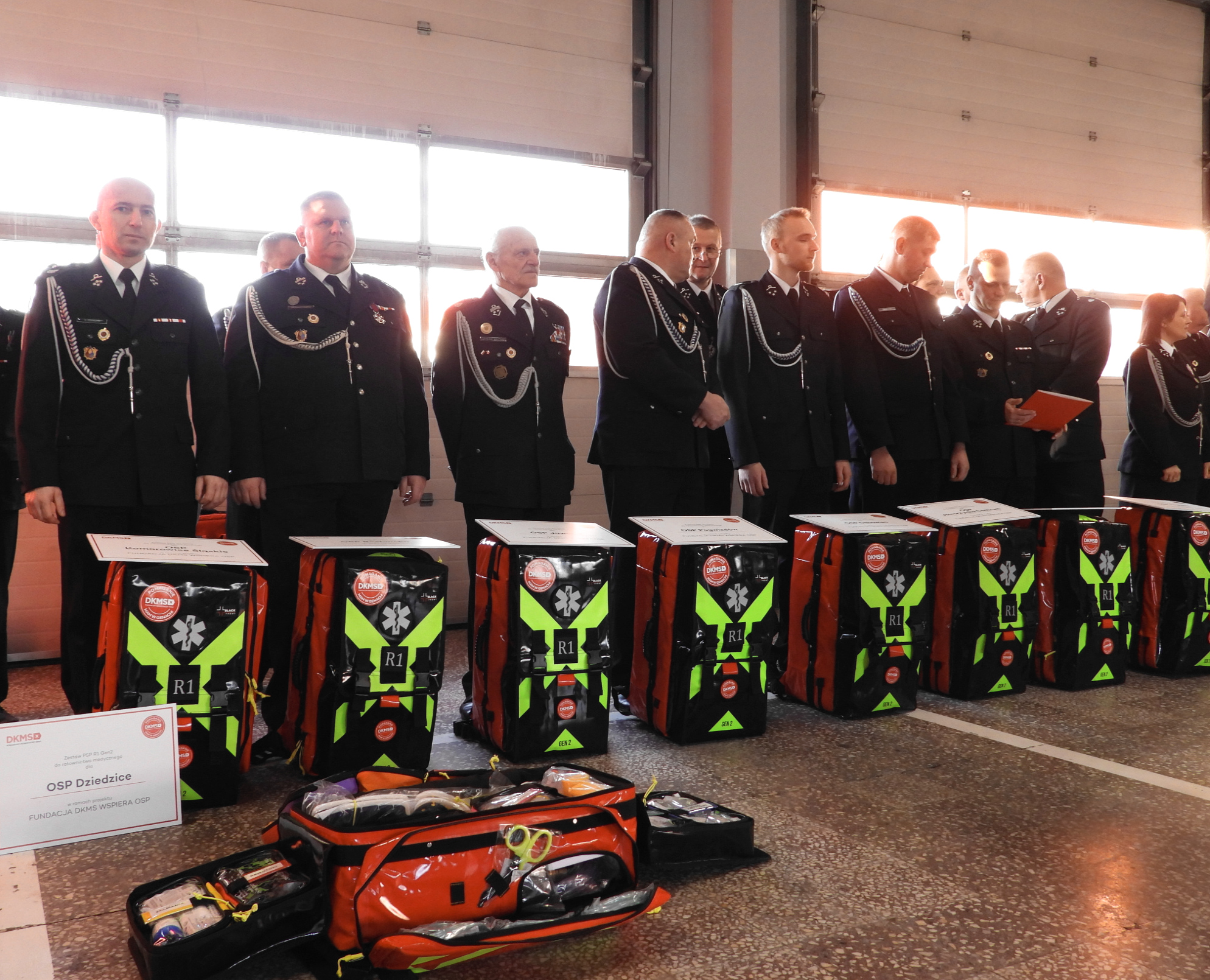 Obecny na przekazaniu Pan Henryk Kiepura - Wiceminister Edukacji Narodowej, Prezes Zarządu Oddziału Wojewódzkiego Związku Ochotniczych Straży Pożarnych RP Województwa Śląskiego skierował słowa podziękowania do druhen i druhów, którzy w trudnych, wrześniowych dniach po raz kolejny stanęli na wysokości zadania - (...) Strażacy z OSP i PSP, ramię w ramię, nieśli tam pomoc - i za to należą im się wyrazy szacunku (…) Bardzo dziękuję również Fundacji DKMS, z którą łączy nas wspólna misja - ratowanie bliźnich. Dziękuję, że fundacja dostrzegła wysiłek strażaków, przeznaczając zestawy medyczne PSP R1 w plecaku, które są bardzo istotnym elementem wyposażenia medycznego, pomagającego ratować życie i zdrowie" – dodał.