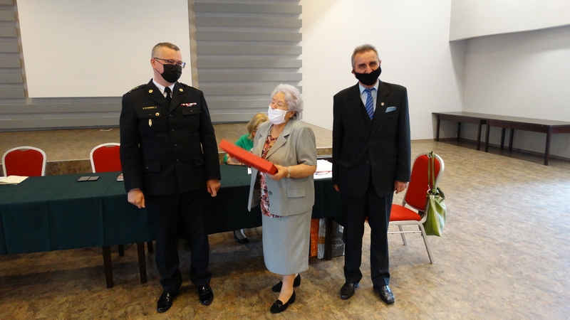 Kol. Irenie Zbylut – (skarbnik ZW od początku powstania) z okazji okrągłej rocznicy urodzin oraz zaangażowania na rzecz naszej organizacji - Prezes ZW wraz z Zastępcą Śląskiego Komendanta Wojewódzkiego wręczyli okolicznościowy ryngraf.