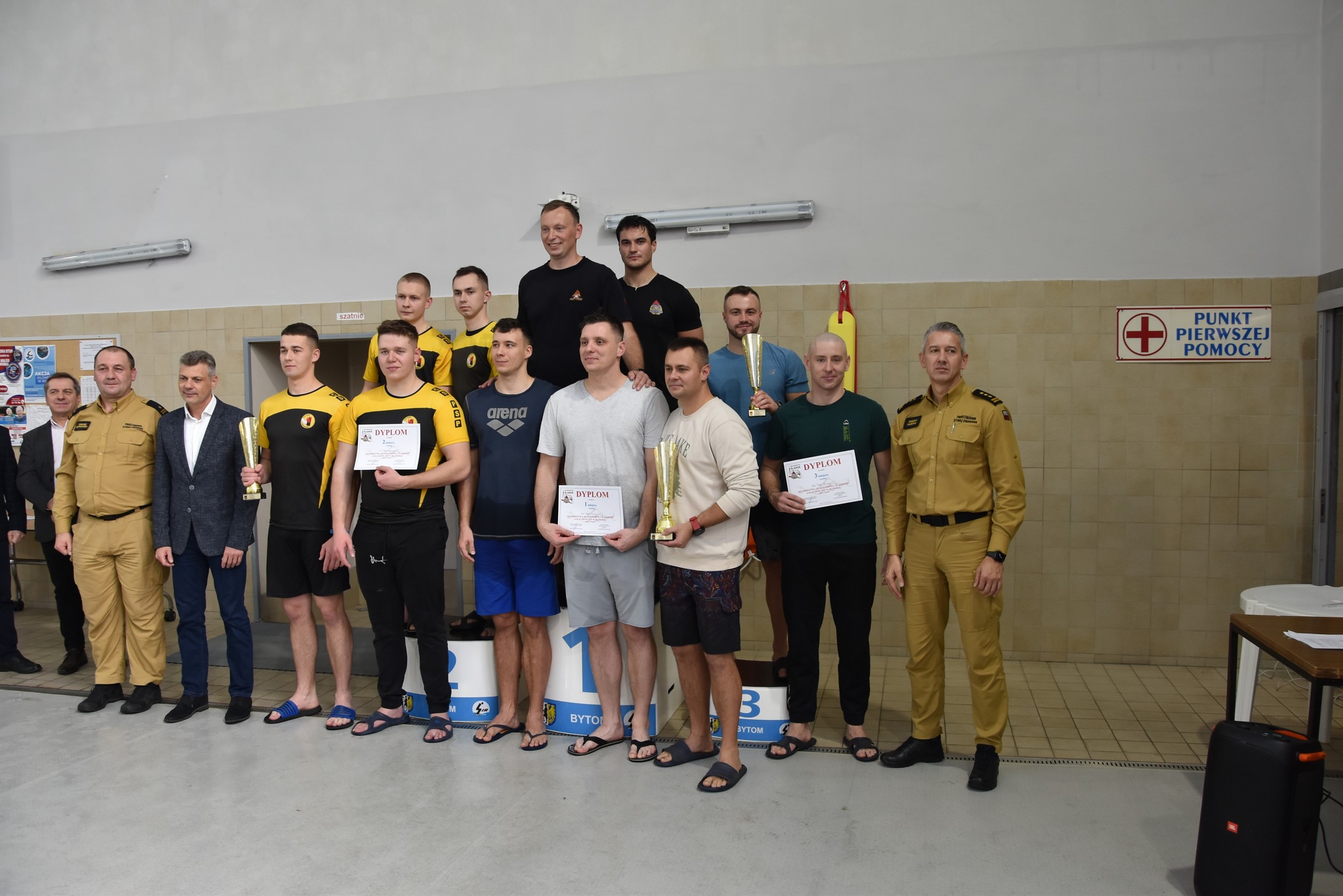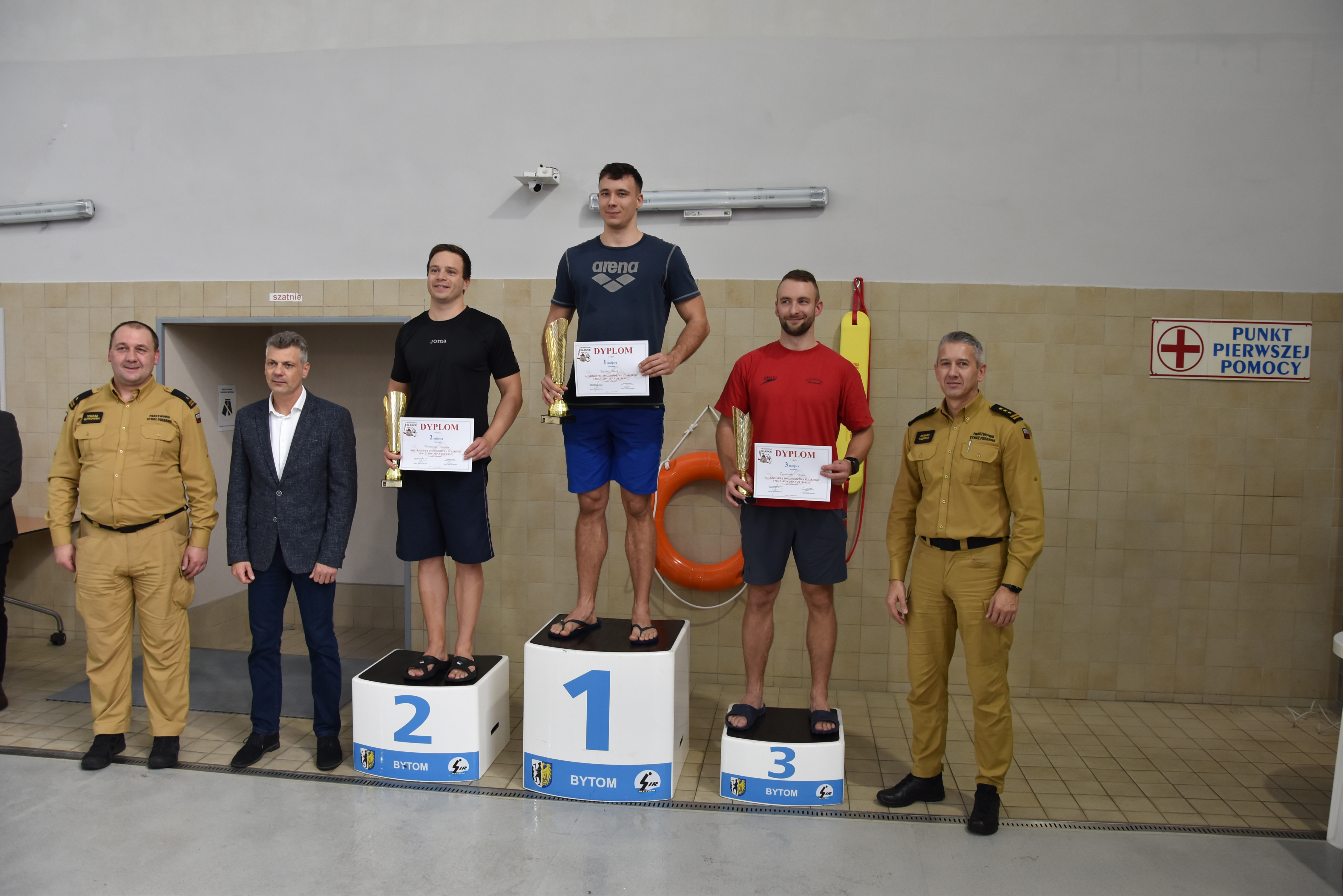 Uroczystego podsumowania Mistrzostw i wręczenia pucharów dokonali: Zastępca Śląskiego Komendanta Wojewódzkiego PSP st. bryg. Roman Klecha, Prezydent Miasta Bytom Pan Mariusz Wołosz, Komendant Miejski PSP w Bytomiu mł. bryg. Tomasz Rutkowski.