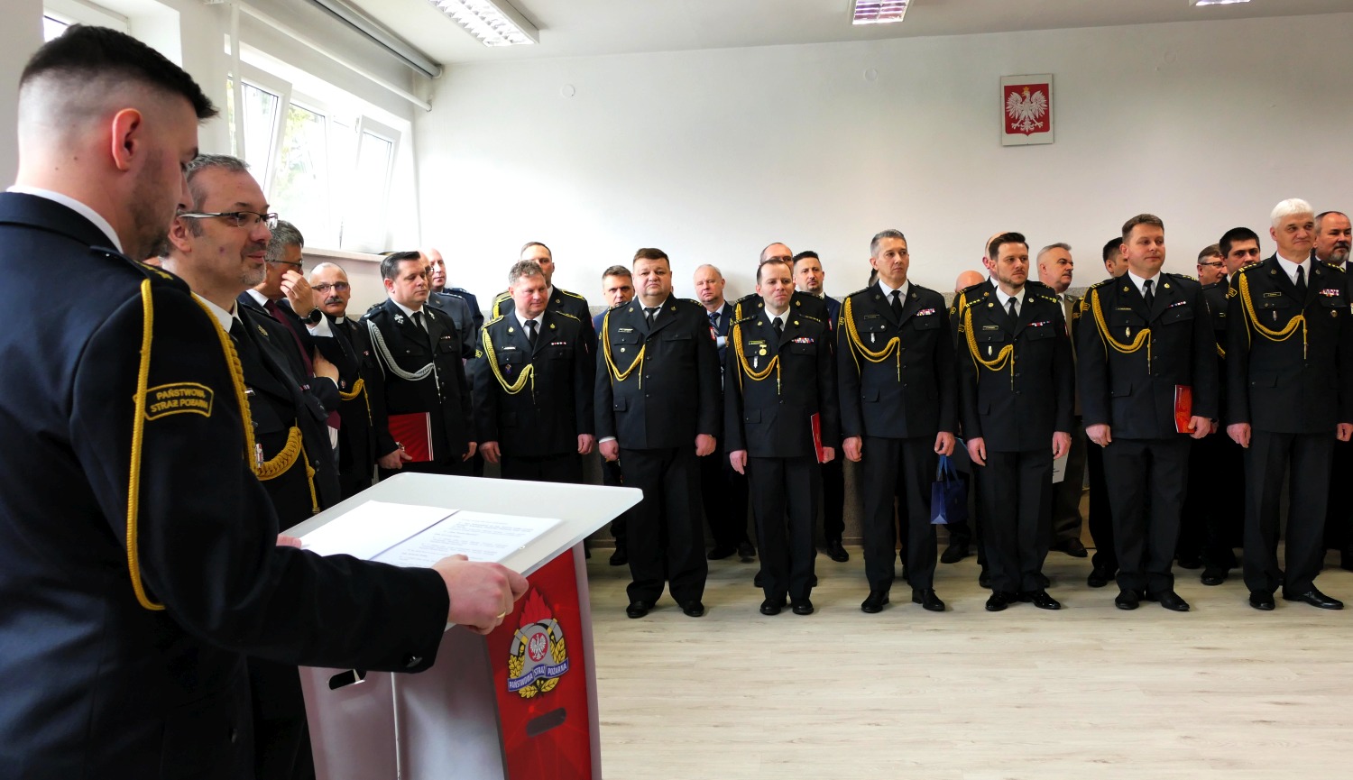 Uroczystość rozpoczęła się od złożenia meldunku Śląskiemu Komendantowi Wojewódzkiemu Państwowej Straży Pożarnej nadbryg. Jackowi Kleszczewskiemu, po której miała miejsce ceremonia zdania i przyjęcia obowiązków Komendanta Powiatowego PSP w Cieszynie.