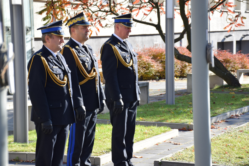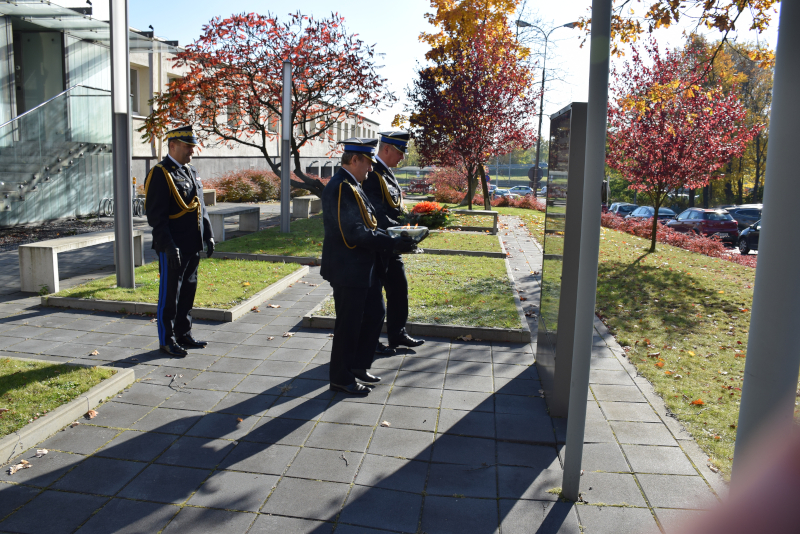 W związku ze zbliżającym się dniem Wszystkich Świętych - 28 października 2021 roku - w imieniu śląskich strażaków Śląski Komendant Wojewódzki PSP nadbryg. Jacek Kleszczewski w asyście zastępców - st. bryg. Bogdana Jędrochy oraz st. bryg. Mirosława Synowca złożył kwiaty i zapalił znicz przed tablicą upamiętniającą poległych na służbie.