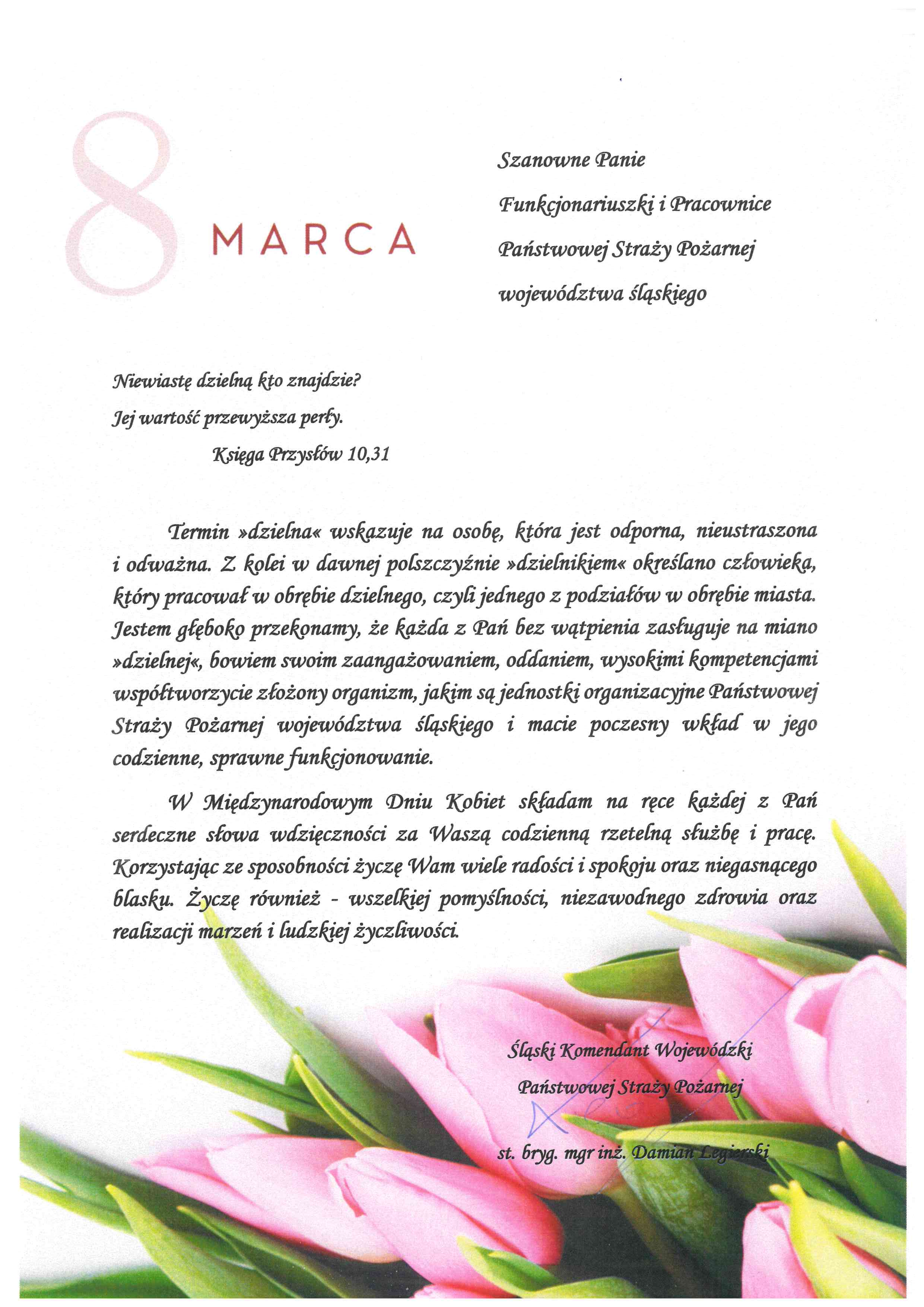 Życzenia Śląskiego Komendanta Wojewódzkiego PSP z okazji Dnia Kobiet