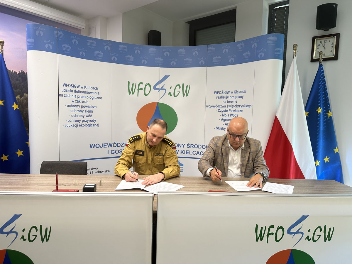 W dniu 20 października 2025 r. w siedzibie Wojewódzkiego Funduszu Ochrony Środowiska i Gospodarki Wodnej w Kielcach odbyło się podpisanie umowy pomiędzy Wojewódzkim Funduszem Ochrony Środowiska i Gospodarki Wodnej w Kielcach a Komendą Wojewódzką Państwowej Straży Pożarnej w Kielcach na realizację zadania pn.: „Zakup pompy pożarniczej dużej wydajności”. Wartość wsparcia wynosi: 250.000,00 zł.