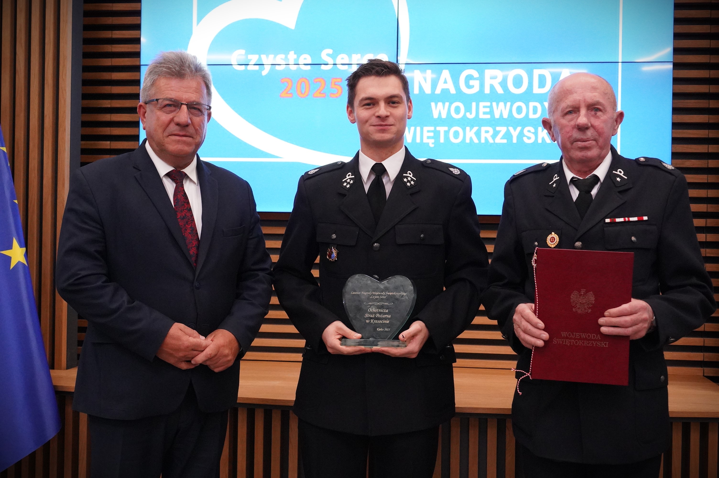 Honorowa nagroda wojewody świętokrzyskiego "Czyste Serce 2025" został przyznana. 30.10.2025 r. w Świętokrzyskim Urzędzie Wojewódzkim wręczono nagrody dla laureatów. Wśród wyróżnionych i nagrodzonych są też akcenty strażackie!