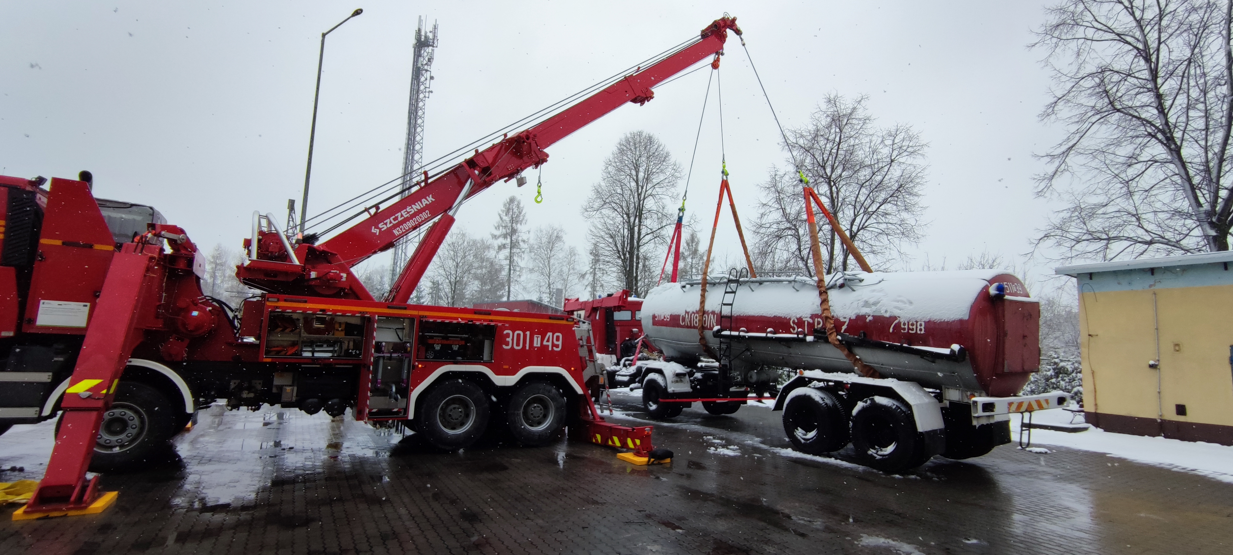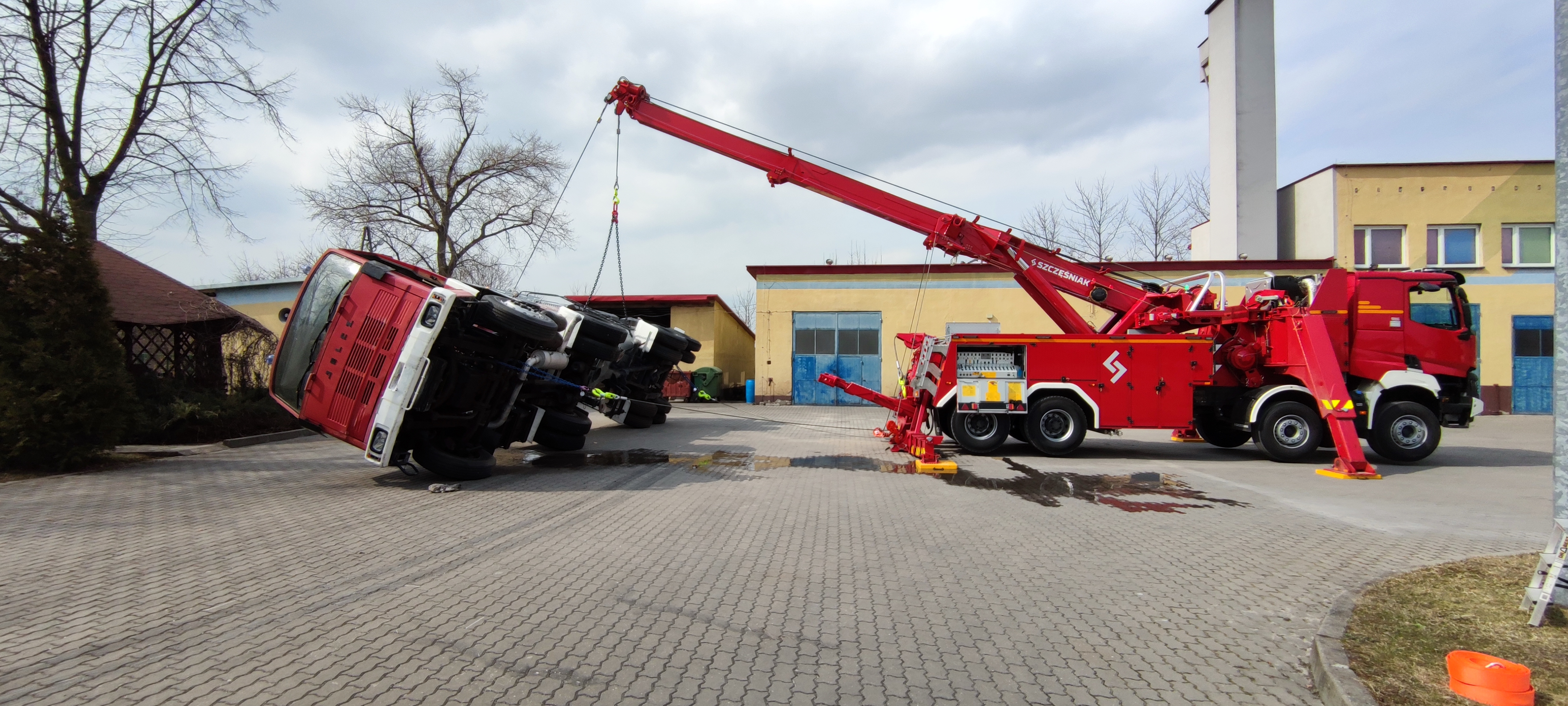 Szkolenie miało na celu doskonalenie strażaków-ratowników w prowadzeniu działań ratowniczych przy udziale ciężkiego pojazdu ratownictwa technicznego z ROTATOREM.