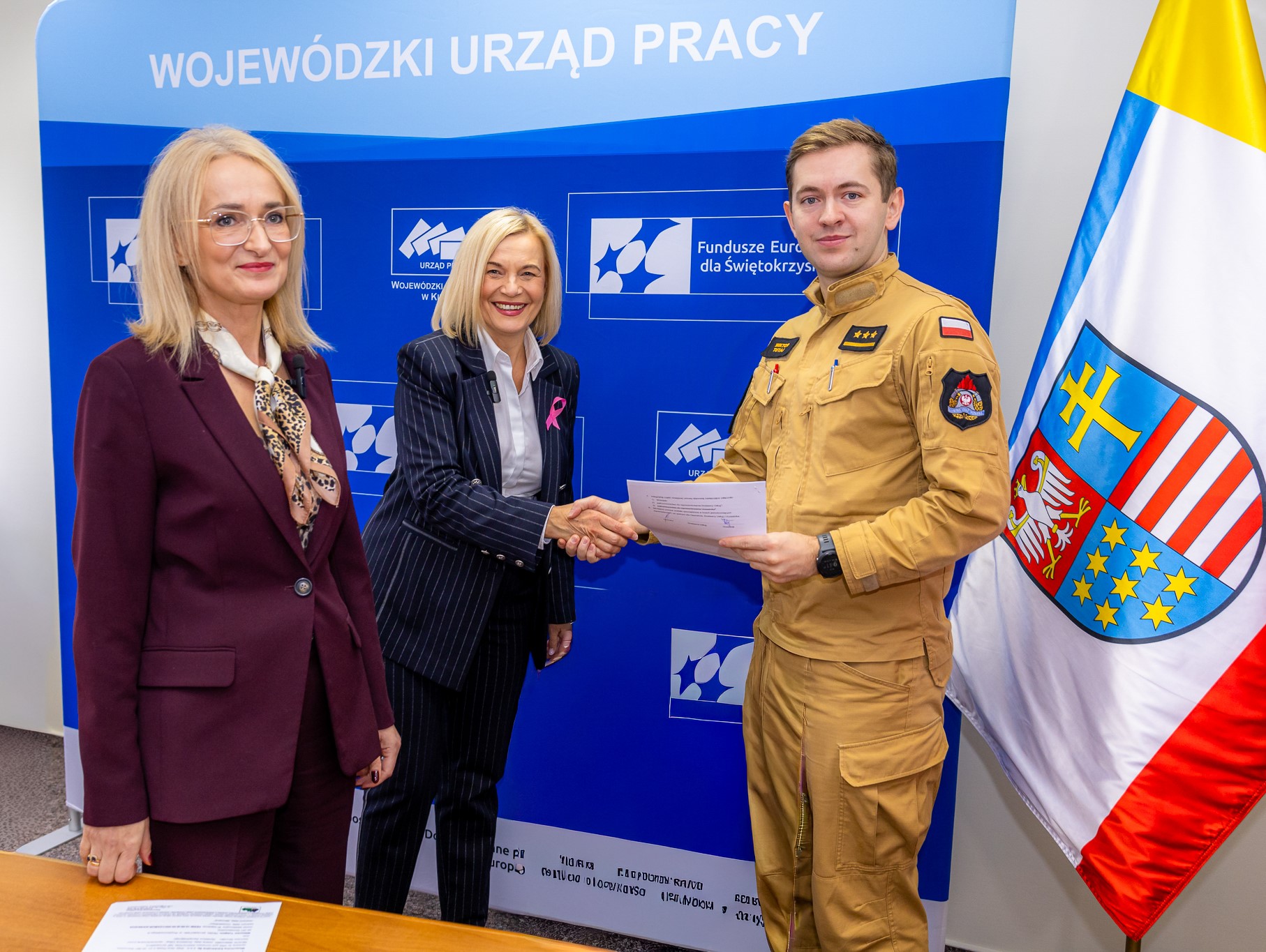Kwota 4 mln zł, zarezerwowana na ten cel w projekcie „Buduj Swój Rozwój – Baza Usług Rozwojowych” umożliwiła udzielenie wsparcia dla blisko 600 beneficjentów, w tym strażaków PSP i OSP. Podpisy pod dokumentami złożyły dyrektor WUP w Kielcach Aleksandra Marcinkowska i wicedyrektor Agnieszka Kubicka. W spotkaniu wzięła udział marszałek województwa Renata Janik.