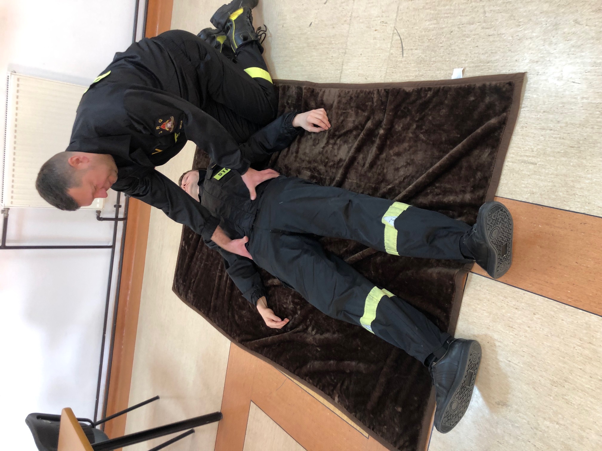 Ponadto, po egzaminie praktycznym z kwalifikowanej pierwszej pomocy 31 strażaków systemu zmianowego oraz dowództwa JRG odbyło ćwiczenie w komorze dymowej.