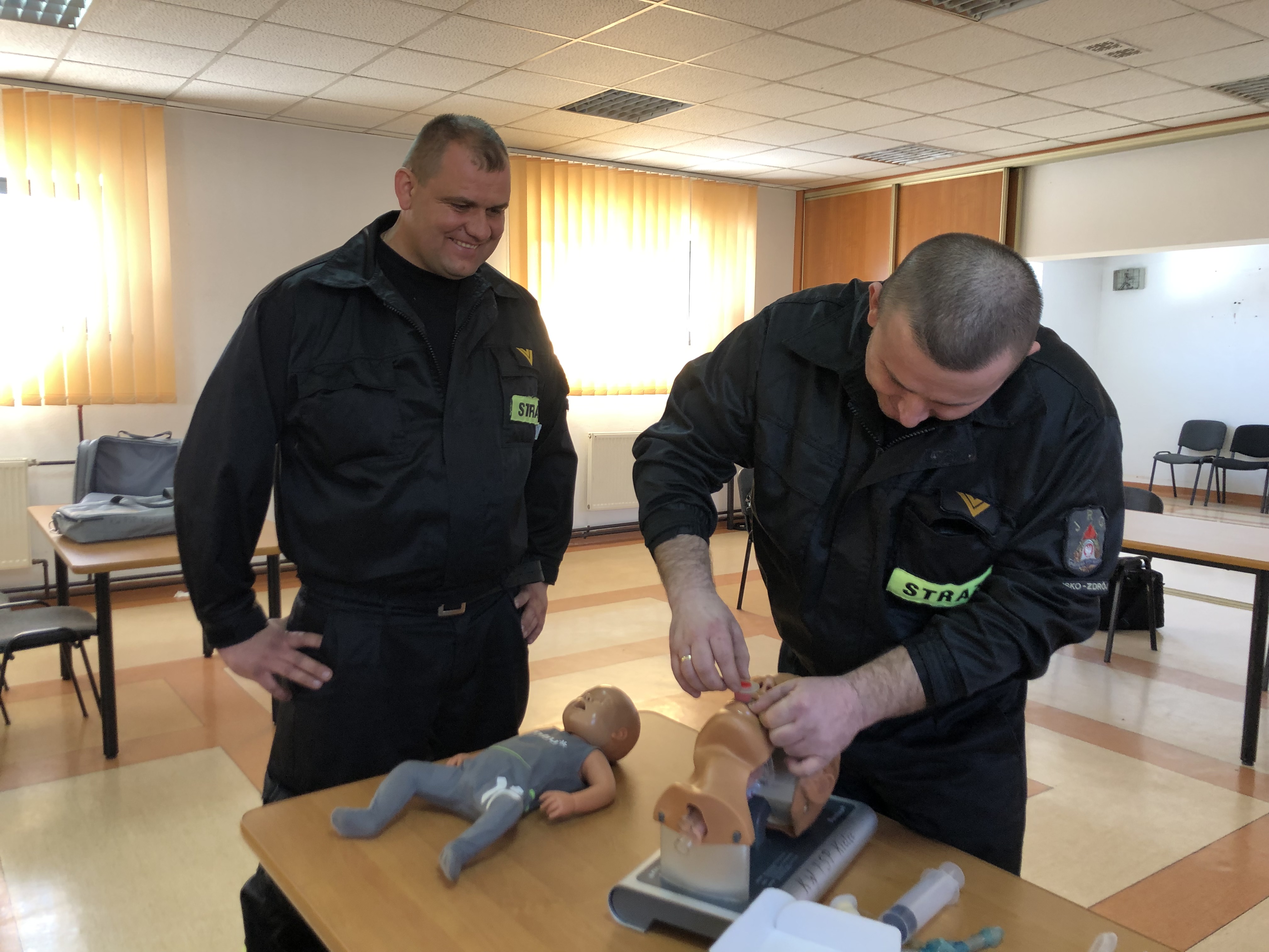 Ponadto, po egzaminie praktycznym z kwalifikowanej pierwszej pomocy 29 strażaków systemu zmianowego odbyło ćwiczenie w komorze dymowej.