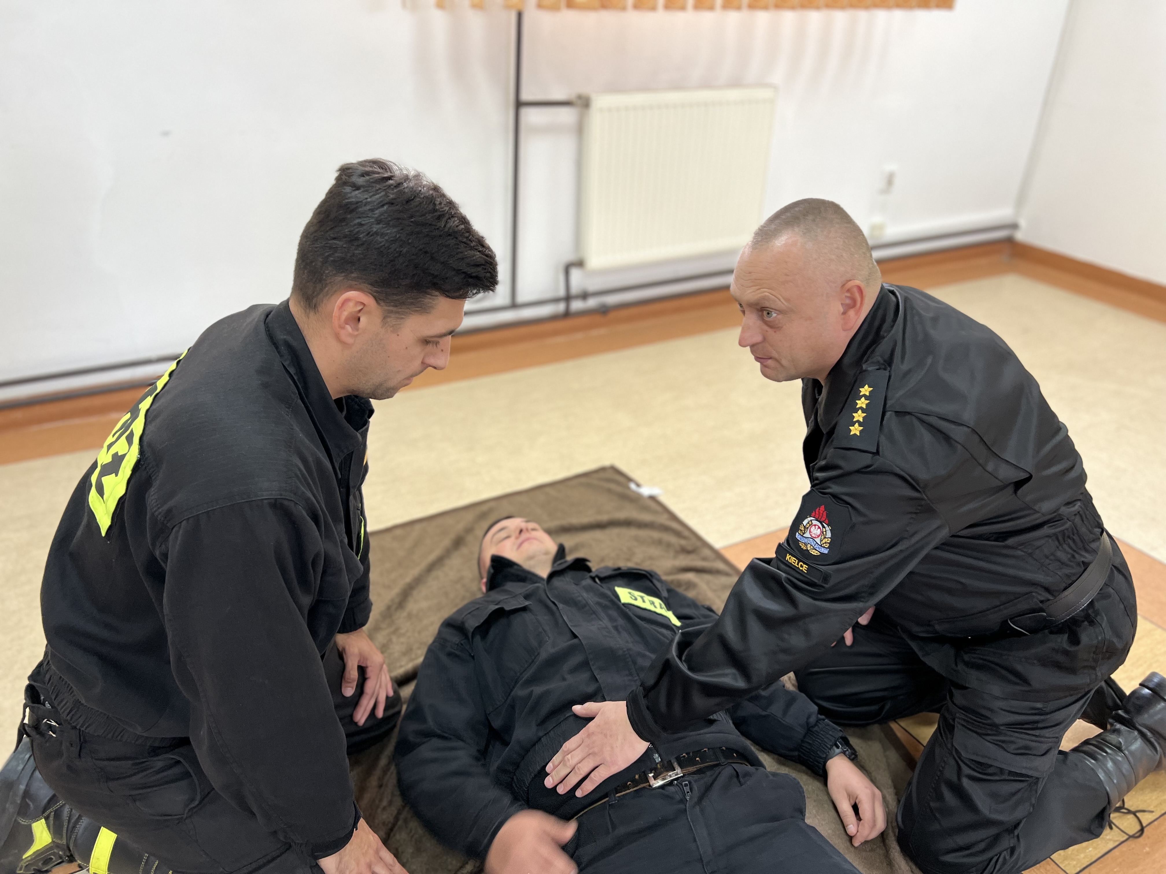 Ponadto, po egzaminie praktycznym z kwalifikowanej pierwszej pomocy 21 strażaków systemu zmianowego odbyło ćwiczenie w komorze dymowej. Natomiast 9 dyżurnych stanowiska kierowania odbyło szkolenie podsumowujące proces doskonalenia zawodowego.