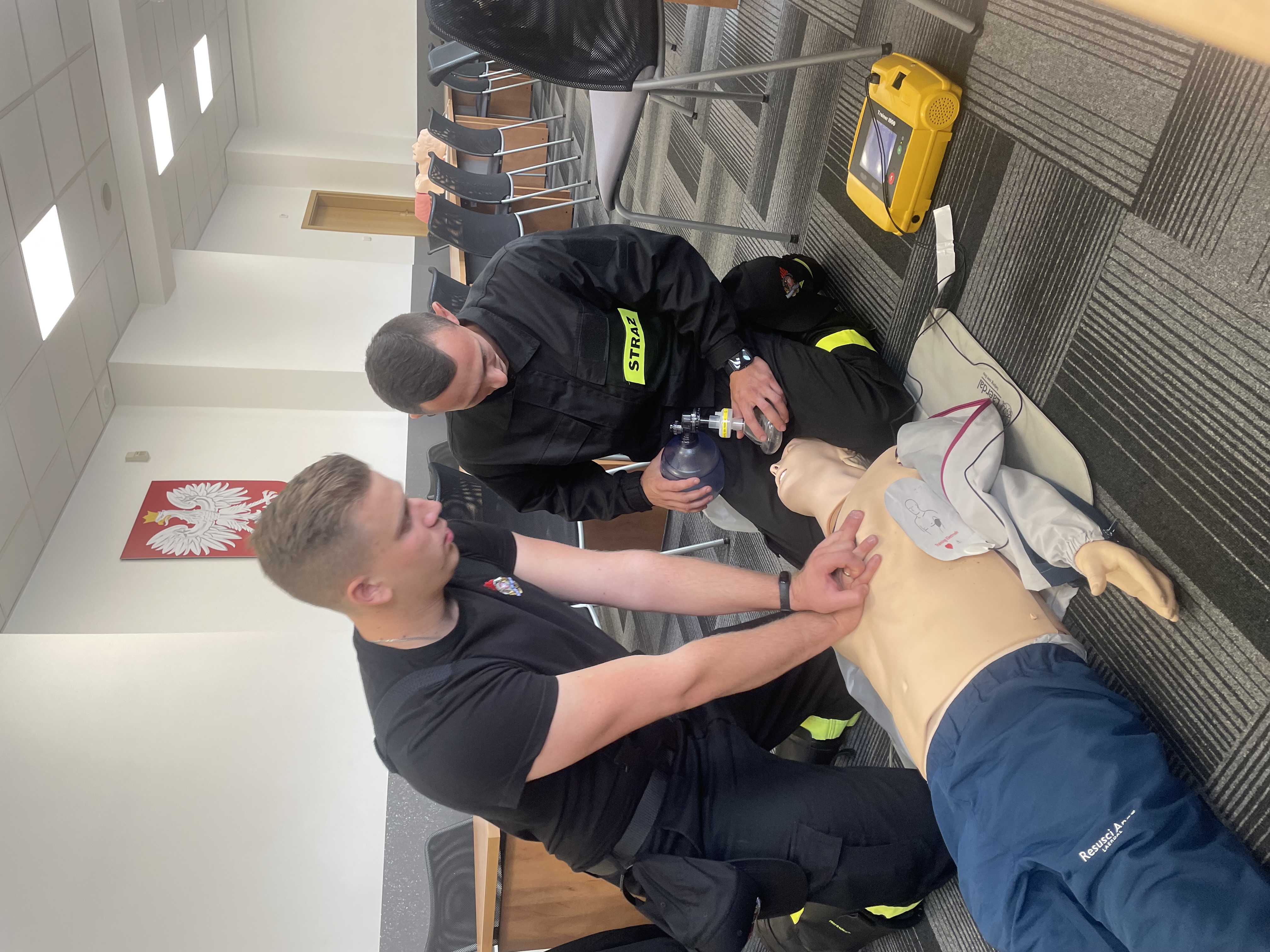 Ponadto, po egzaminie praktycznym z kwalifikowanej pierwszej pomocy 22 strażaków systemu zmianowego oraz dowództwa JRG odbyło ćwiczenie w komorze dymowej.
