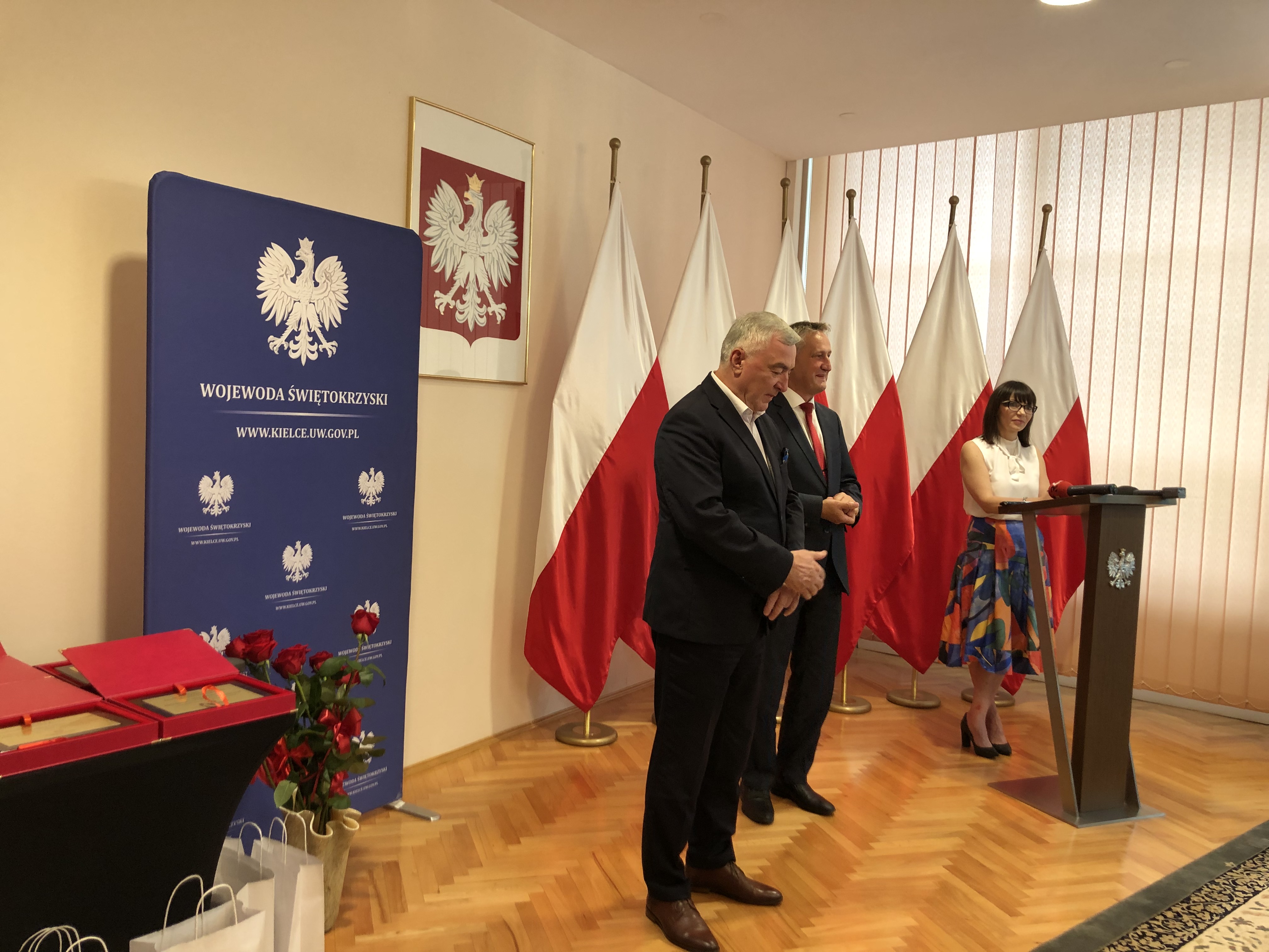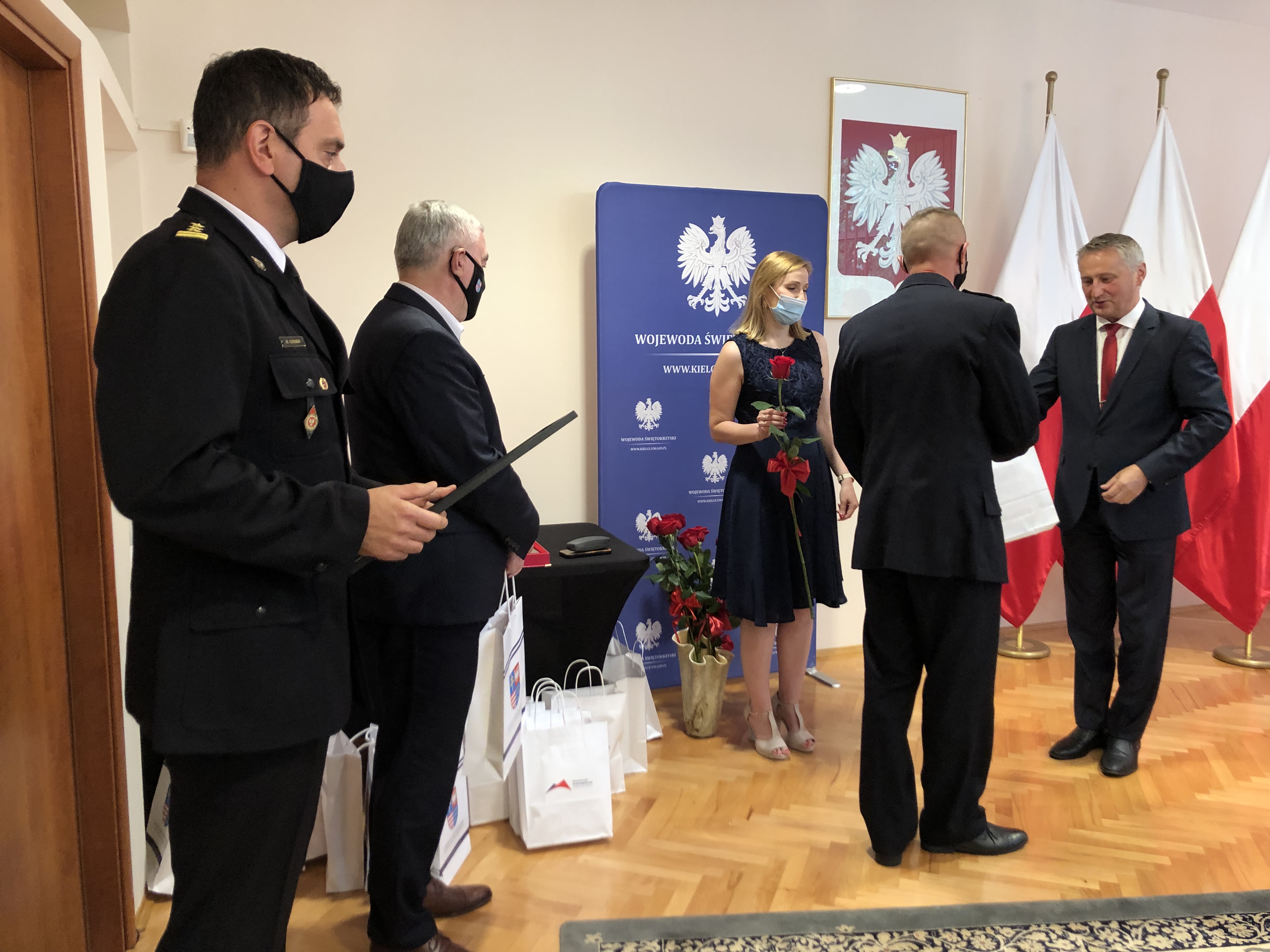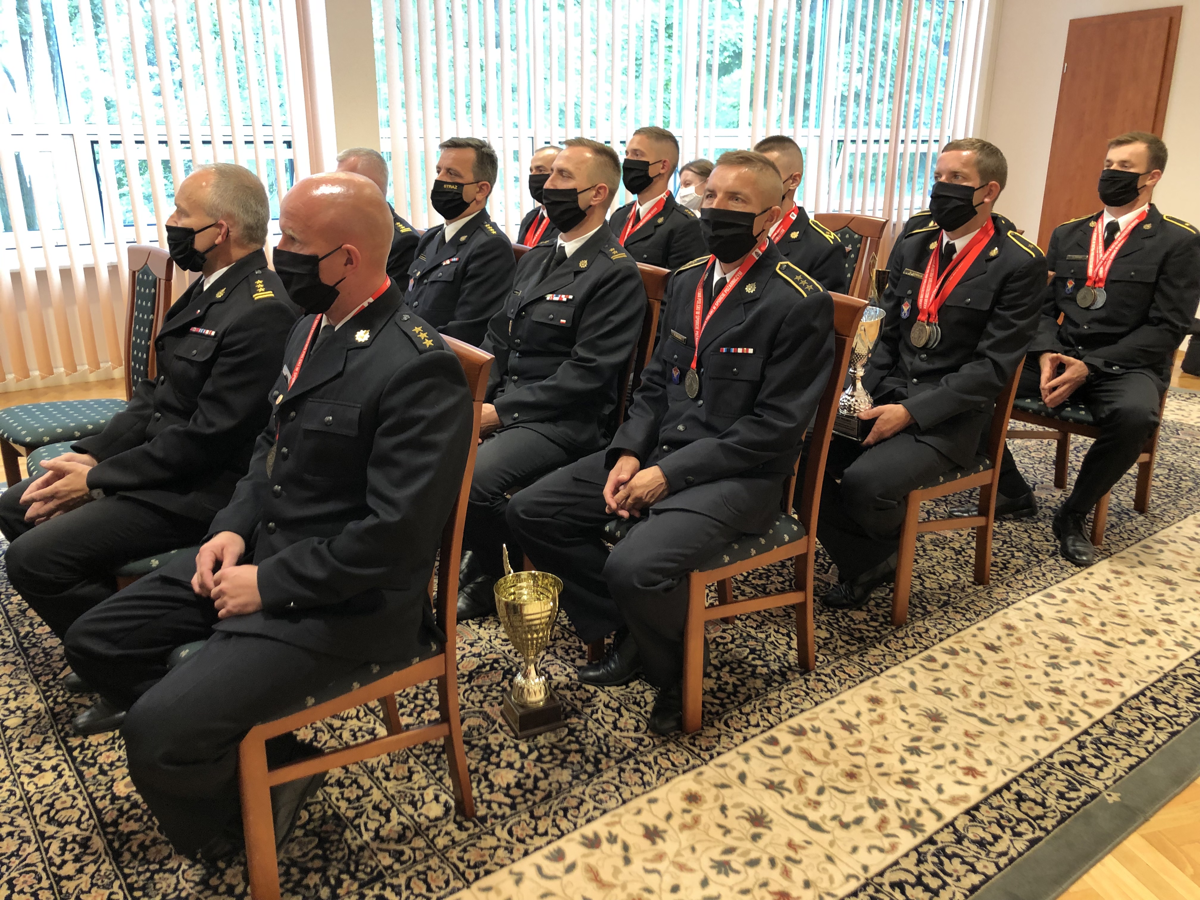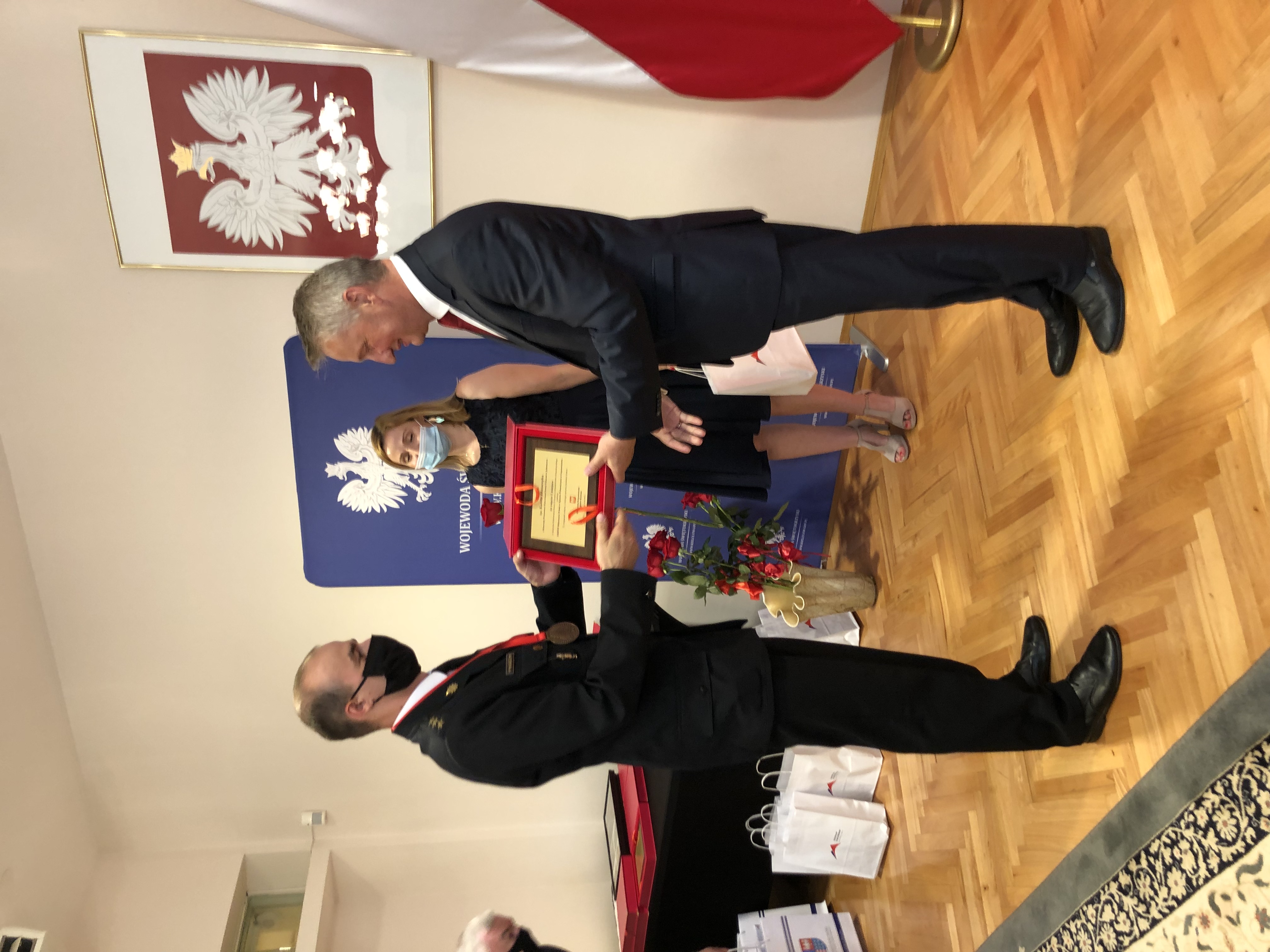 16.07.2021 w Świętokrzyskim Urzędzie Wojewódzkim w Kielcach odbyło się spotkanie władz województwa świętokrzyskiego ze złotymi medalistami XXXVII Mistrzostw Polski w Sporcie Pożarniczym. Wojewoda Świętokrzyski Zbigniew Koniusz oraz Marszałek Województwa Świętokrzyskiego Andrzej Bętkowski pogratulowali sportowcom historycznego sukcesu i podziękowali za reprezentowanie woj. świętokrzyskiego. Na pamiątkę wydarzenia sportowcy otrzymali okolicznościowe upominki.