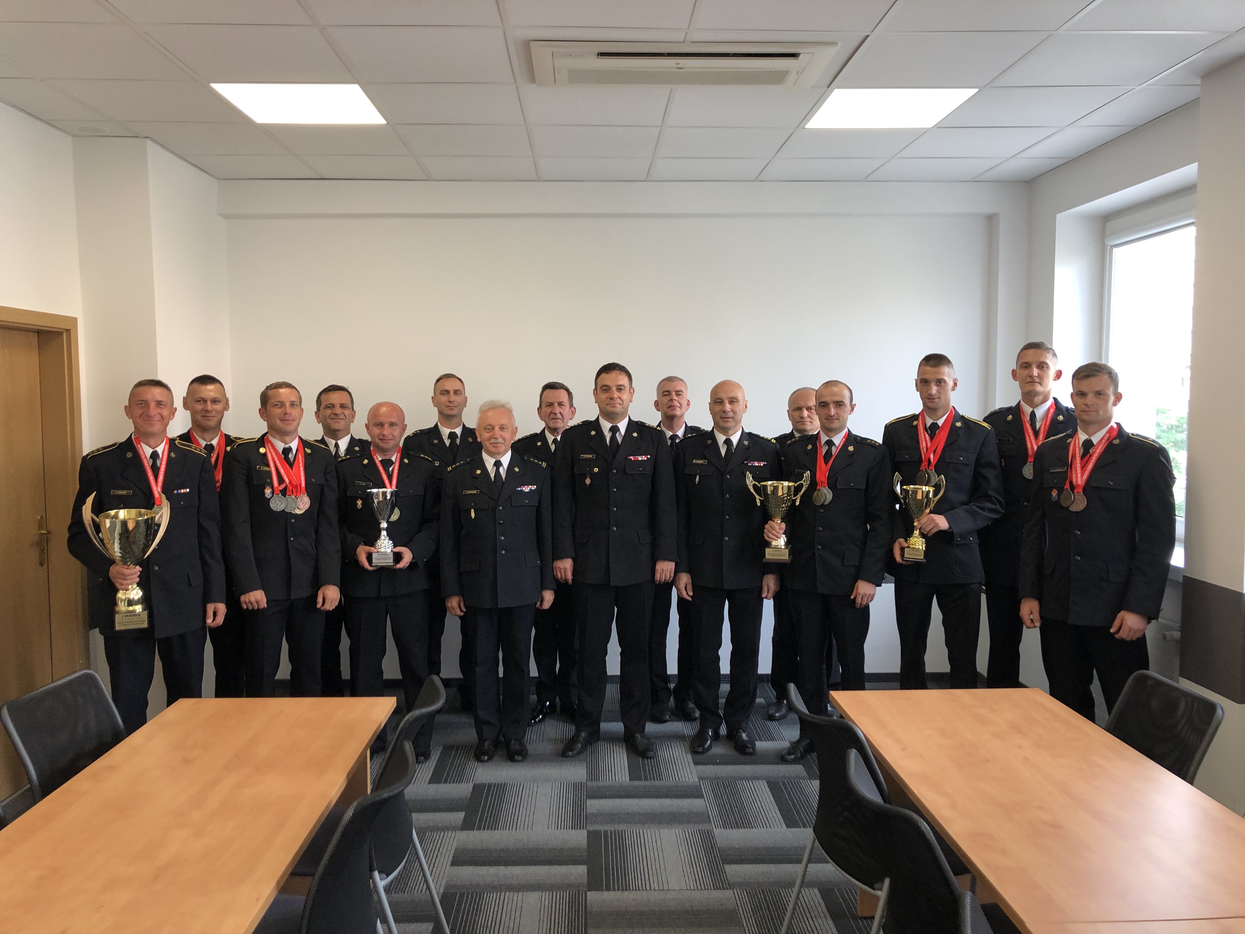 Świętokrzyscy złoci medaliści ogólnopolskich mistrzostw to: kpt. Wojciech Kunys, asp. Dawid Kowalik i mł. asp. Łukasz Orczyk – reprezentanci Komendy Powiatowej PSP w Skarżysku-Kamiennej, asp. Łukasz Bielecki i mł. asp. Wiktor Woś z Komendy Miejskiej PSP w Kielcach, kpt. Karol Błaszczyk z Komendy Powiatowej PSP w Jędrzejowie, asp. Robert Zdonek z Komendy Powiatowej PSP w Ostrowcu Świętokrzyskim oraz mł. ogn. Dariusz Struski z Komendy Powiatowej PSP we Włoszczowie. Kierownikiem zwycięskiej drużyny był kpt. Przemysław Gad, a zawodników trenował asp. sztab. Paweł Sieczka. Wojewoda Zbigniew Koniusz podziękował także świętokrzyskiemu komendantowi wojewódzkiemu PSP st. bryg. Krzysztofowi Cioskowi oraz komendantom jednostek, w których na co dzień służą złoci medaliści, za wsparcie w przygotowaniu do mistrzostw.