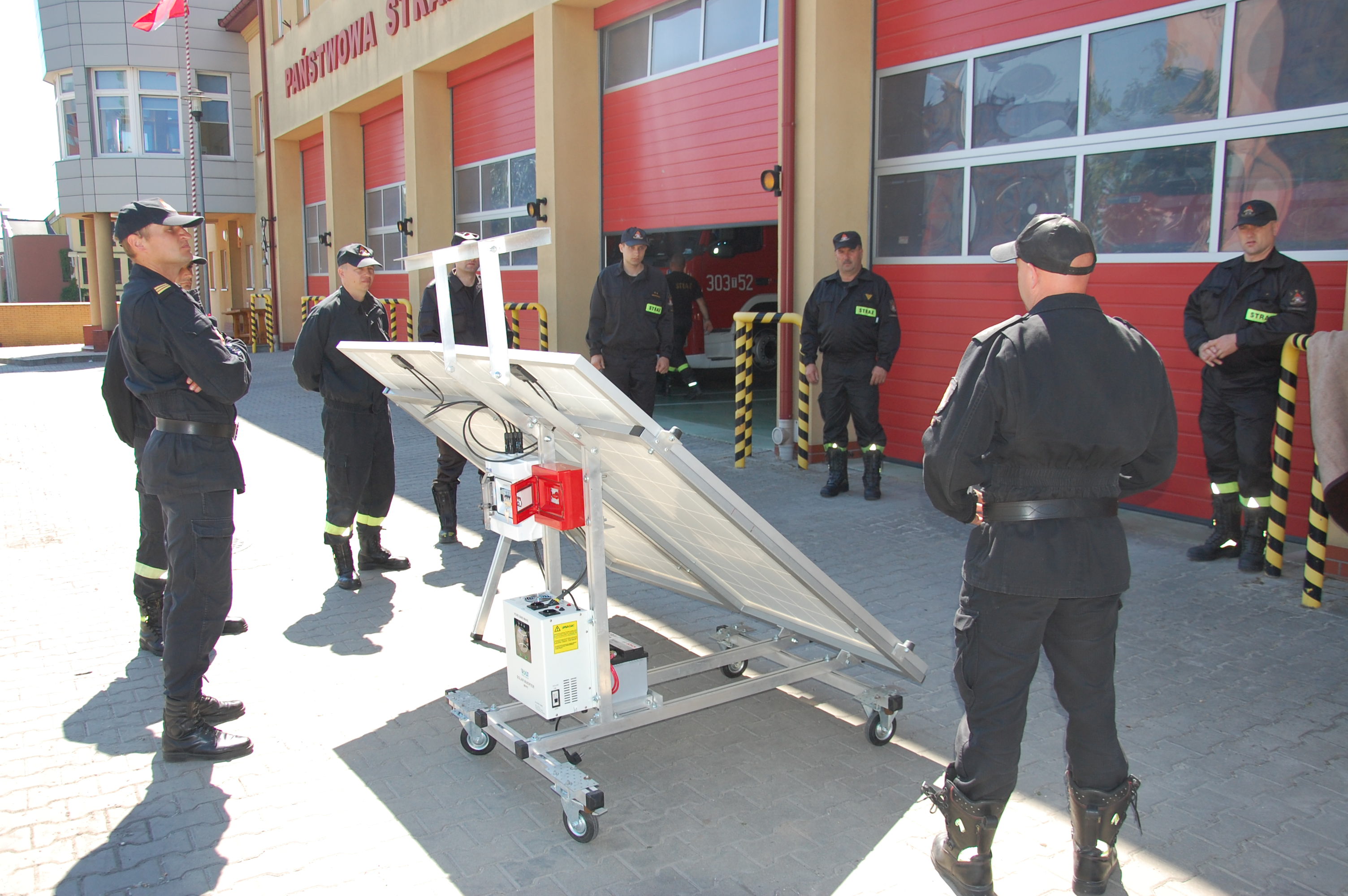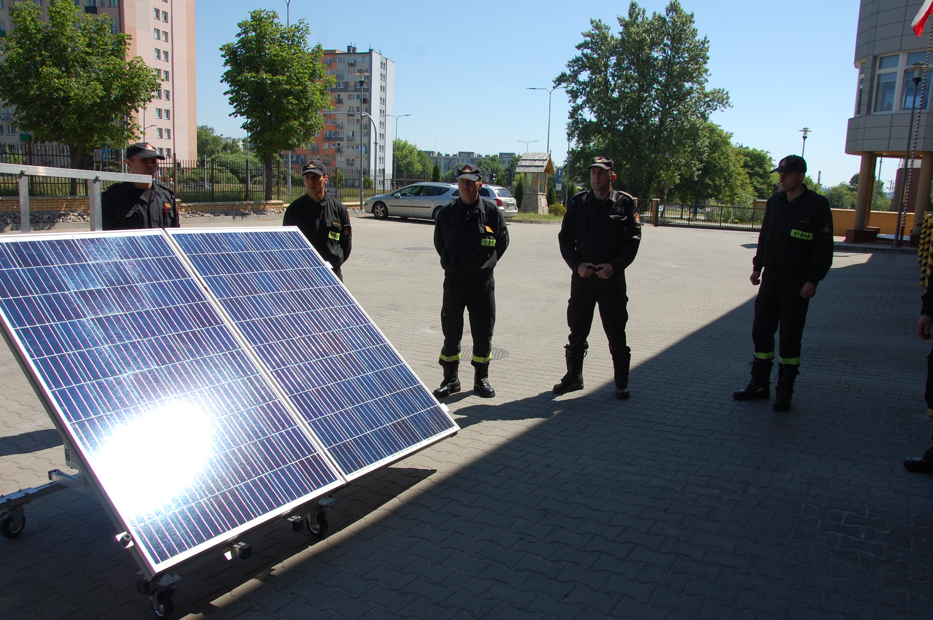 Szkolenie pierwszego blok tematycznego mają na celu zaznajomienie się z budową instalacji fotowoltaicznych jako źródła prądu, środkami ochron indywidualnej stosowanymi w zabezpieczeniu strażaka podczas działań z urządzeniami fotowoltaicznymi przy wykorzystaniu trenażera.