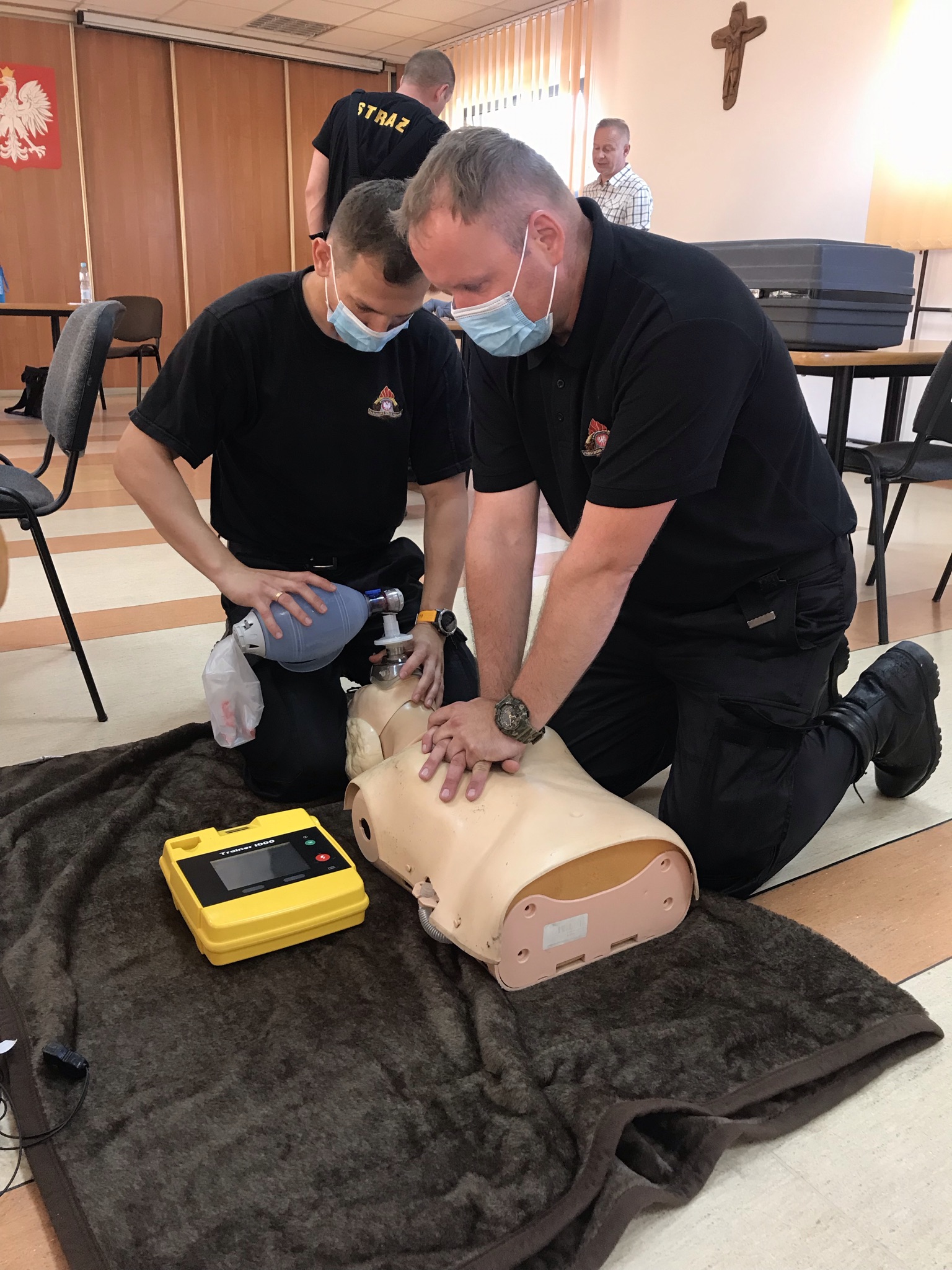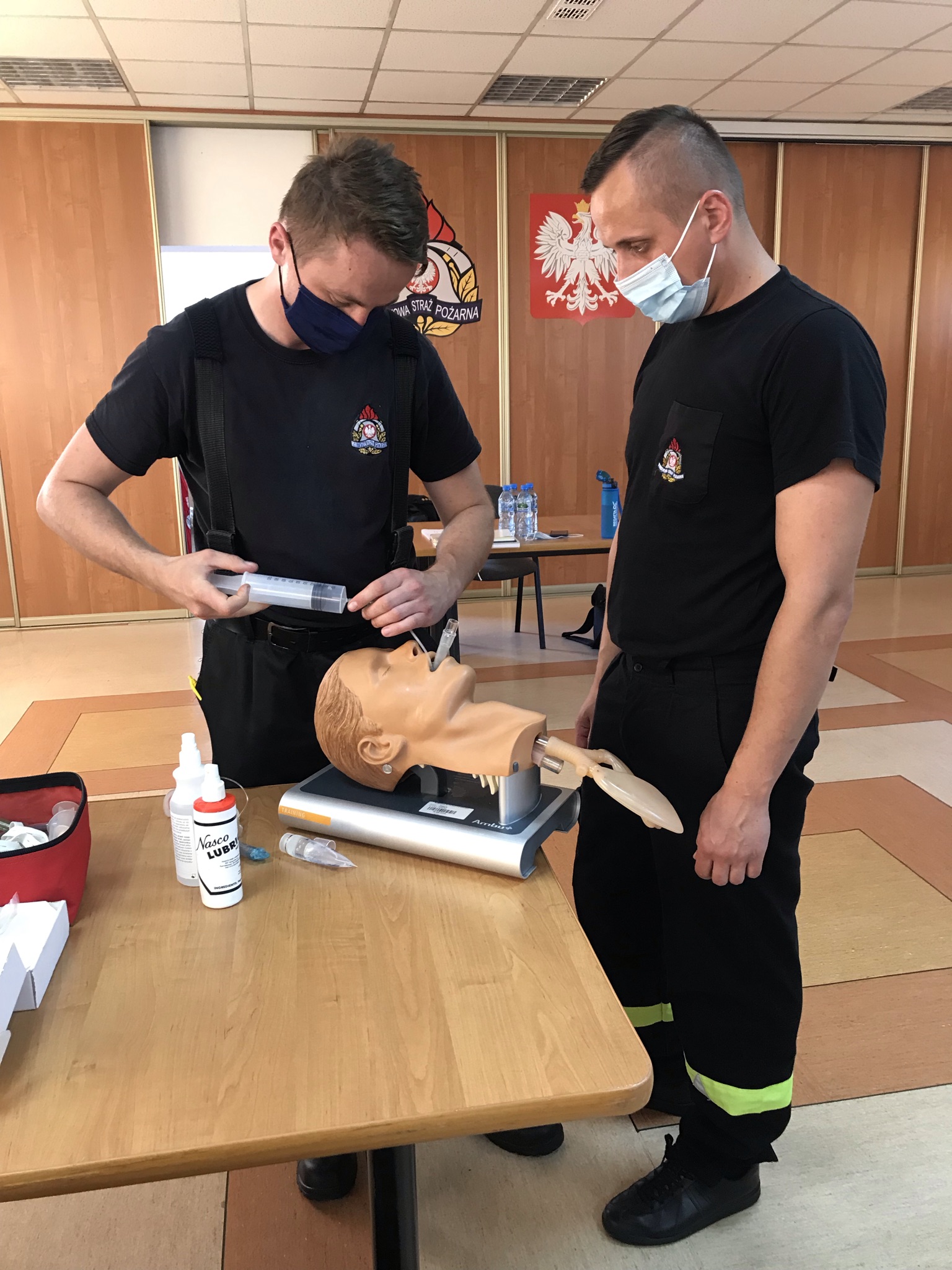 Ponadto, po egzaminie praktycznym z kwalifikowanej pierwszej pomocy 26 strażaków systemu zmianowego oraz dowództwa JRG odbyło ćwiczenie w komorze dymowej.