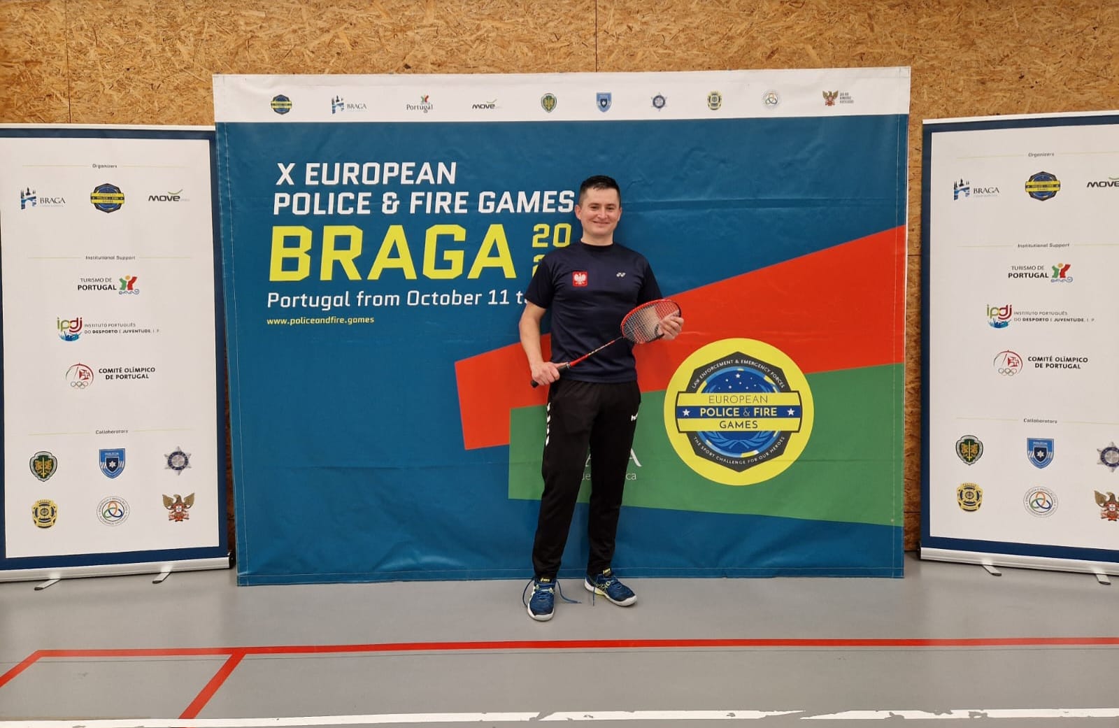Jednym z reprezentantów strażaków z Polski był strażak z Komendy Miejskiej Państwowej Straży Pożarnej w Kielcach mł. kpt. Michał Stebnicki, który z powodzeniem wystartował w badmintonie. W grze pojedynczej Michał stanął na podium wywalczając brązowy medal. Zagrał także w grze podwójnej w parze z reprezentantem hiszpańskiej Policji Samuelem Varelą. Polsko-hiszpańska para wywalczyła srebrne medale. Dwa wywalczone medale podczas imprezy tej rangi to olbrzymi sukces, którego serdecznie gratulujemy Panu Kapitanowi, życząc kolejnych laurów w przyszłości.