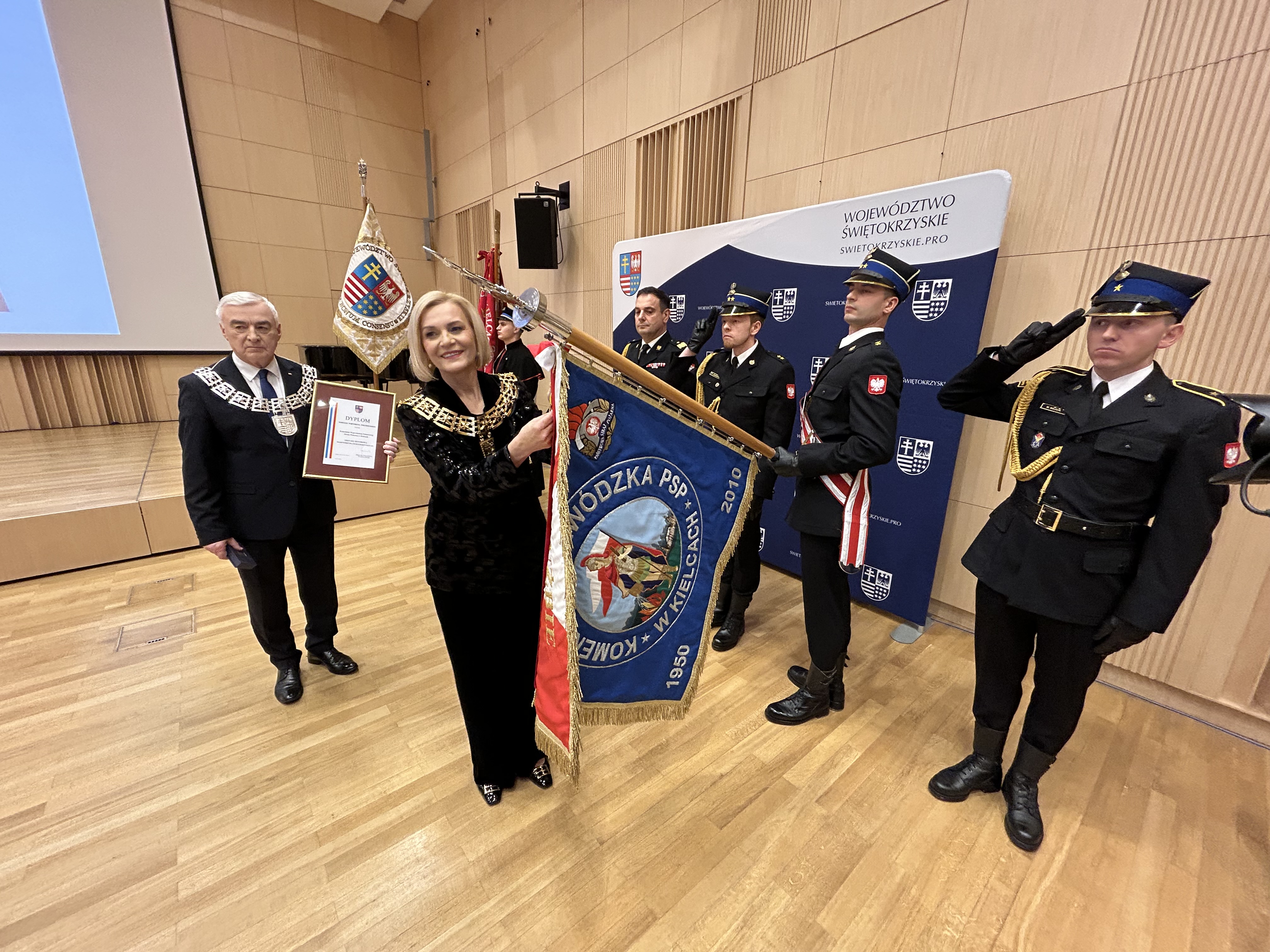 Komenda Wojewódzka Państwowej Straży Pożarnej w Kielcach została wyróżniona Odznaką Honorową Województwa Świętokrzyskiego podczas uroczystej X Sesji Sejmiku Województwa Świętokrzyskiego w Filharmonii Świętokrzyskiej.