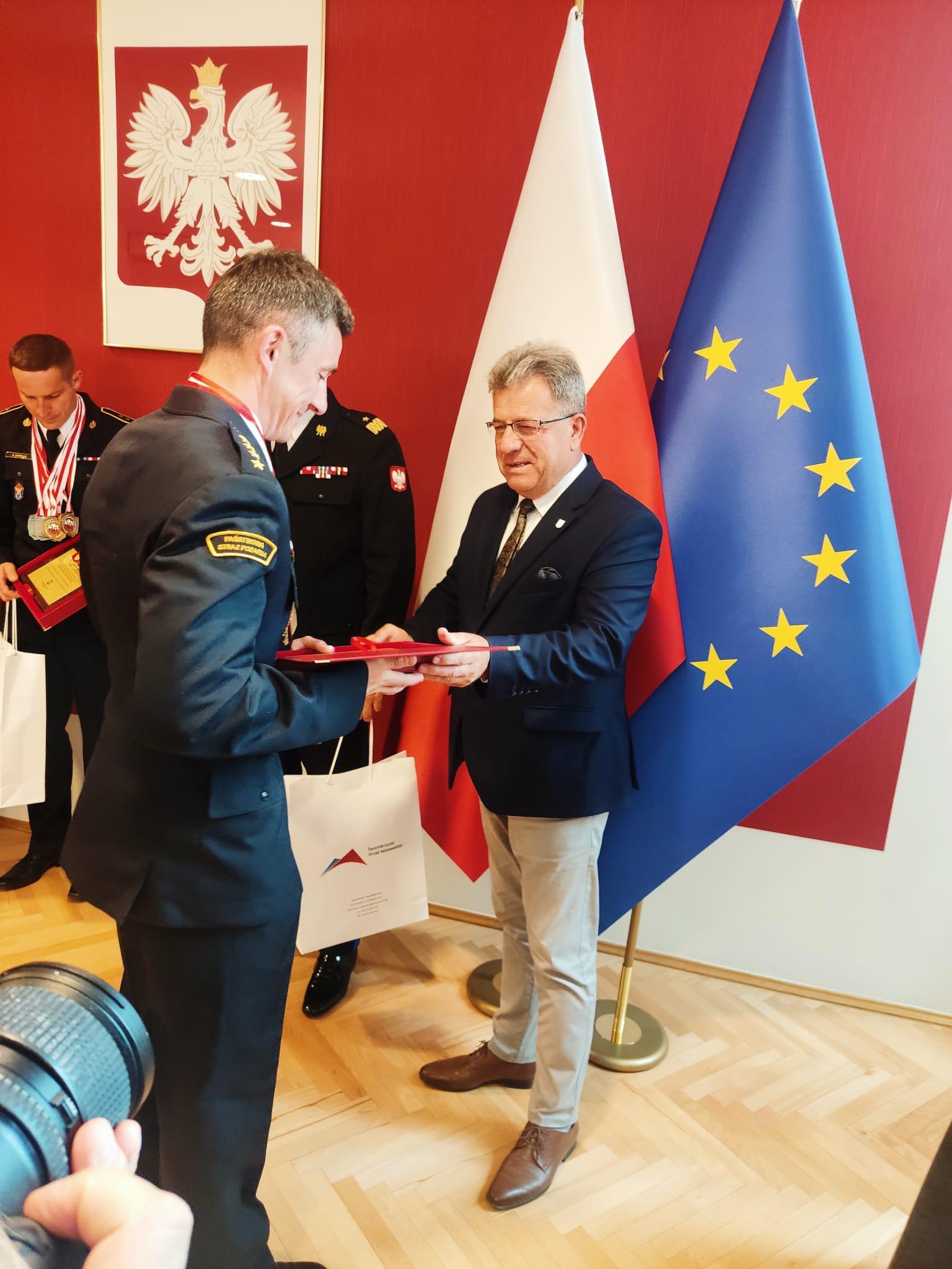 Mistrzowie Polski w sporcie pożarniczym z wizytą u Wojewody Świętokrzyskiego