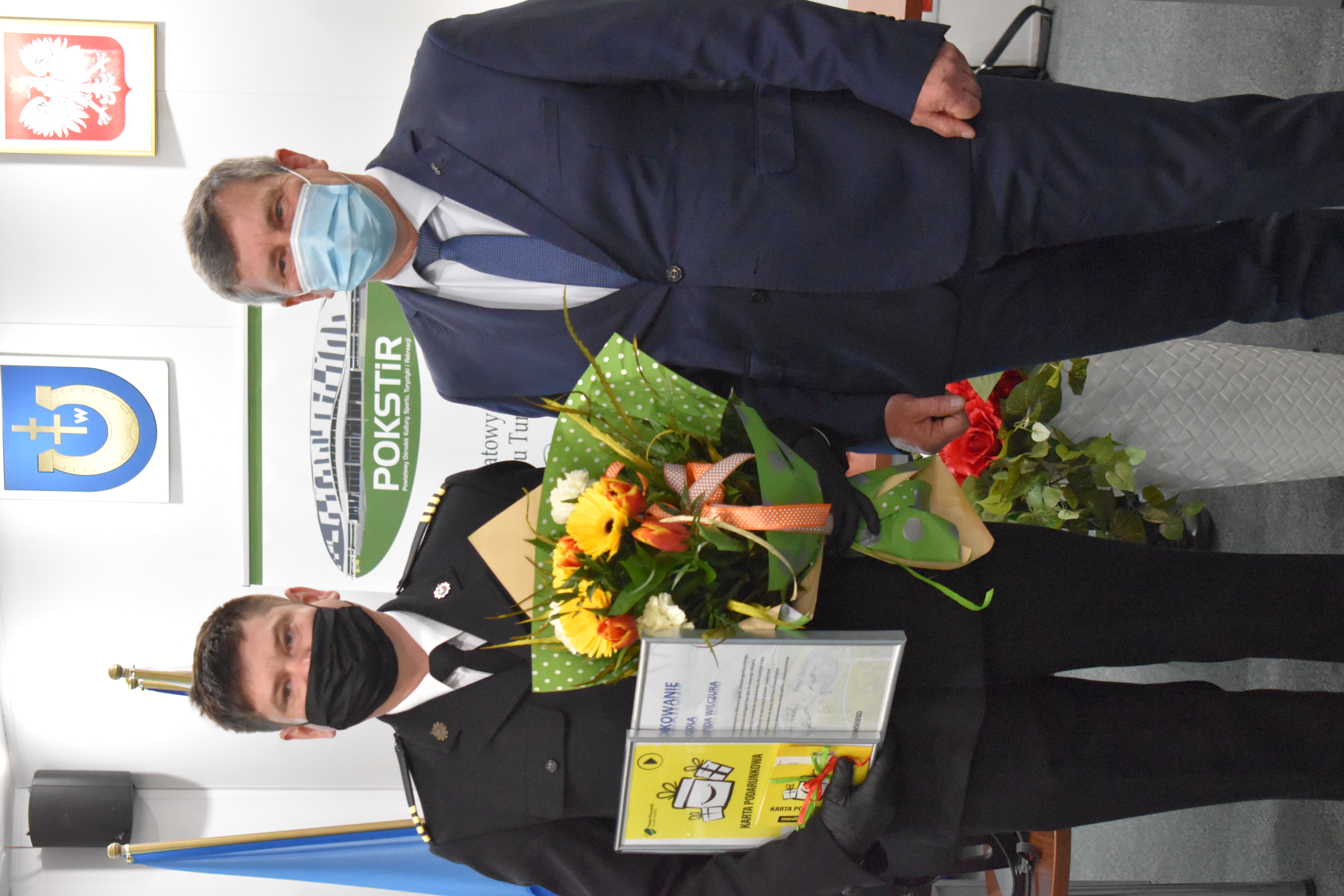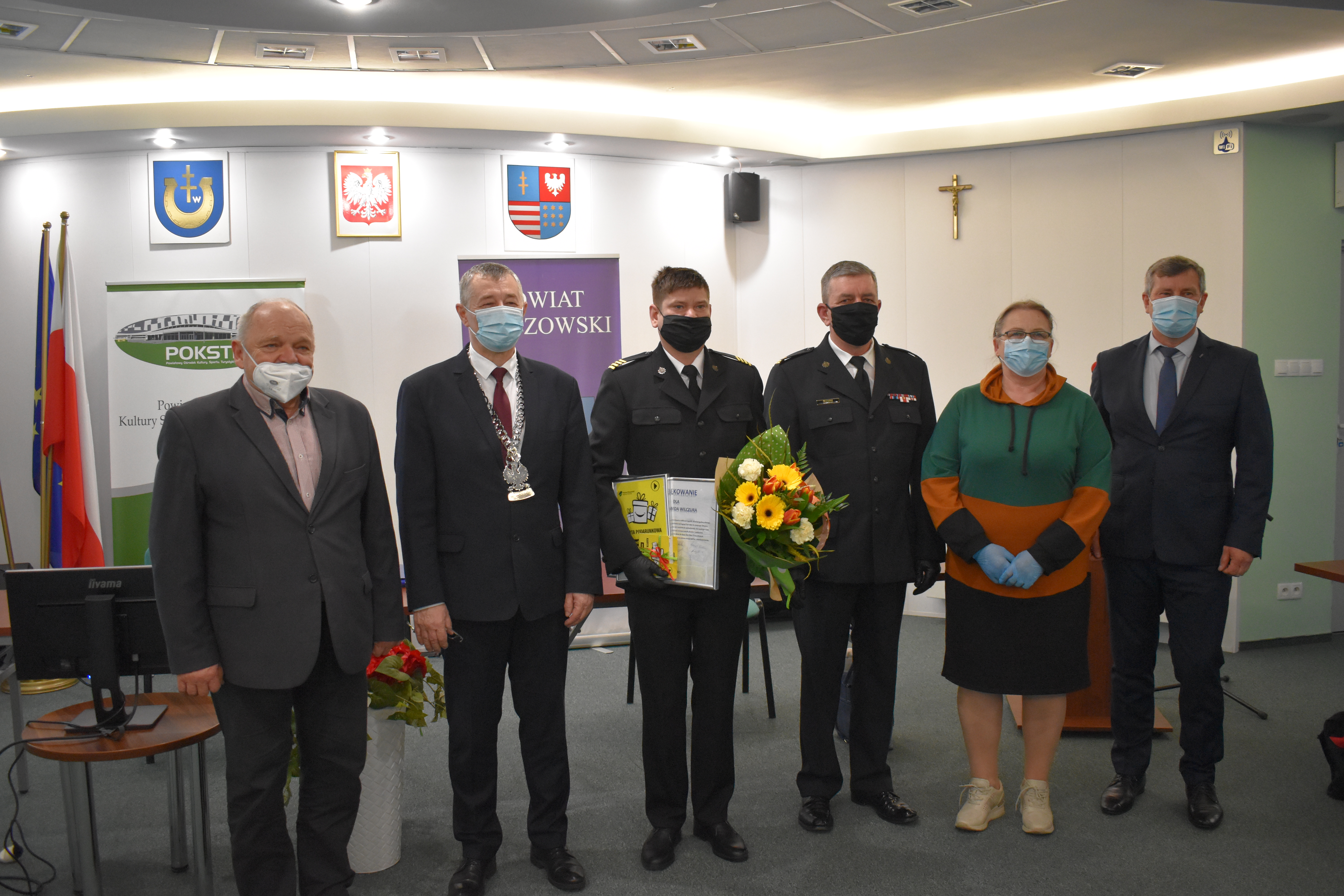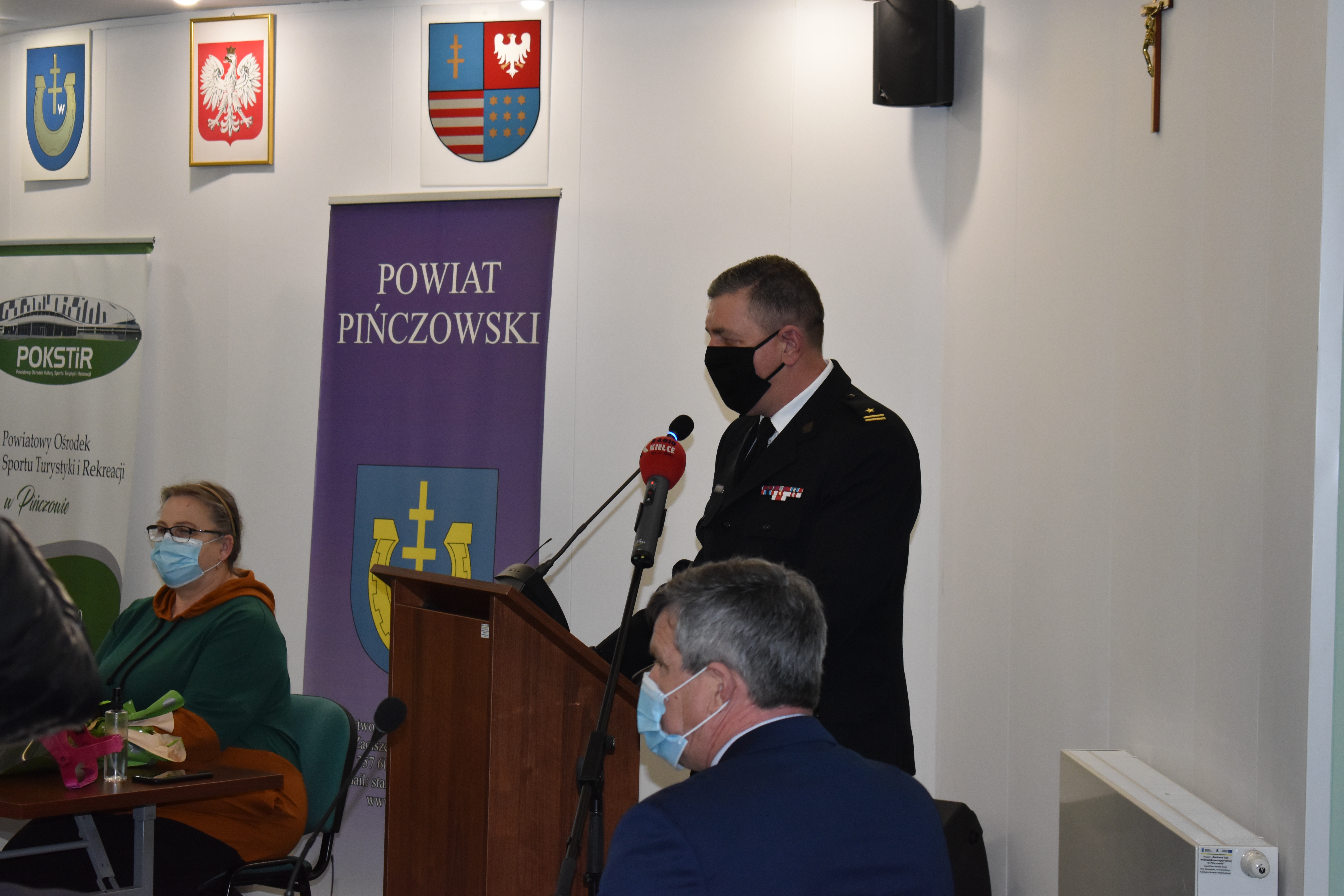 Gospodarz powiatu pińczowskiego skierował słowa uznania do wyróżnionego, jak również podziękował za profesjonalizm podkreślając przy tym także wypełnienie roty strażackiego ślubowania.