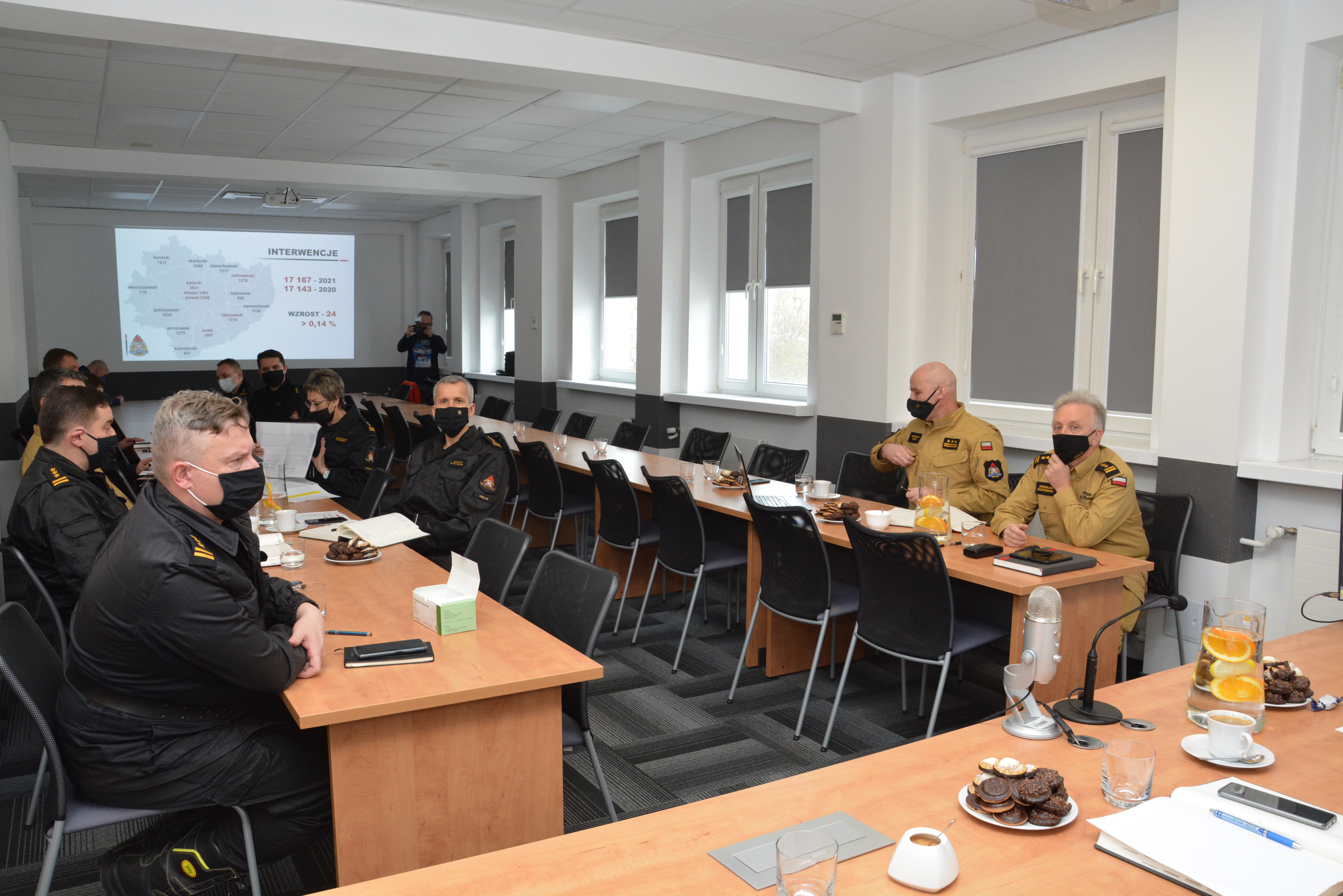 Kolejnym elementem narady było podsumowanie przez komendantów powiatowych i miejskiego PSP działalności PSP w 2021 roku w nadzorowanych komendach.