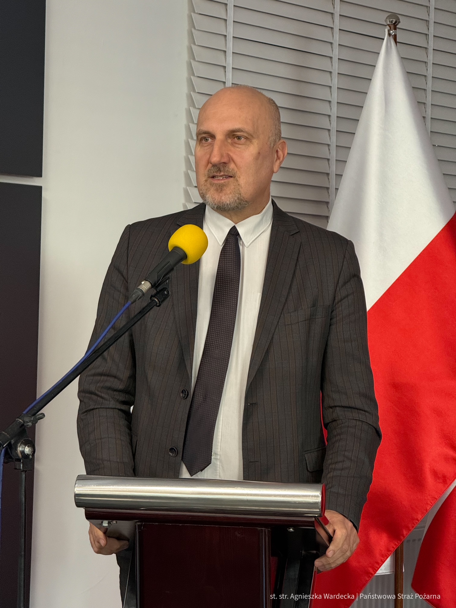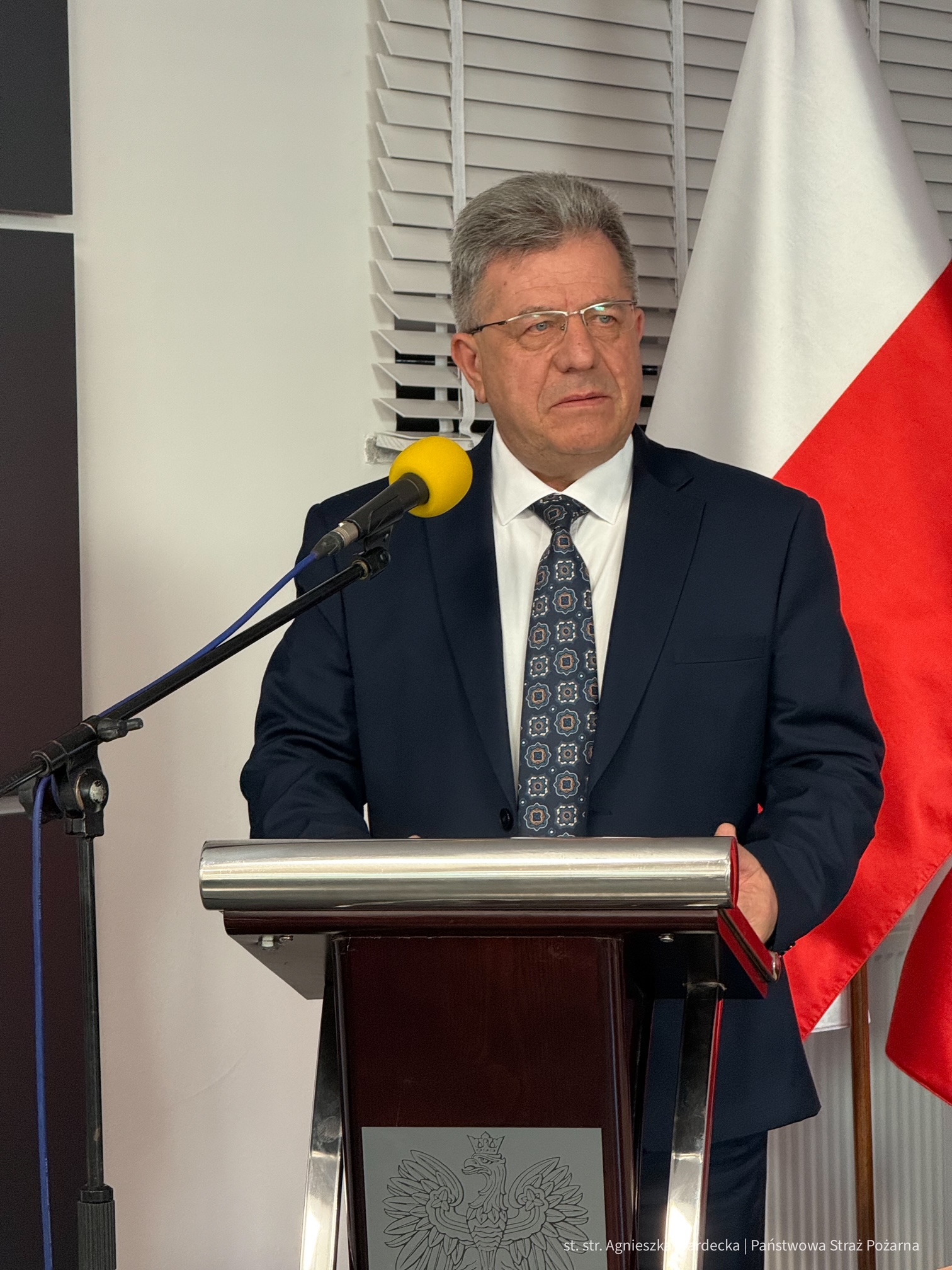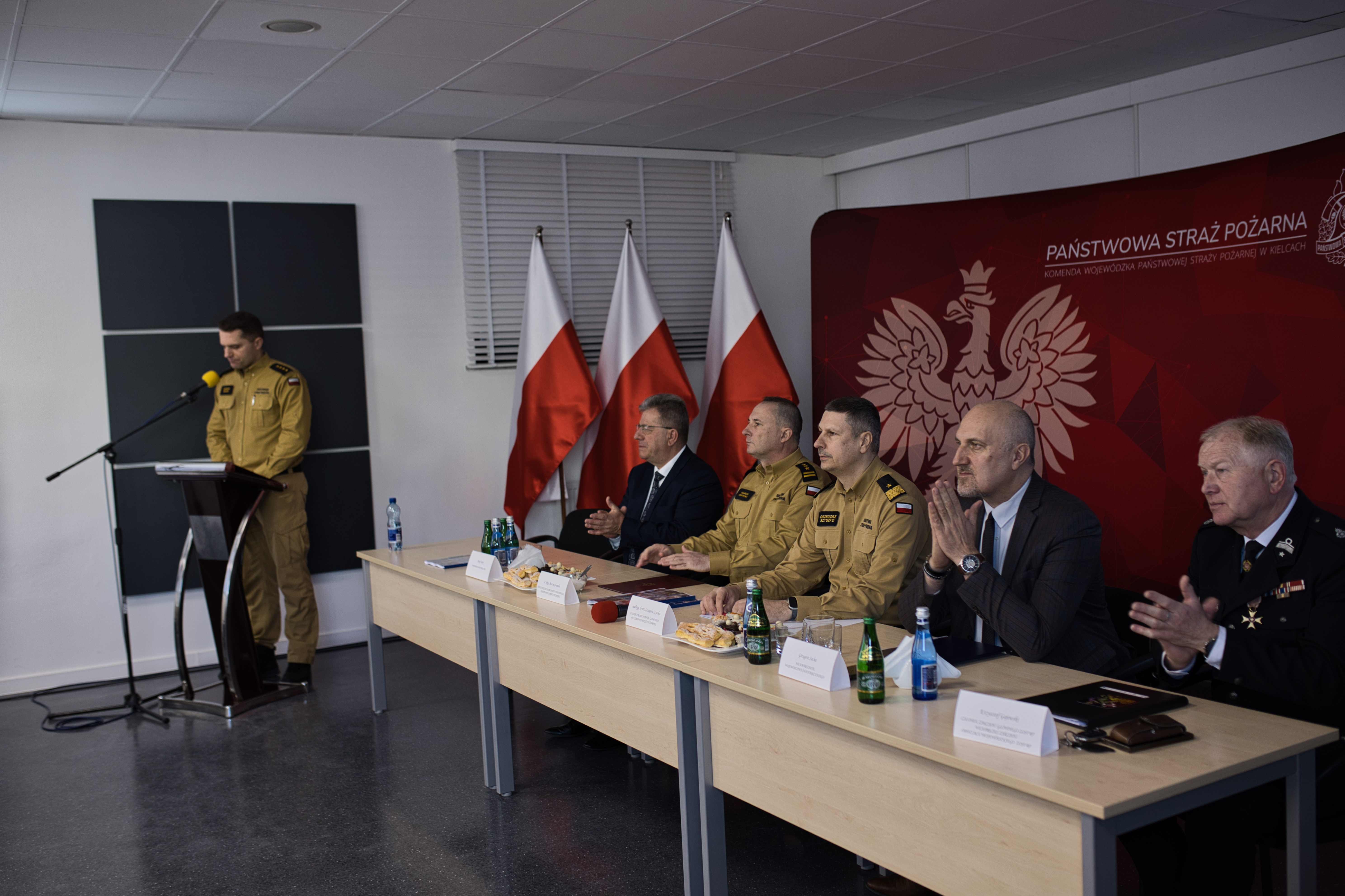 Druh v-ce Prezes Zarządu Oddziału Wojewódzkiego Związku OSP RP w Kielcach podziękował za współpracę PSP z jednostkami Ochotniczych Straży Pożarnych. Podkreślił rolę środków z ustawy o ochronie ludności i obronie cywilnej dla poprawy bezpieczeństwa mieszkańców regionu.
