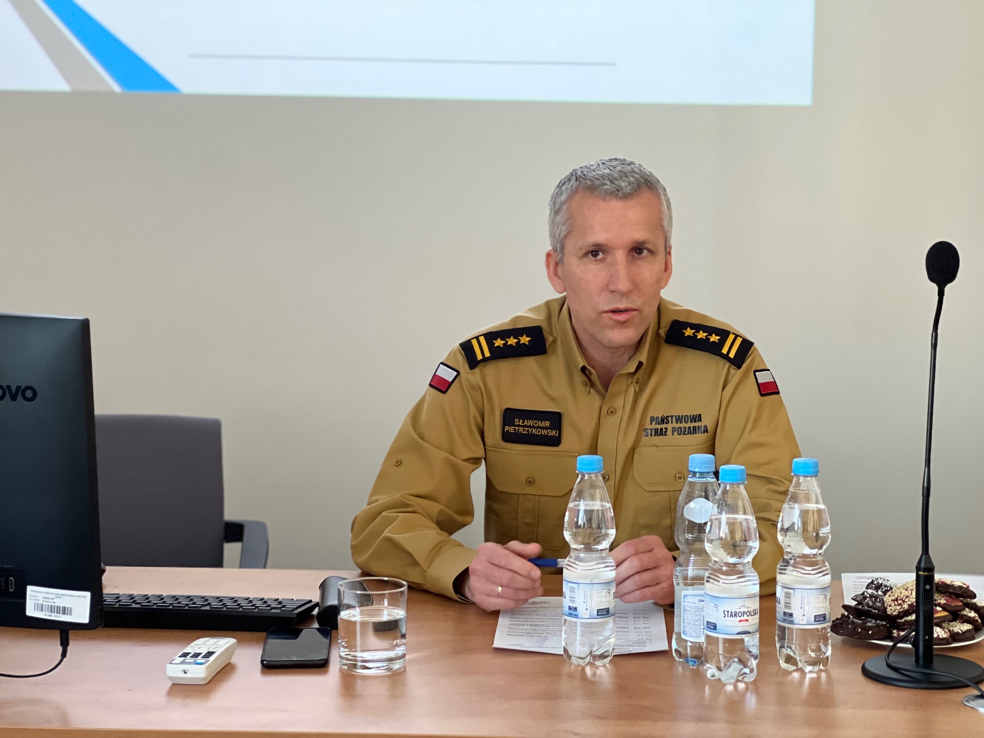Naczelnik Wydziału Przeciwdziałania Zagrożeniom st. bryg. Sławomir Pietrzykowski omówił zmiany w przepisach prawa stosowanych w działalności kontrolno-rozpoznawczej oraz występujące problemy w działalności kontrolno-rozpoznawczej.