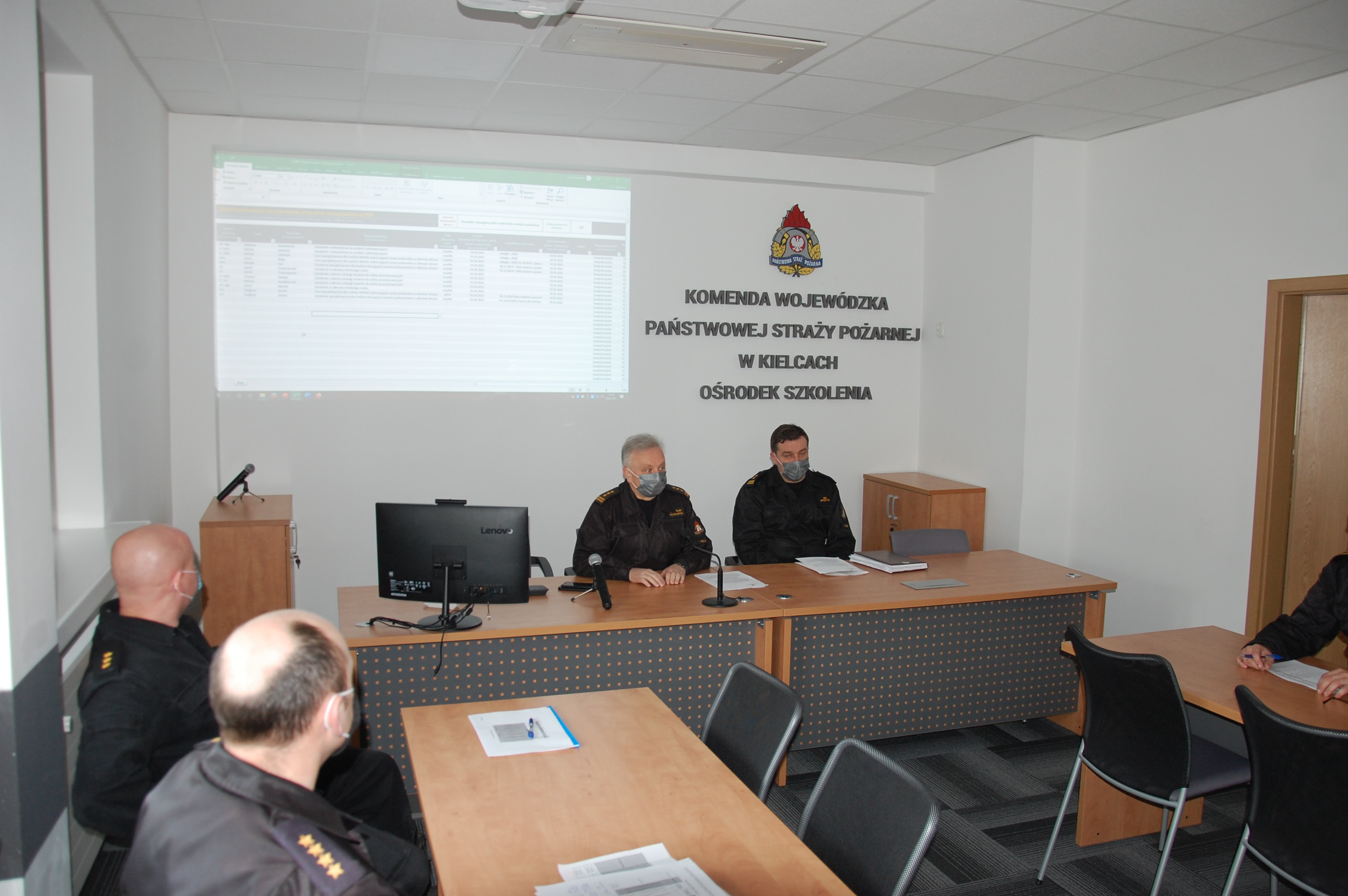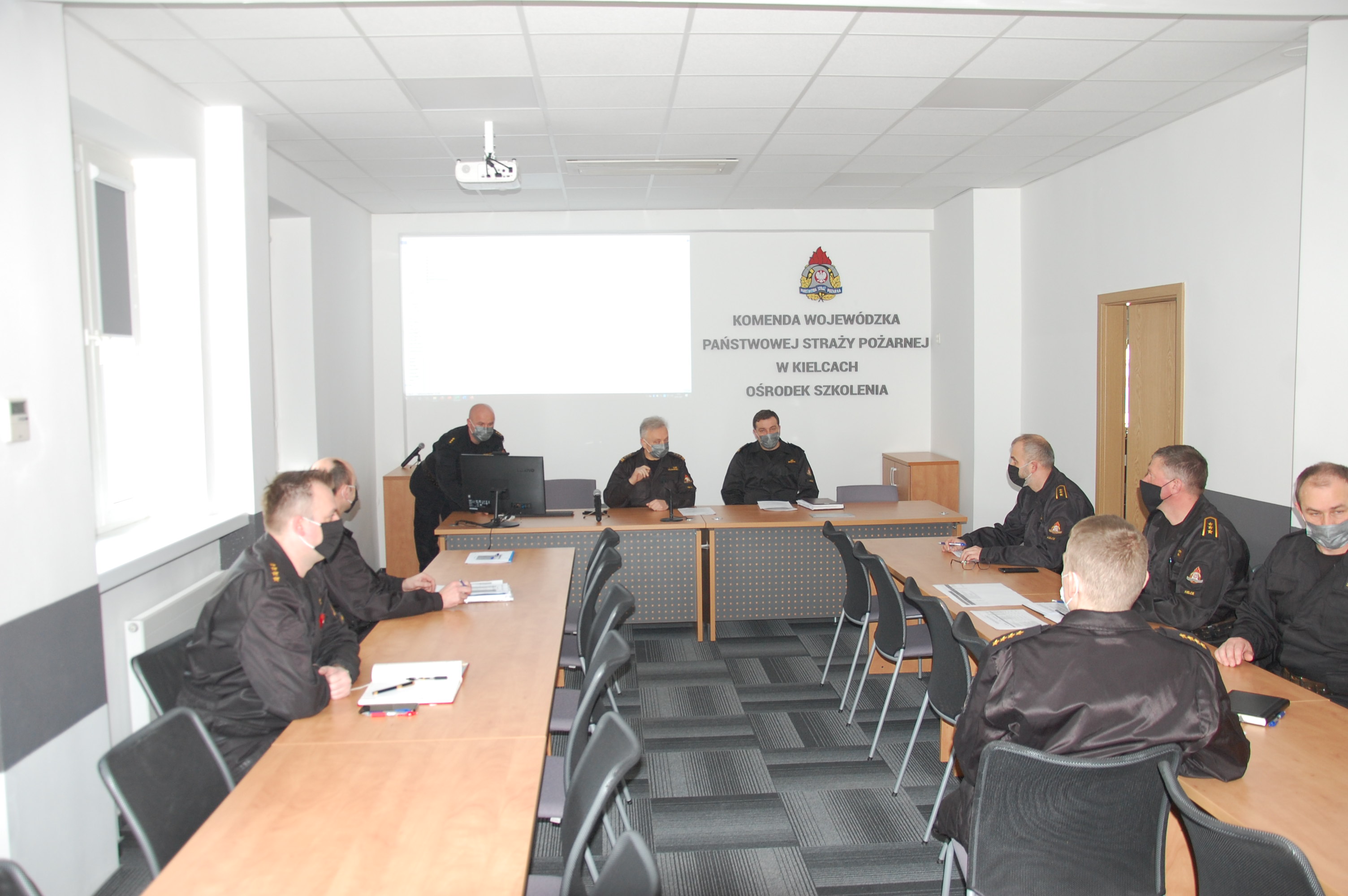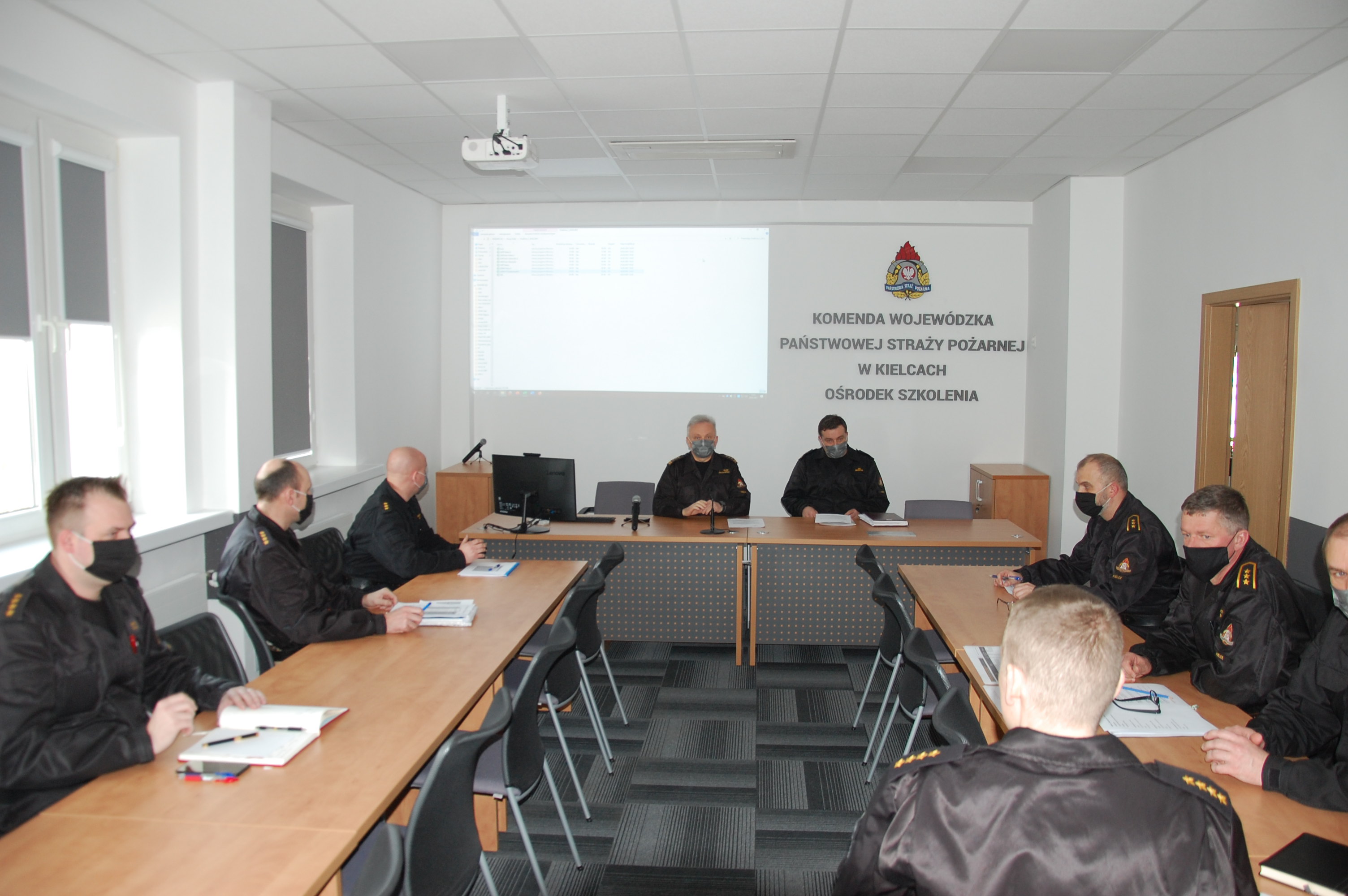 W dniu 24 lutego 2021 roku na terenie Komendy Wojewódzkiej PSP w Kielcach odbyła się narada szkoleniowa zorganizowana przez Ośrodek Szkolenia KW PSP w Kielcach dotycząca organizacji szkoleń specjalistycznych z zakresu: ratownictwo wodne, ratownictwo techniczne, ratownictwo wysokościowe, ratownictwo chemiczno- ekologiczne oraz działań poszukiwawczo- ratowniczych. Naradzie przewodniczył Zastępca Świętokrzyskiego Komendanta Wojewódzkiego PSP st. bryg. Jarosław Piotrowski, uczestnikami byli koordynatorzy poszczególnych grup specjalistycznych woj. świętokrzyskiego oraz kadra Ośrodka Szkolenia KW PSP w Kielcach.