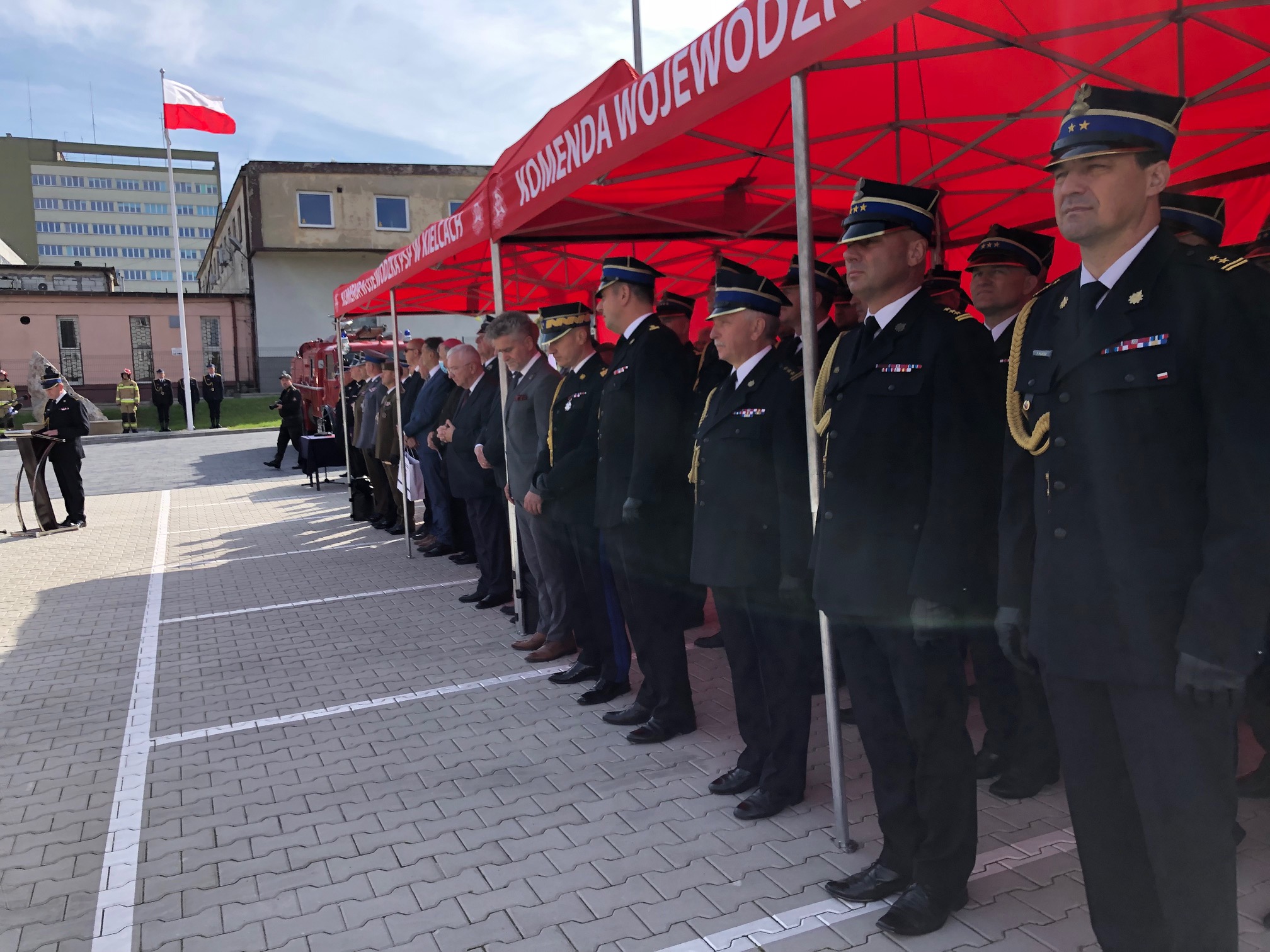 W uroczystości udział wzięli Komendant Główny PSP nadbryg. Andrzej Bartkowiak, Świętokrzyski Komendant Wojewódzki PSP st. bryg. Krzysztof Ciosek, Wojewoda Świętokrzyski Zbigniew Koniusz, parlamentarzyści ziemi kieleckiej, przedstawiciele władz samorządowych województwa świętokrzyskiego.