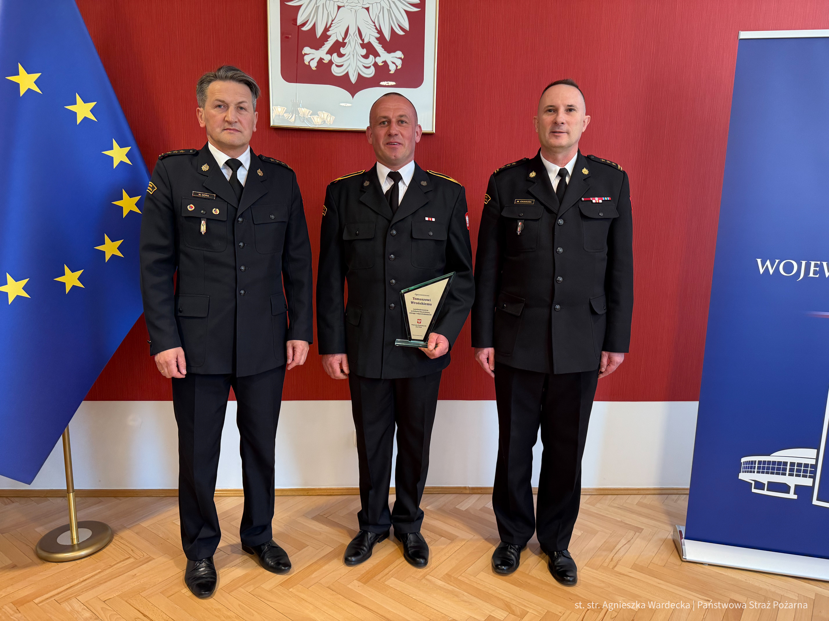 Podczas uroczystości uhonorowany został również funkcjonariusz z Komendy Miejskiej Państwowej Straży Pożarnej w Kielcach - ogn. Tomasz Wroński, pełniący służbę w Jednostce Ratowniczo-Gaśniczej nr 2. W czasie wolnym od służby, będąc świadkiem pożaru wykazał się wyjątkową odwagą. Wchodząc w ogień i zadymienie, prowadził działania gaśnicze, wykorzystując wodę podawaną w sposób improwizowany przez osoby postronne, co pozwoliło znacząco ograniczyć straty w budynku jednorodzinnym.