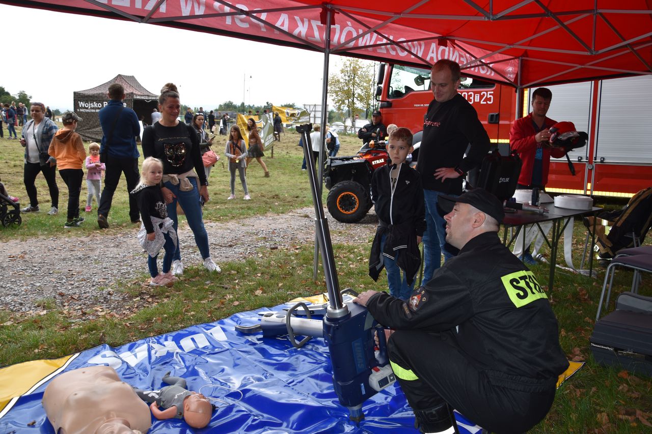 Zainteresowaniem szczególnie wśród najmłodszych cieszyły się: strażacki quad, kamera termowizyjna, sprzęt do uwalniania osób poszkodowanych z pojazdów, oraz ciężki wóz bojowy, którego walory techniczne prezentowane były podczas pikniku. Stanowisko wyposażone zostało w również w fantomy, na których strażacy uczyli zasad udzielania pierwszej pomocy.