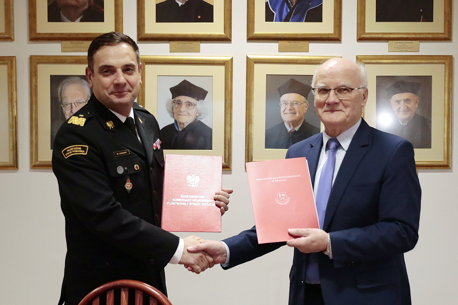 Sygnatariuszami porozumienia byli Jego Magnificencja Rektor UJK prof. dr hab. Stanisław Głuszek oraz Świętokrzyski Komendant Wojewódzki PSP nadbryg. Krzysztof Ciosek.