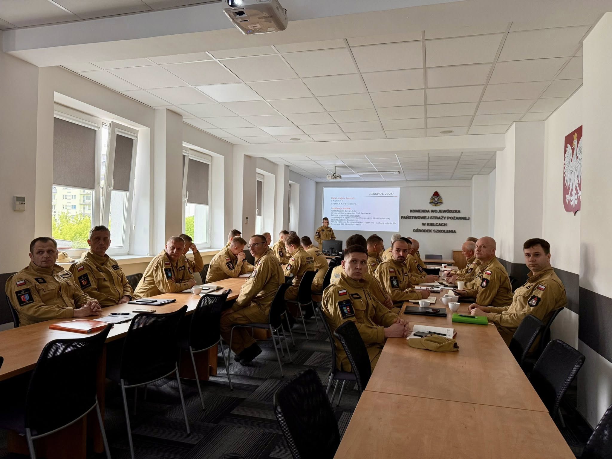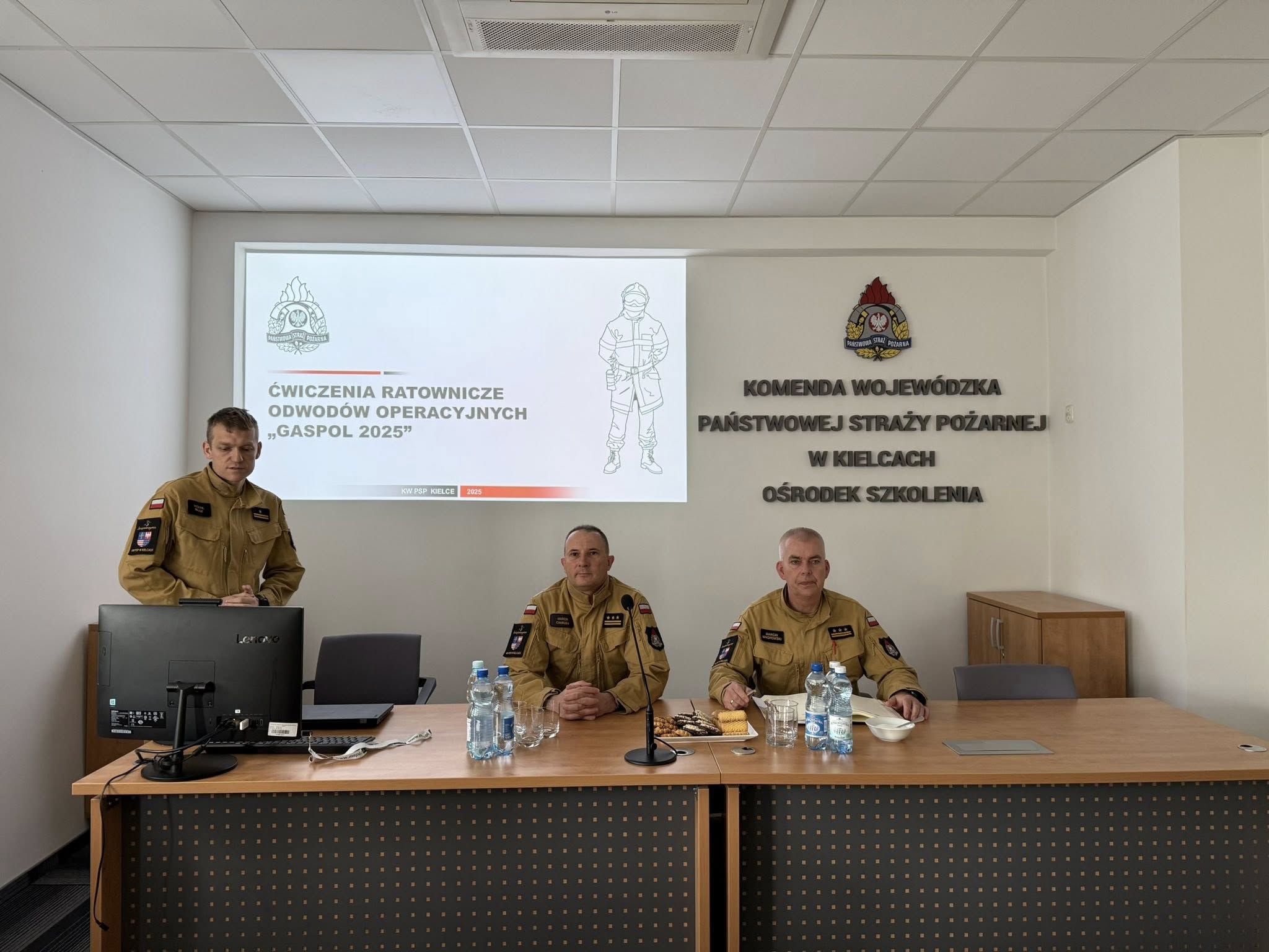 9 czerwca 2025 roku w siedzibie Komendy Wojewódzkiej Państwowej Straży Pożarnej w Kielcach odbyło się podsumowanie ćwiczeń wojewódzkich pk. Gaspol 2025. W wydarzeniu udział wzięło kierownictwo Komendy Wojewódzkiej PSP w Kielcach na czele ze Świętokrzyskim Komendantem Wojewódzkim PSP st. bryg. Marcinem Charubą. W gronie rozjemców, osób ćwiczących oraz organizatotrów ćwiczeń omówione zostały wnioski oraz podsumowano realizację zamierzonych celów.
