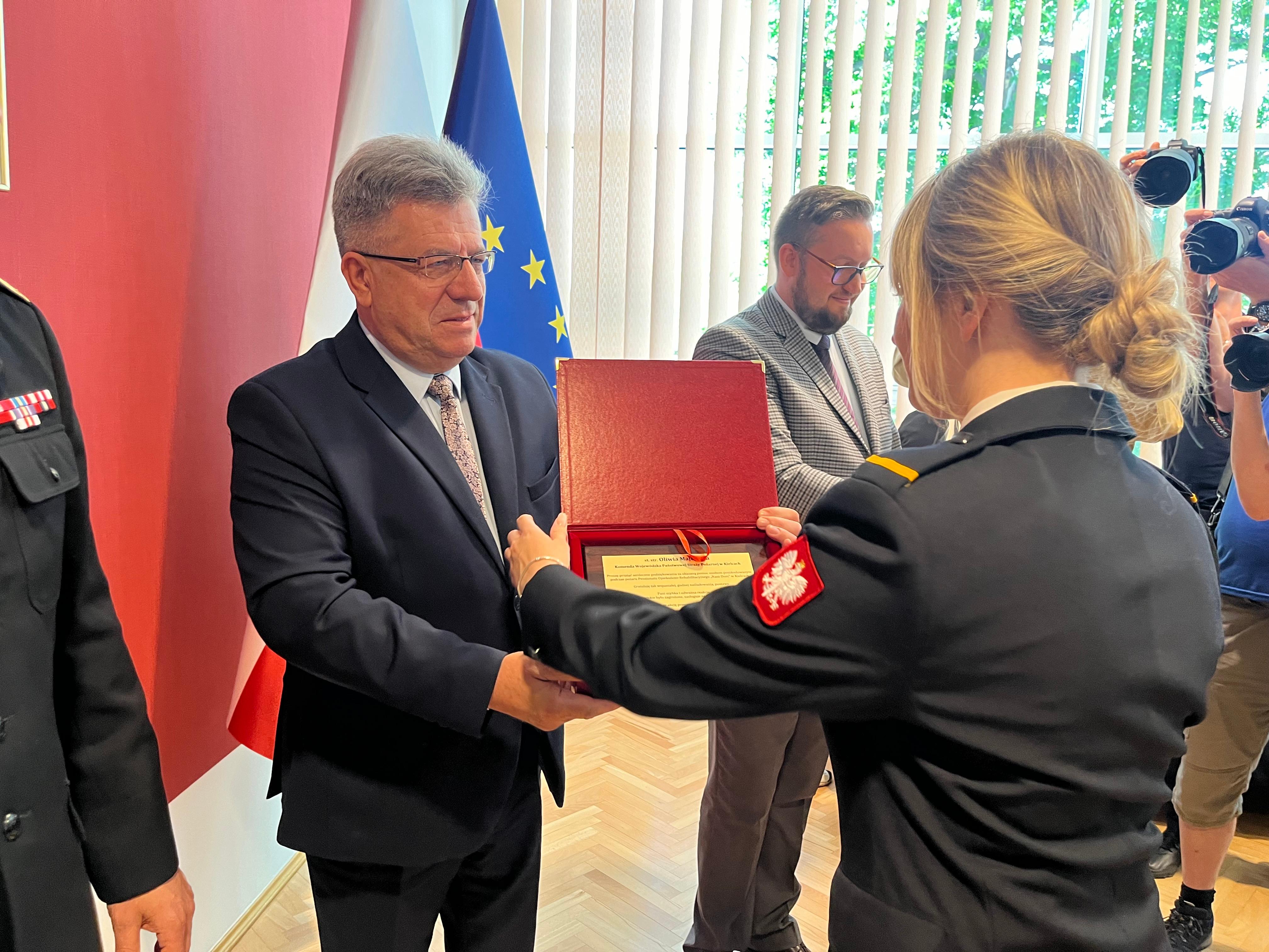 Podziękowania wojewody świętokrzyskiego za wzorową obywatelską postawę podczas pożaru w Kielcach przy ulicy Tobruckiej