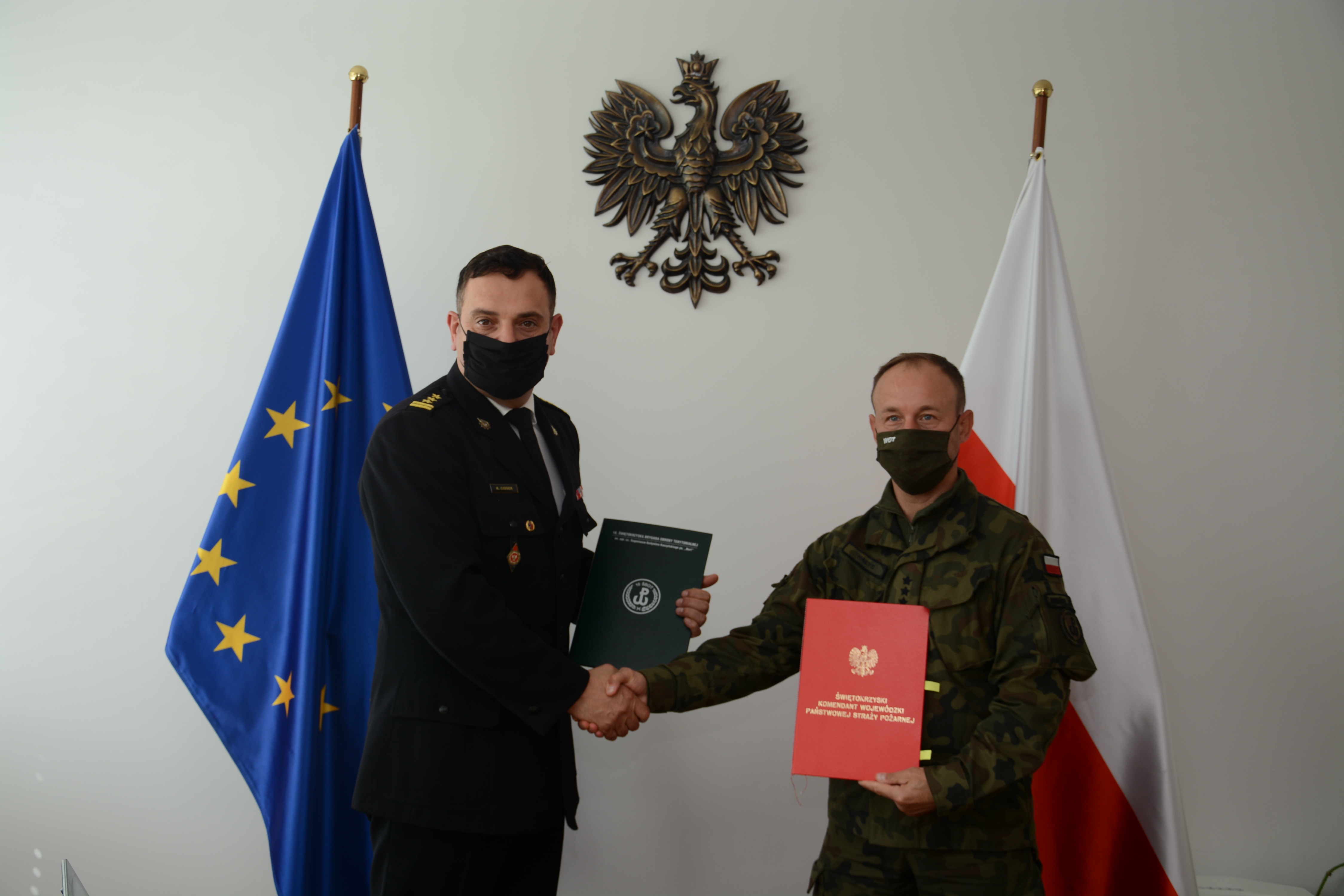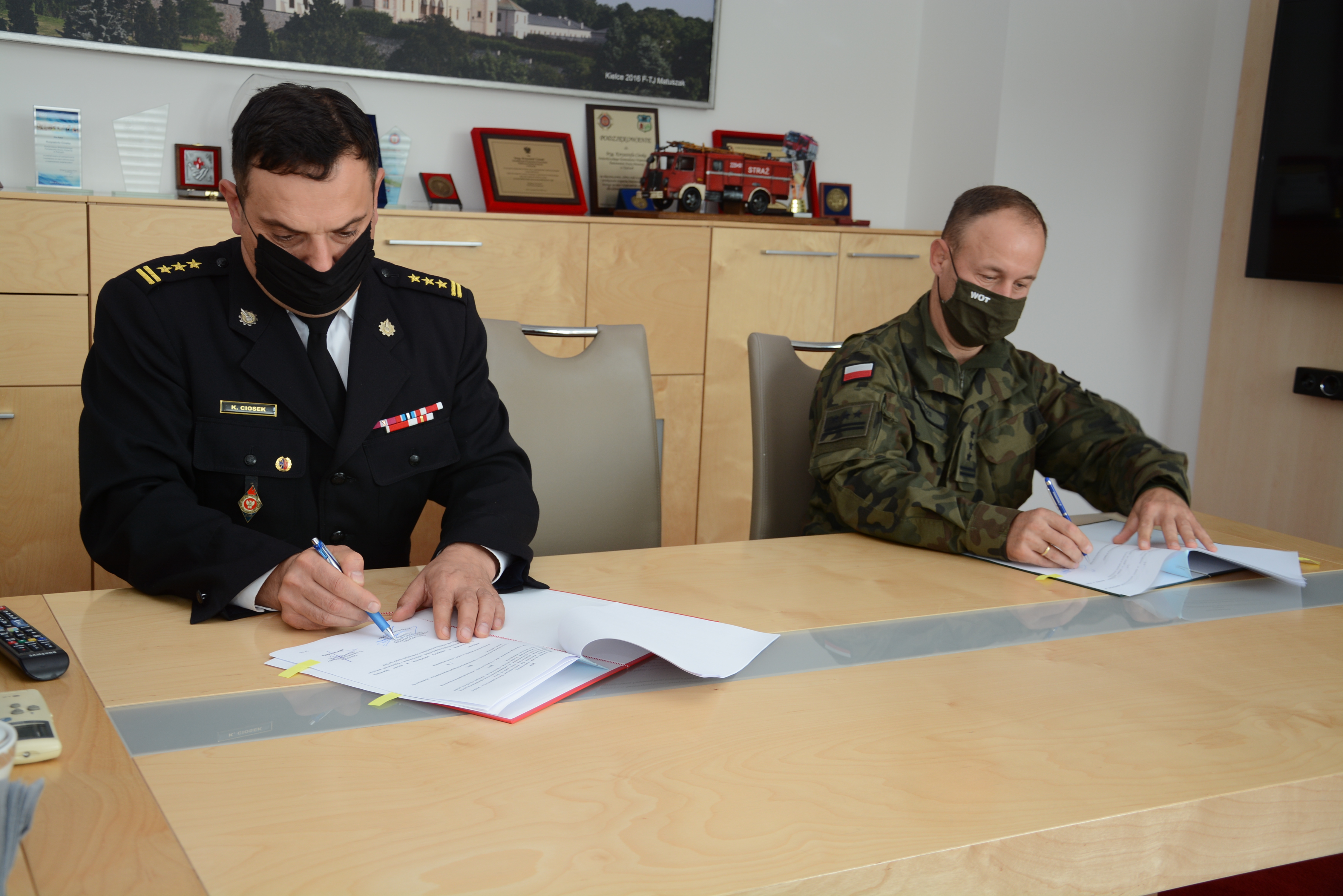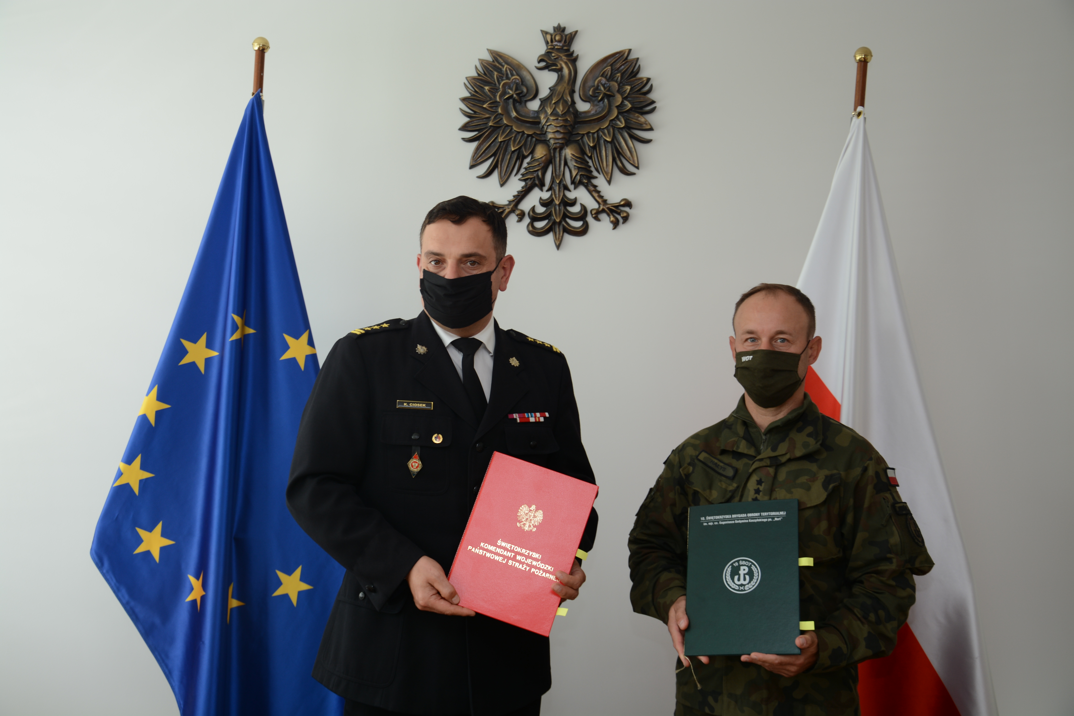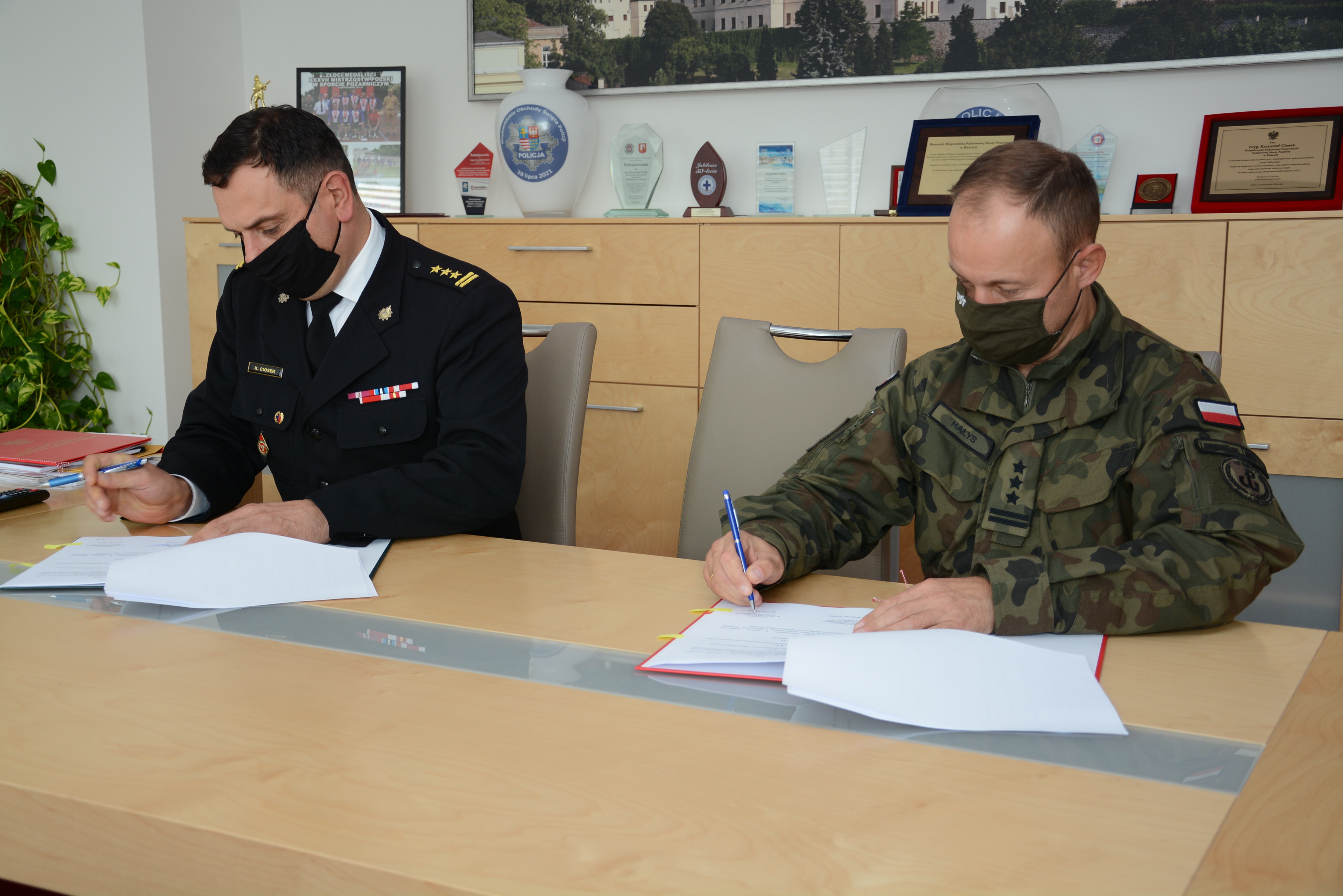 2 września 2021 r. w siedzibie Komendy Wojewódzkiej Państwowej Straży Pożarnej w Kielcach, Dowódca 10 Świętokrzyskiej Brygady Obrony Terytorialnej płk Piotr Hałys oraz Świętokrzyski Komendant Wojewódzki Państwowej Straży Pożarnej st. bryg. Krzysztof Ciosek, podpisali porozumienie o wzajemnej współpracy.