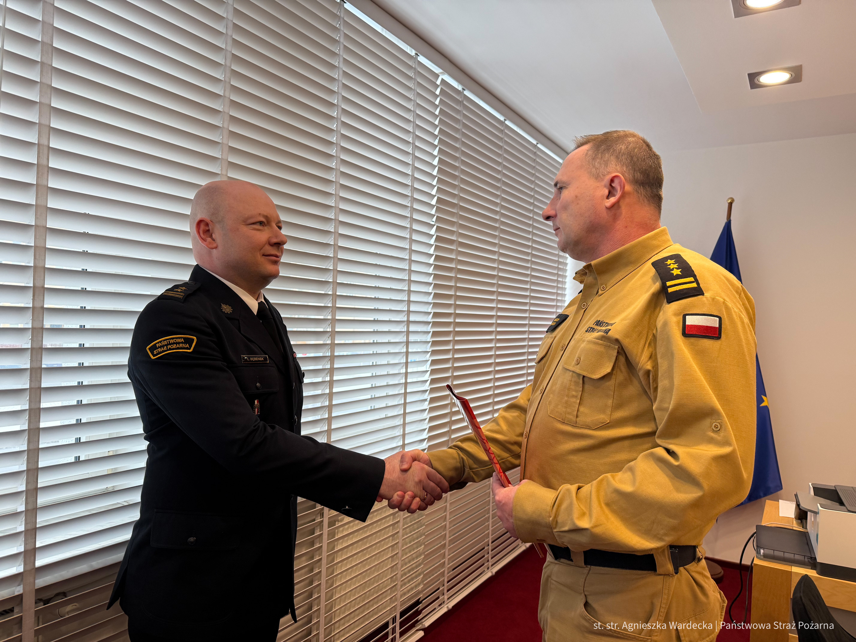 Wręczenie decyzji personalnej miało miejsce w siedzibie Komendy Wojewódzkiej PSP w Kielcach w obecności Komendanta Miejskiego PSP w Kielcach st. bryg. Mariusza Góry.