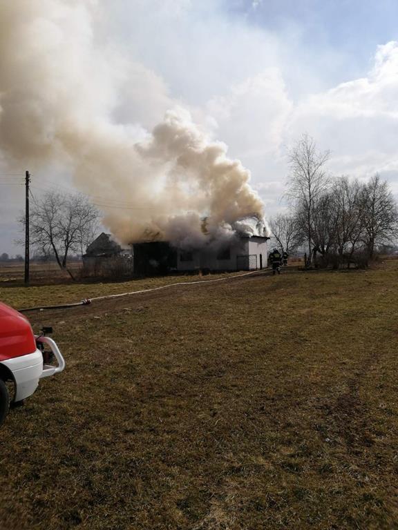 Dyżurny SK KP PSP w Staszowie niezwłocznie do działań zadysponował 10 zastępów z jednostek ochrony przeciwpożarowej. Po przybyciu na miejsce zdarzenia zastępów straży pożarnej stwierdzono, że pożarem objęty jest cały budynek mieszkalny. Osoba zamieszkująca obiekt opuściła go przed przybyciem zastępów straży pożarnej nie odnosząc żadnych obrażeń. Działania zastępów straży pożarnej polegały na zabezpieczeniu miejsca zdarzenia oraz podaniu dwóch prądów wody w natarciu na palący się obiekt. Po ugaszeniu pożaru przeszukano obiekt pod kątem możliwości przebywania osób postronnych oraz przystąpiono do wynoszenia nadpalonego wyposażenia budynku i rozbiórki nadpalonych elementów konstrukcyjnych z jednoczesnym przelewaniem ich wodą. W działaniach ratowniczych udział brało 5 zastępów z jednostki ratowniczo-gaśniczej w Staszowie oraz 5 zastępów z jednostek ochotniczych straży pożarnych.