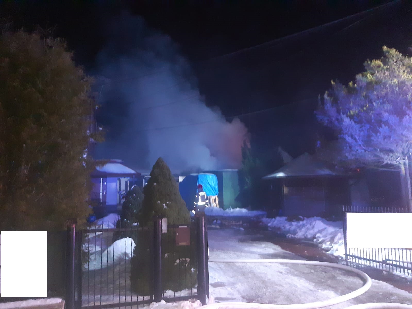 Po dojeździe na miejsce zdarzenia kierujący działaniem ratowniczym po przeprowadzeniu rozpoznania ustalił, że doszło do pożaru wewnątrz wiaty hurtowni przylegającej bezpośrednio do budynku hurtowni stanowiącej jeden kompleks. Ustalono również, że w obiekcie nie ma osób poszkodowanych, a właściciele hurtowni znajdowali się na zewnątrz i nie uskarżali się na żadne dolegliwości. W pomieszczeniu objętym pożarem przechowywano artykuły biurowe, papierowe ręczniki oraz mydła. Magazyn, w którym powstał pożar wykonany był z blachy, a pozostała część budynków była murowana.