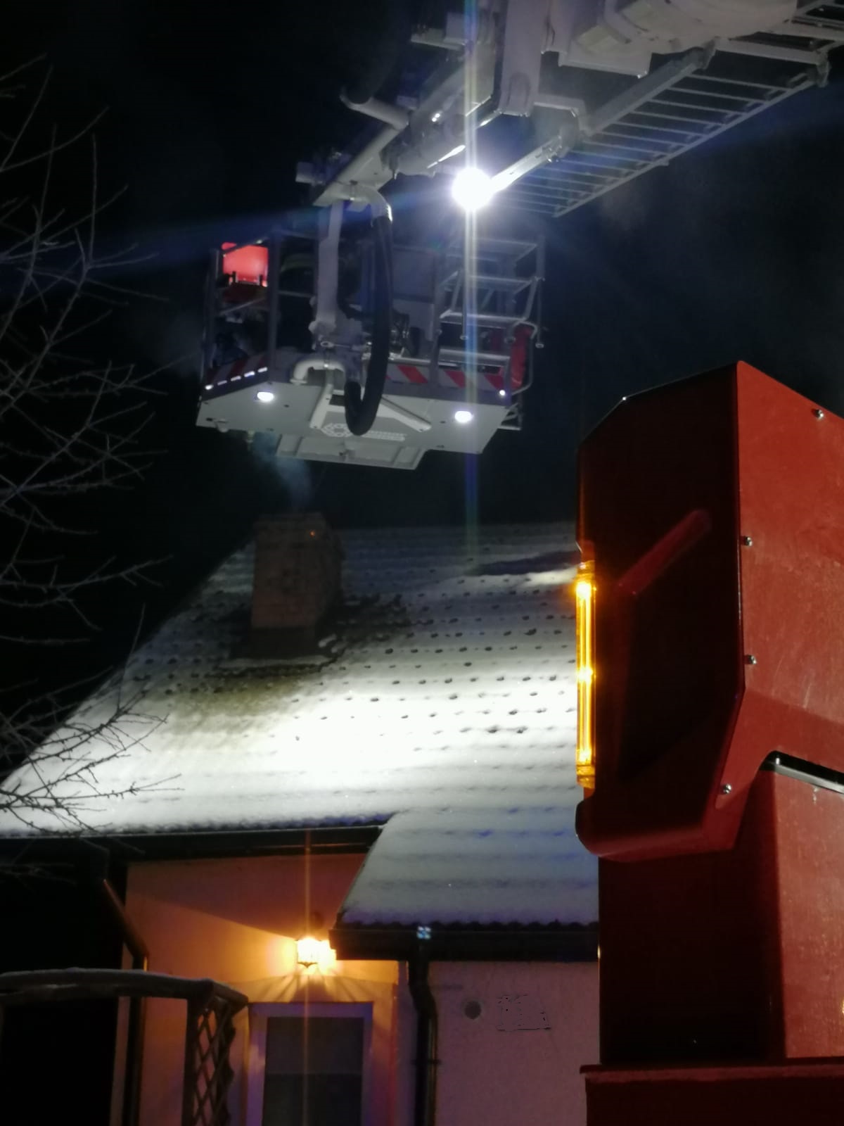 Po dojeździe kierujący działaniem ratowniczym polecił zabezpieczyć miejsce zdarzenia, wygasić palenisko pieca centralnego ogrzewania oraz rozstawić podnośnik hydrauliczny SHD-23. Dalsze działania polegały na zasypaniu palącej się sadzy piaskiem z kosza podnośnika, a następnie udrożnieniu wyciorem przewodu kominowego. W trakcie prowadzonej akcji strażacy detektorami wielogazowymi sprawdzali na bieżąco budynek pod względem obecności tlenku węgla (urządzenia pomiarowe nie wykryły zagrożenia).
