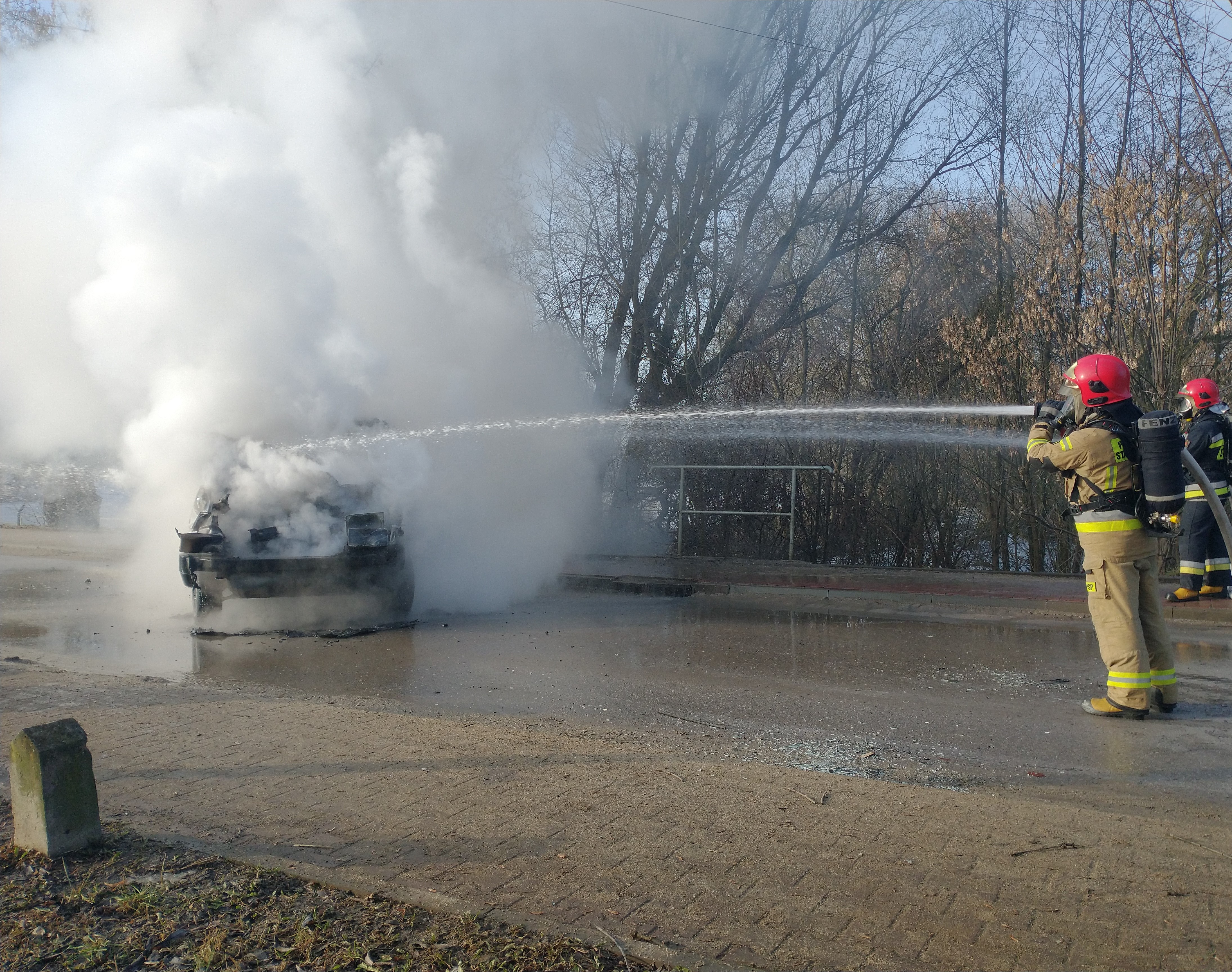 Po dojeździe na miejsce zdarzenia zastępów z JRG dodatkowo w celu szybszej lokalizacji pożaru podano drugi prąd gaśniczy wody w natarciu na palący się pojazd. Po ugaszeniu samochodu wszystkie nadpalone elementy wyposażenia oraz materiały znajdujące się w środku wyciągnięto na zewnątrz i dokładnie przelano wodą. W celu całkowitego wykluczenia ukrytych zarzewi ognia spalony wrak pojazdu sprawdzono przy użyciu kamery termowizyjnej. Prowadzone działania zakończono po usunięciu spalonego samochodu w bezpieczne miejsce na pobocze oraz uprzątnięciu jezdni i przywróceniu ruchu na drodze powiatowej.