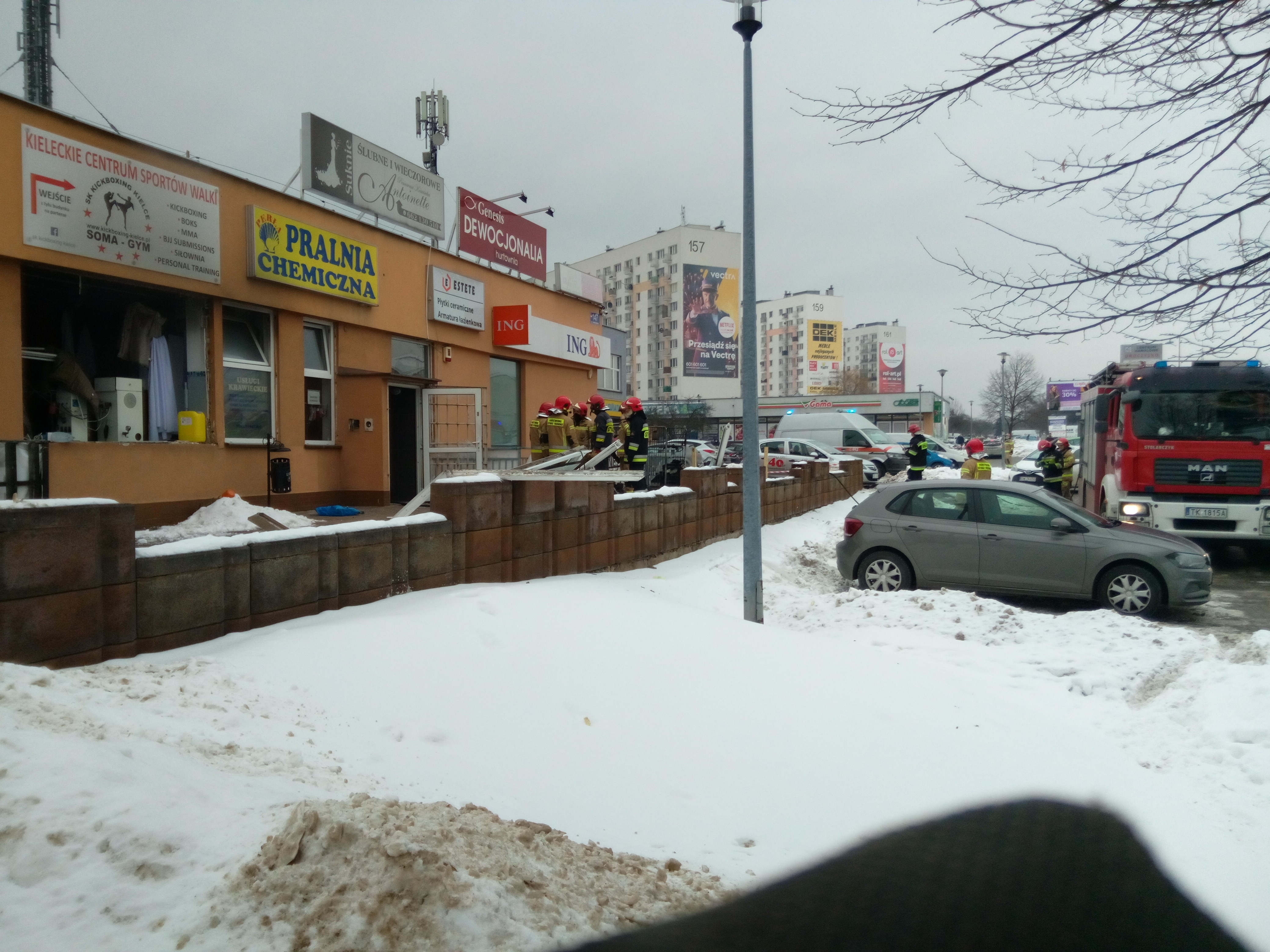 pożarze w pralni chemicznej w Kielcach na ulicy Warszawskiej 147.