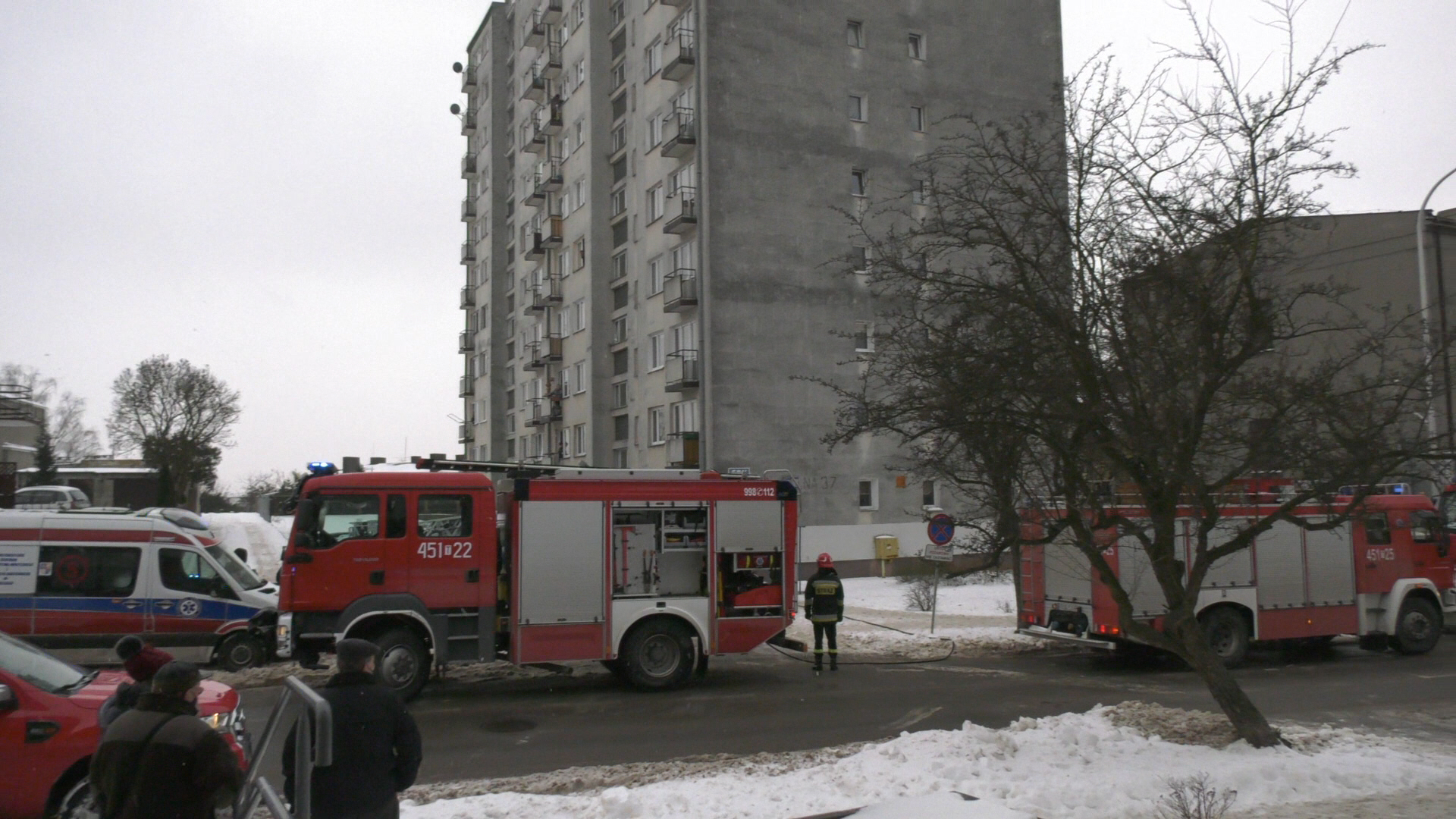 Pożar w wieżowcu w Ostrowcu Świętokrzyskim